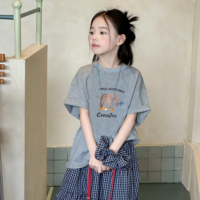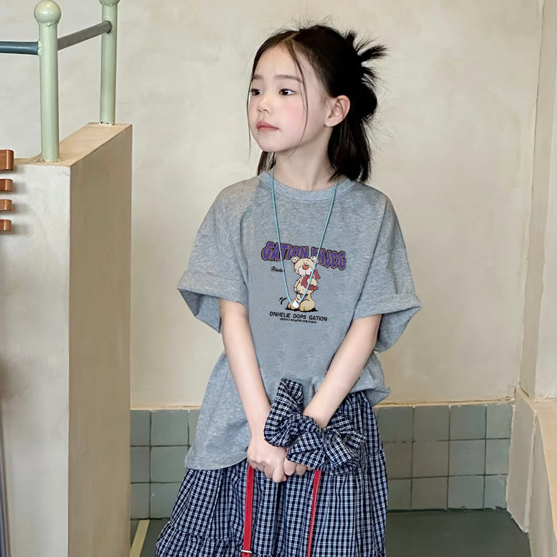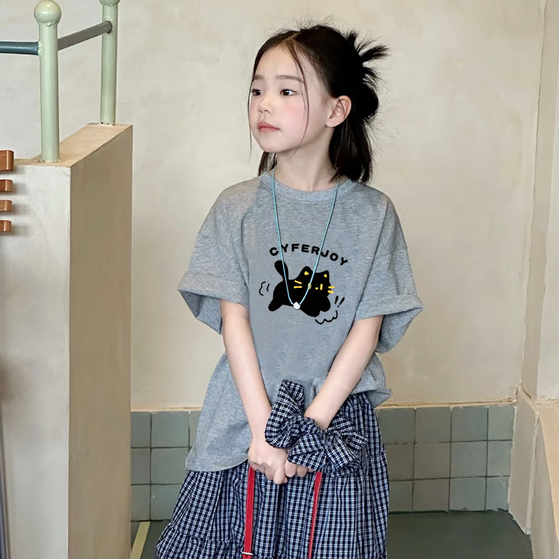 한국 아동복 소녀 만화 반팔 여름 옷 새로운 스타일 중대형 어린이 느슨한 패션 다목적 반팔 티셔츠 탑스토어 가기