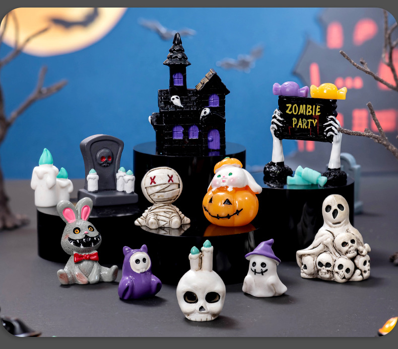 마이크로 풍경 할로윈 장식 미라 해골 토끼 마법의 집 유령 부활절 데스크탑 장식품