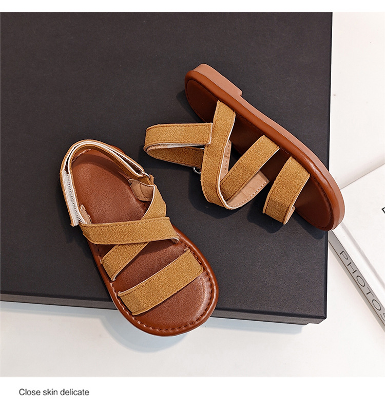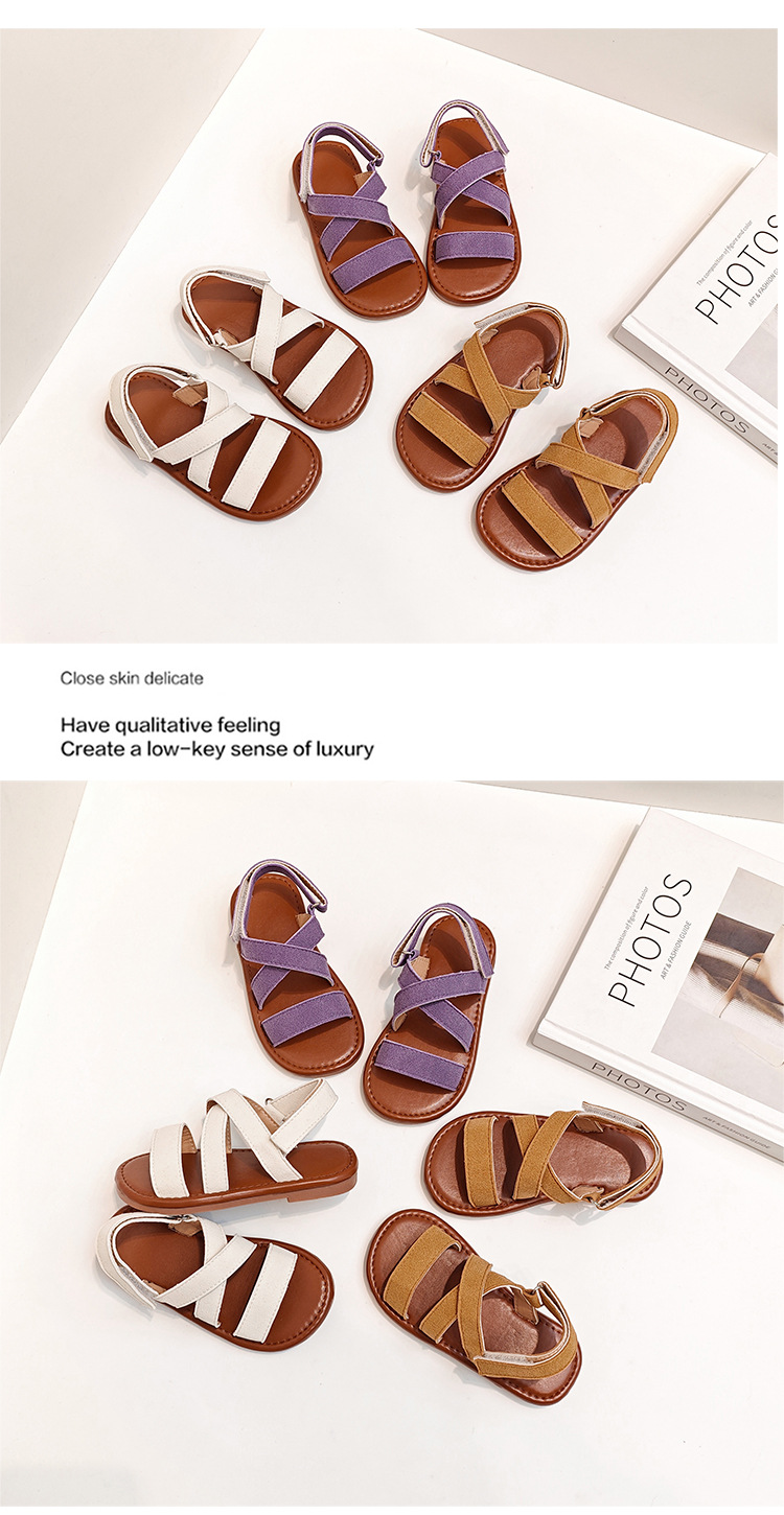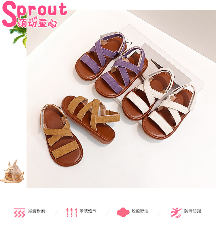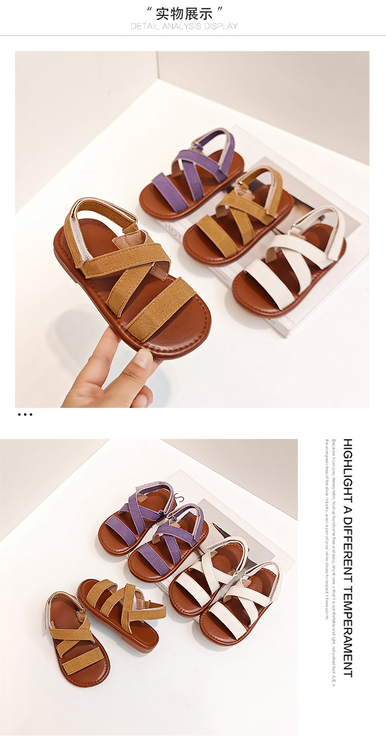 문학적이고 복고풍의 대외 무역 소녀의 중대형 어린이 해변 신발 간단한 부드러운 바닥 공주 로마 샌들 아기 여름 신발스토어 가기