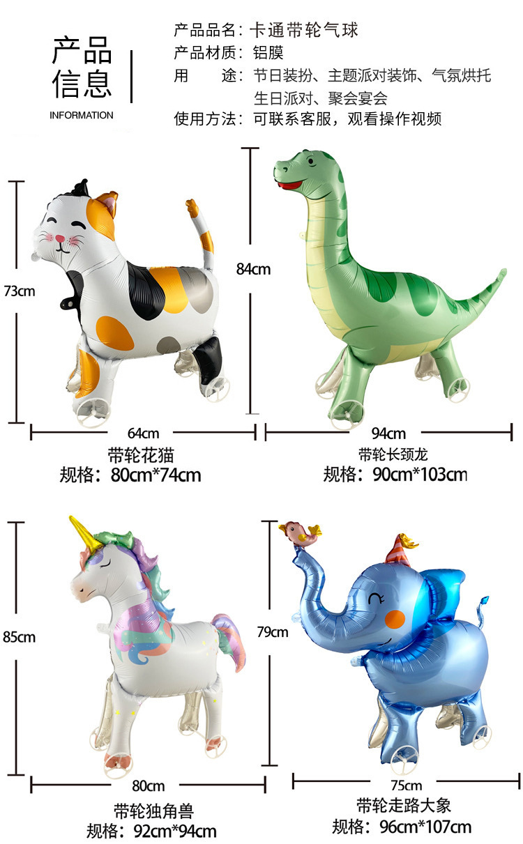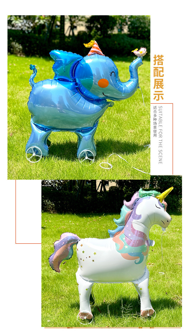 바퀴가 달린 3 차원 만화 알루미늄 풍선, 한 뿔이있는 마카 피 바, 알파카 KT 고양이, 자동차 풍선 공원 마구간스토어 가기