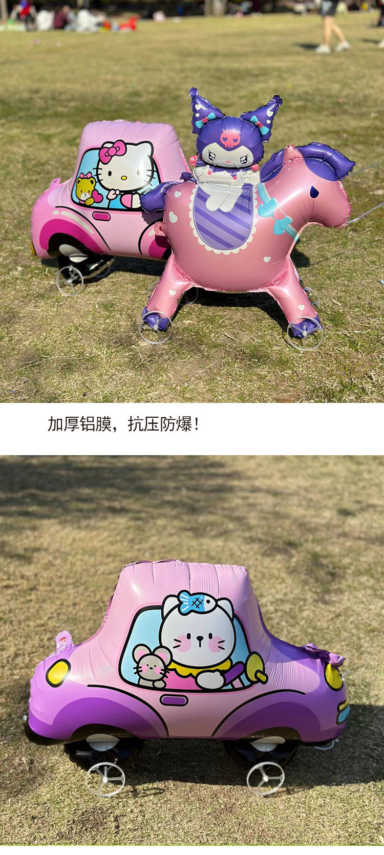 바퀴가 달린 3 차원 만화 알루미늄 풍선, 한 뿔이있는 마카 피 바, 알파카 KT 고양이, 자동차 풍선 공원 마구간