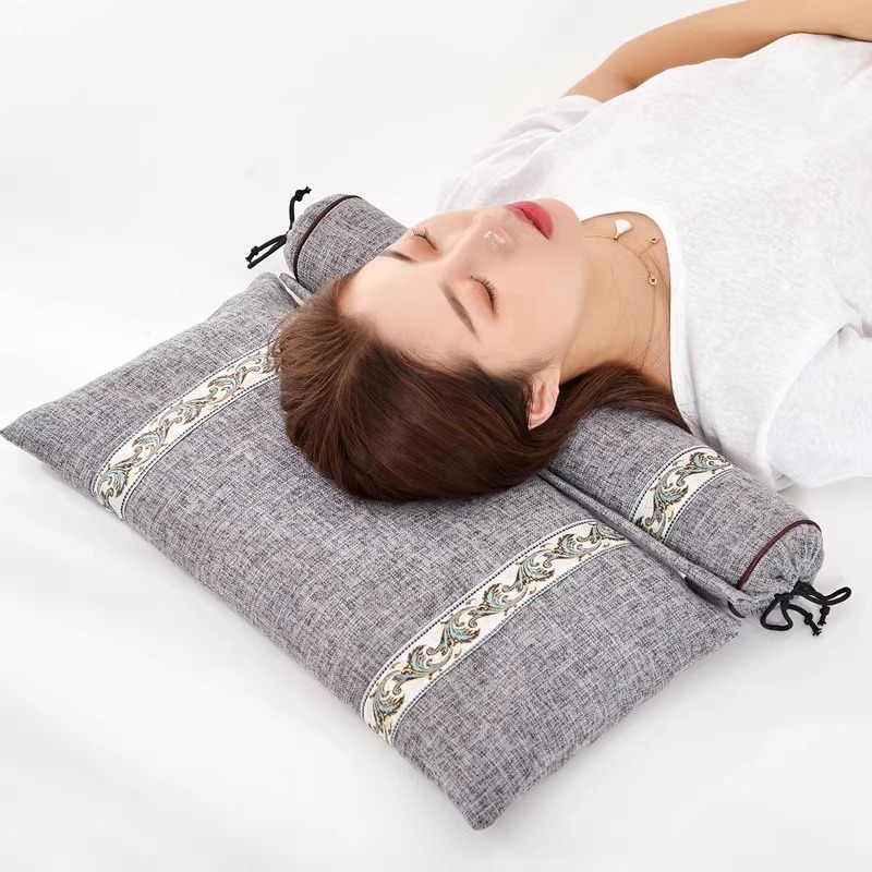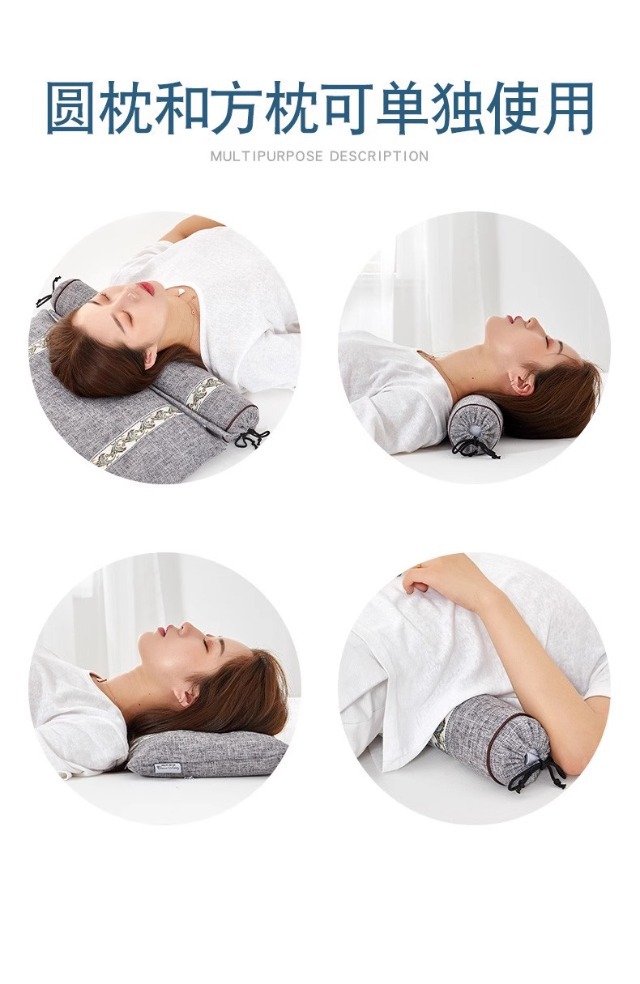 메밀 및 계수나무씨 경추베개, 침대용 경추베개, 특수 수면보조제, 원통형 리버스 아크 트랙션 베개