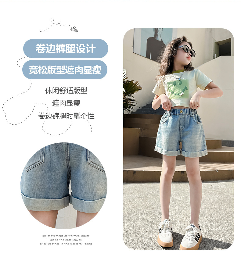 여아 여름 데님 반바지, 얇은, 중대형 아동 여아 패셔너블 캐주얼 아우터웨어, 아동 여름 신작 트렌디 팬츠스토어 가기