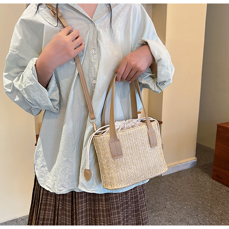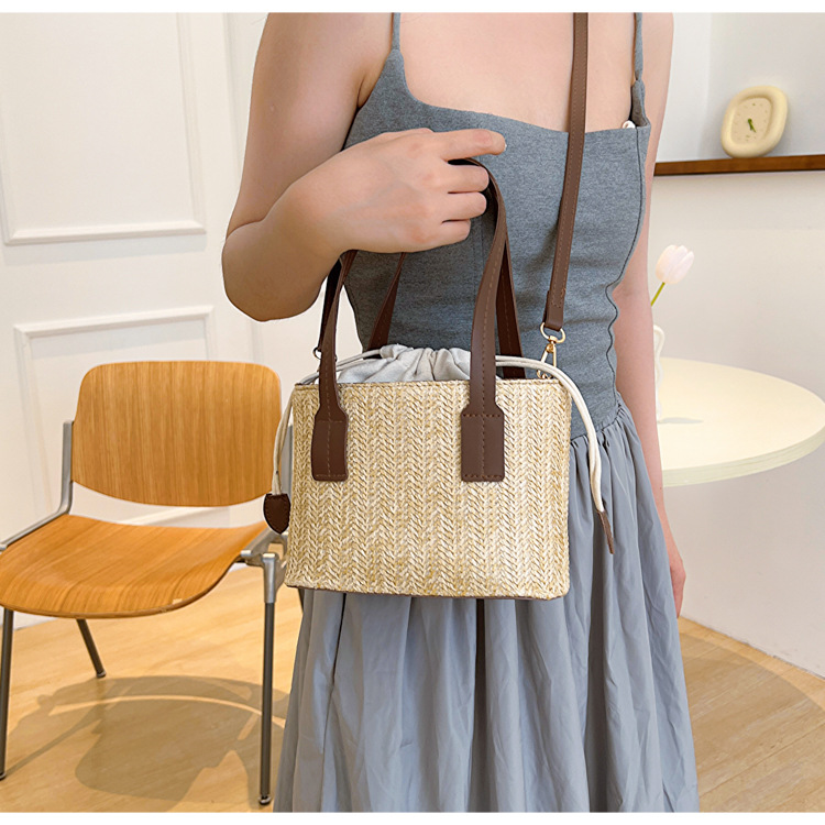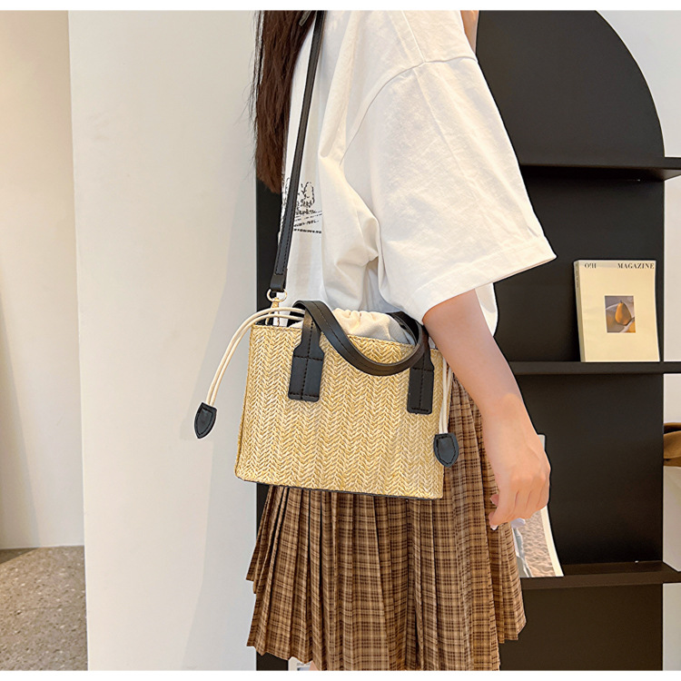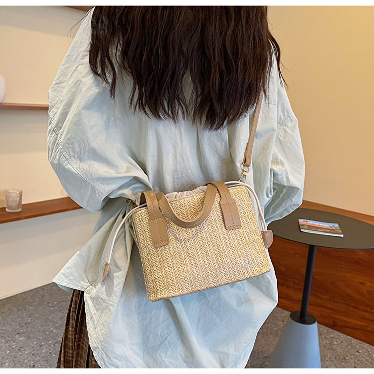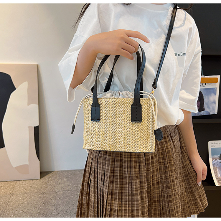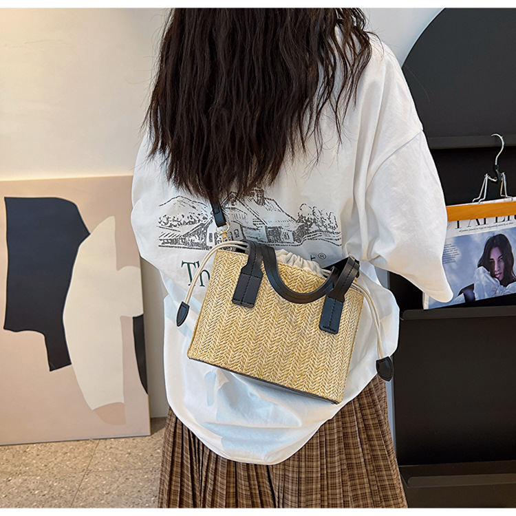 여성을위한 패션 가방 2025 봄 새로운 스타일의 어깨 가방 간단한 크로스 바디 가방 밀짚 접합 캐주얼 작은 사각형 가방스토어 가기
