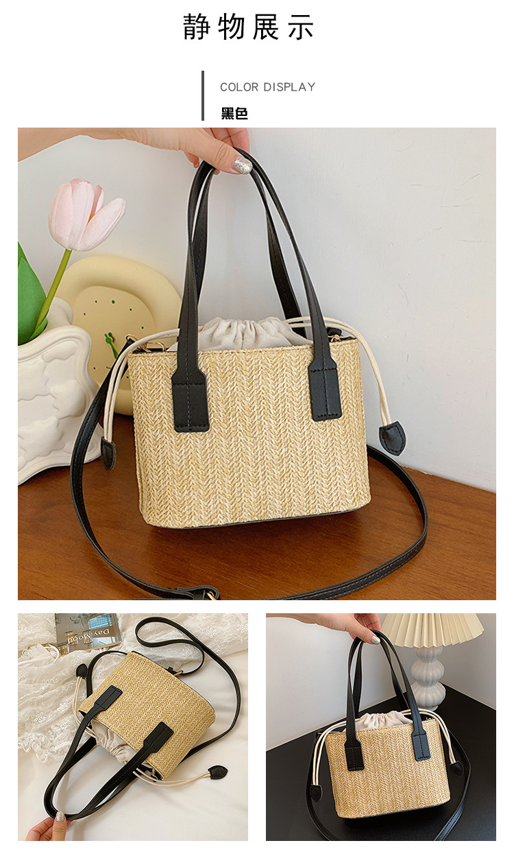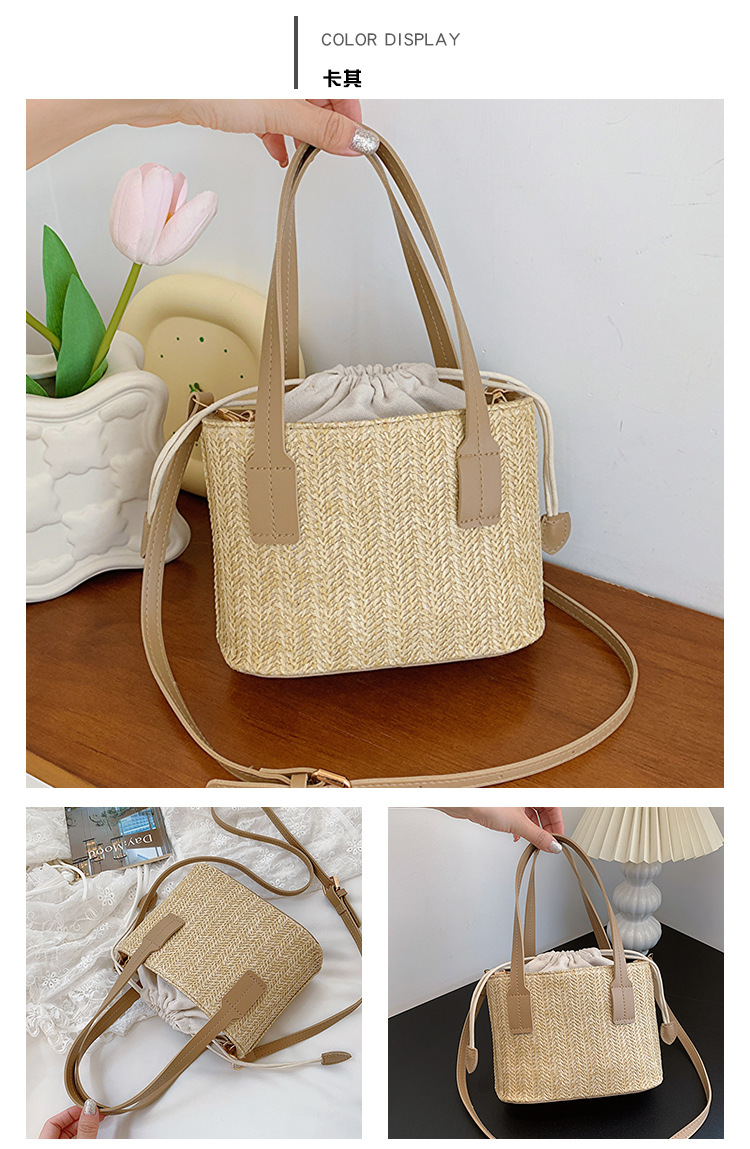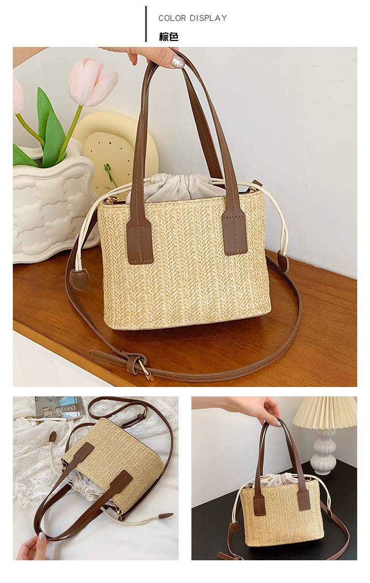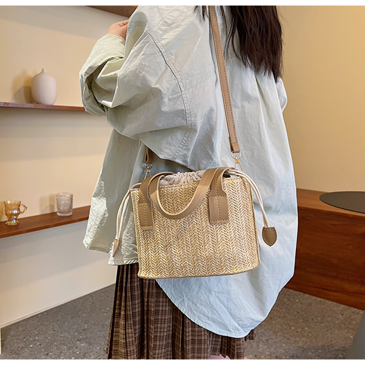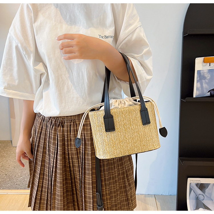 여성을위한 패션 가방 2025 봄 새로운 스타일의 어깨 가방 간단한 크로스 바디 가방 밀짚 접합 캐주얼 작은 사각형 가방스토어 가기