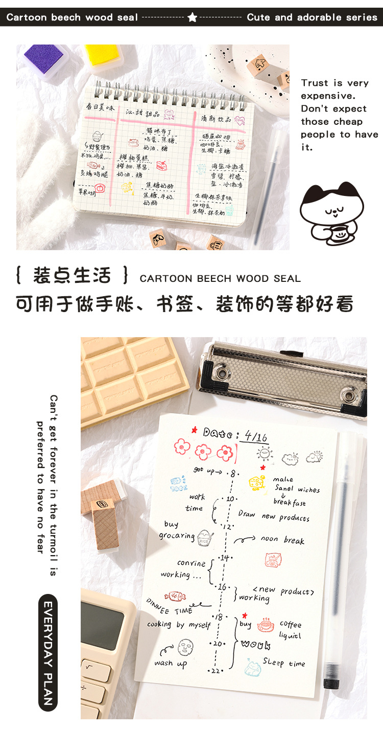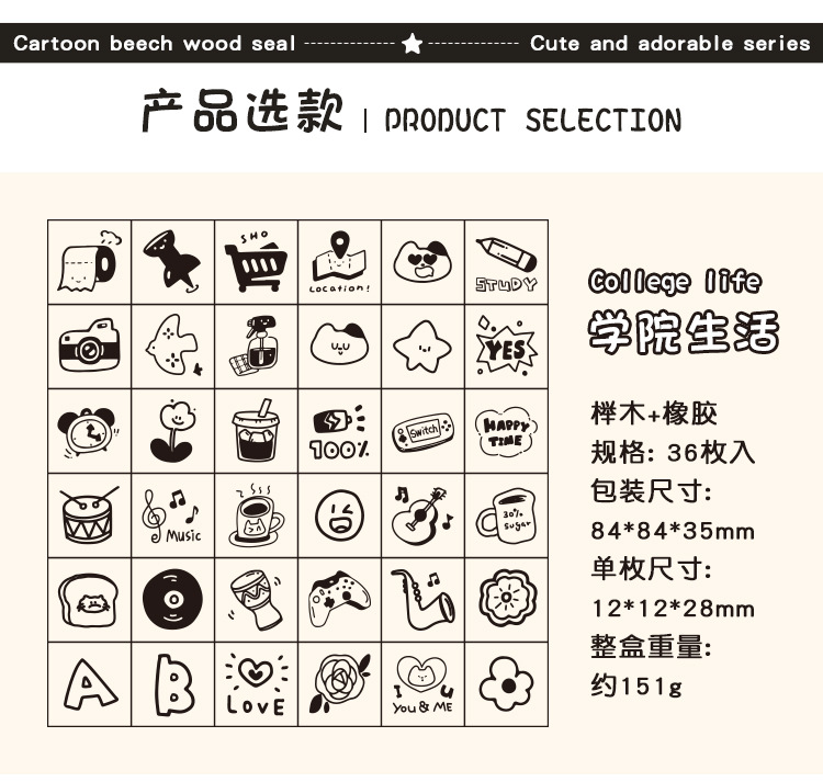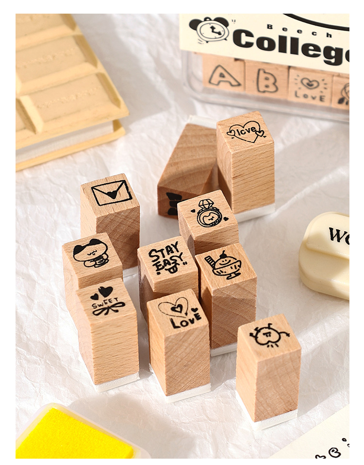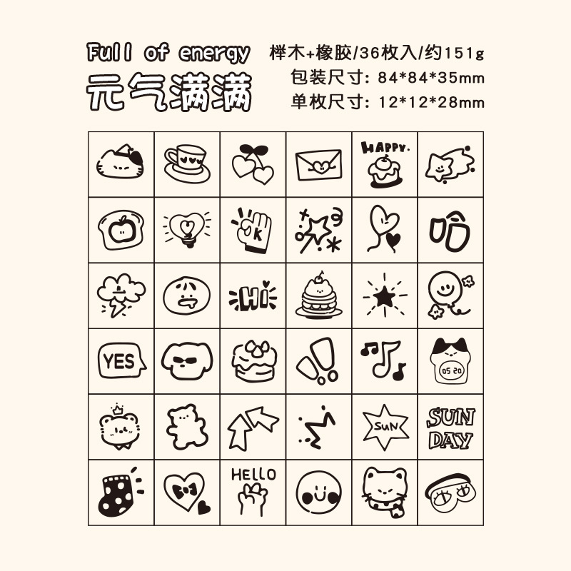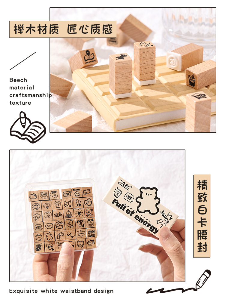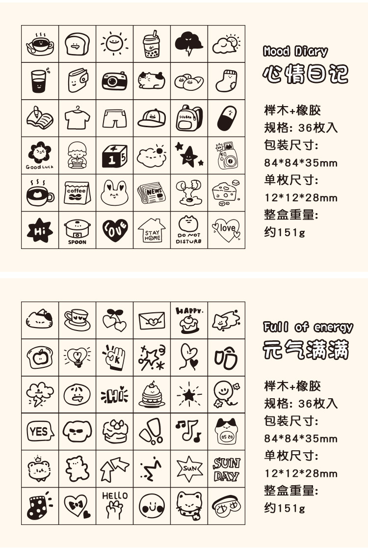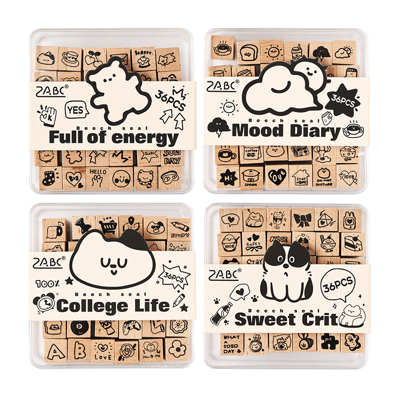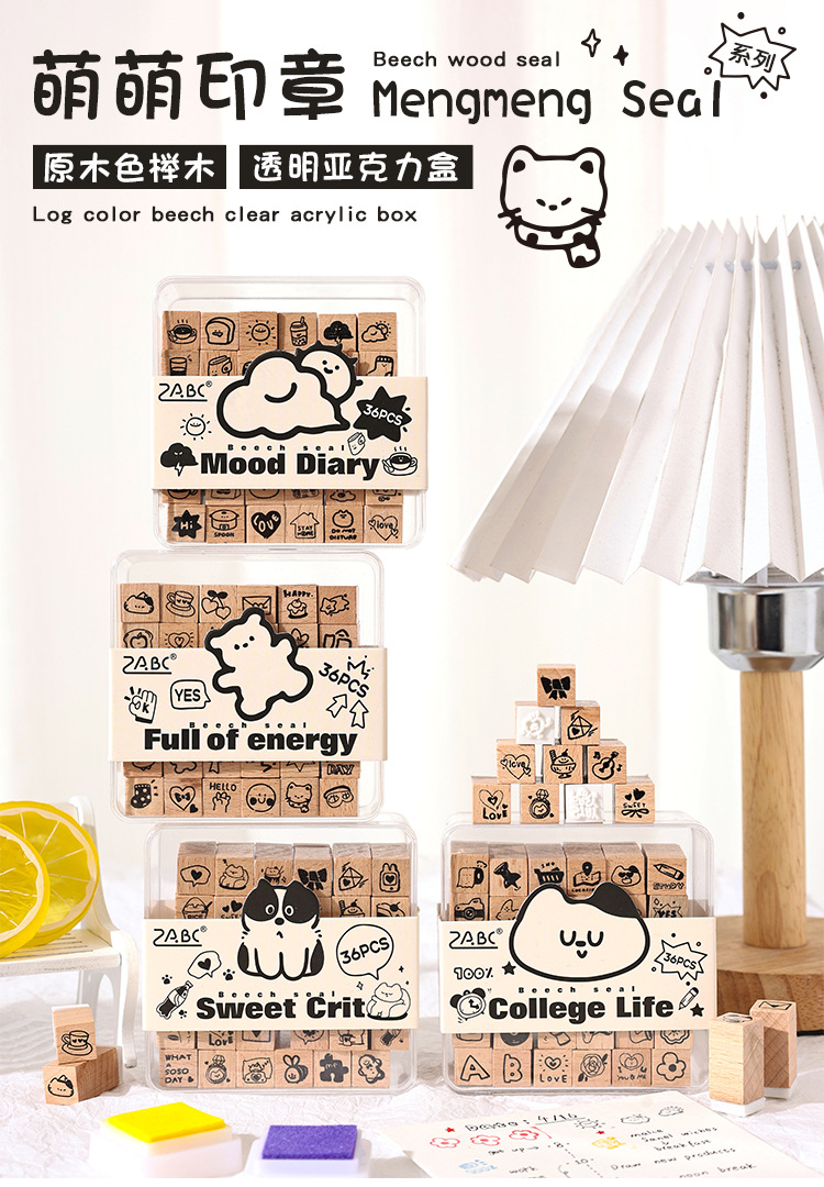 귀여운 스탬프 36개 상자에 담긴 매우 귀여운 패턴 ins 스타일 학생 핸드북 DIY 장식 인쇄 나무 스탬프스토어 가기