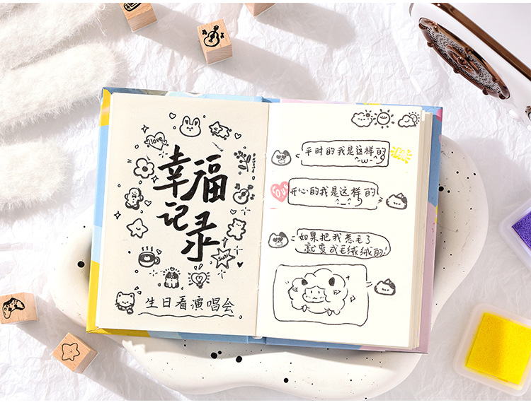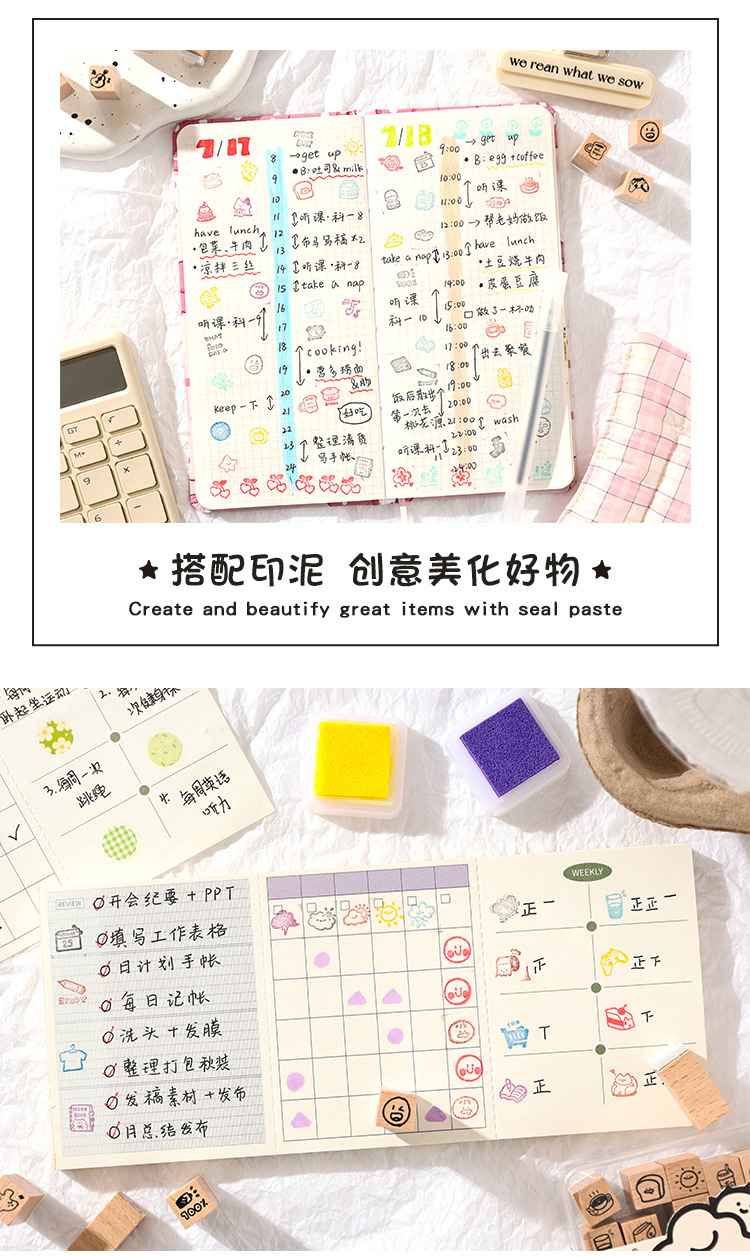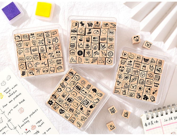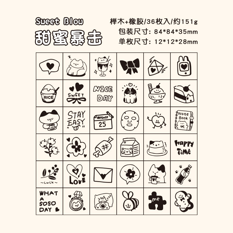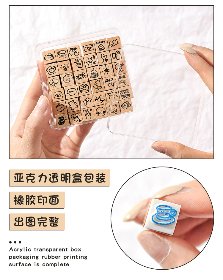 귀여운 스탬프 36개 상자에 담긴 매우 귀여운 패턴 ins 스타일 학생 핸드북 DIY 장식 인쇄 나무 스탬프