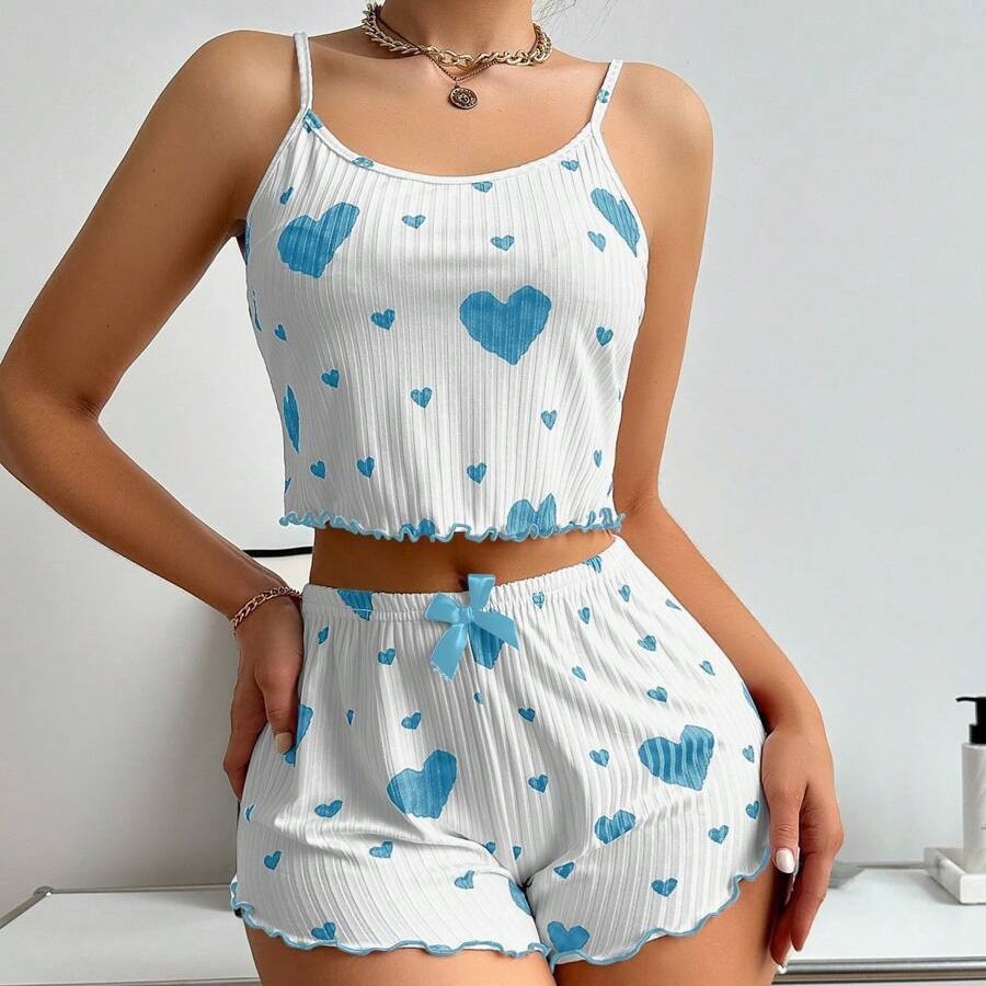 국경 간 핫 셀러 여성용 홈 의류 사랑 슬링 반바지 캐주얼 핏 스트립 의류 유럽과 미국 여성 파자마