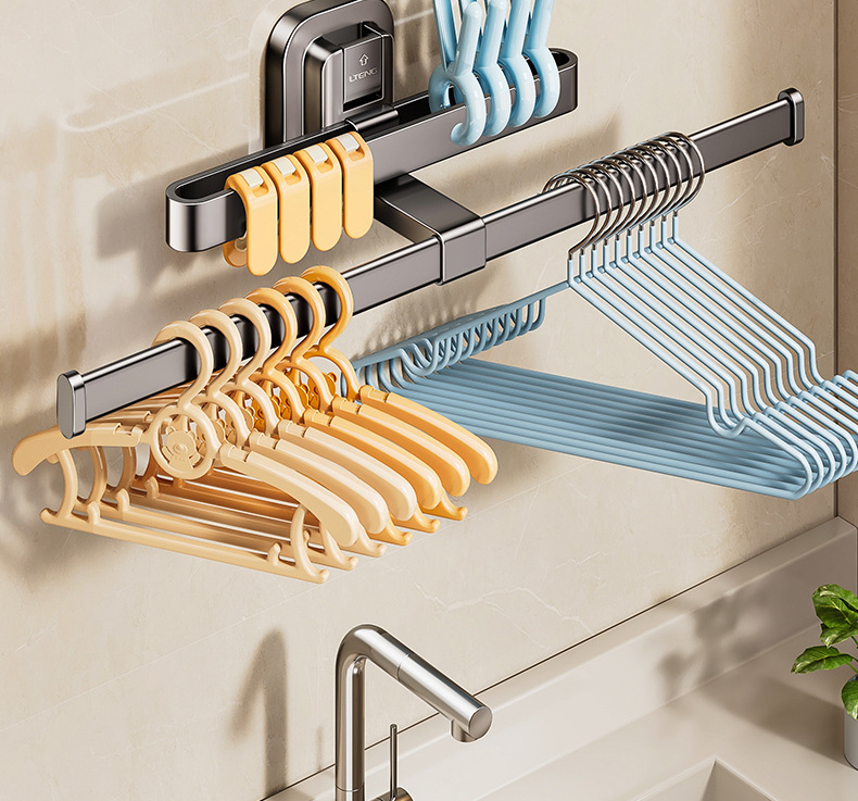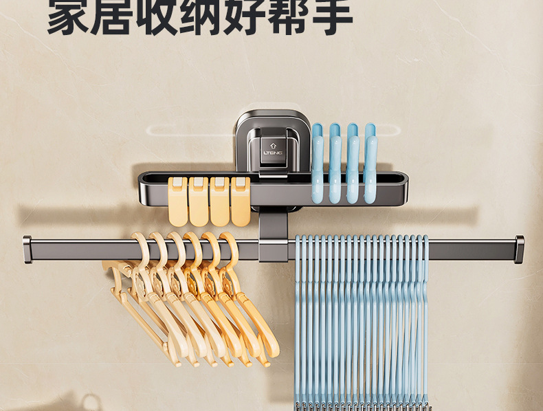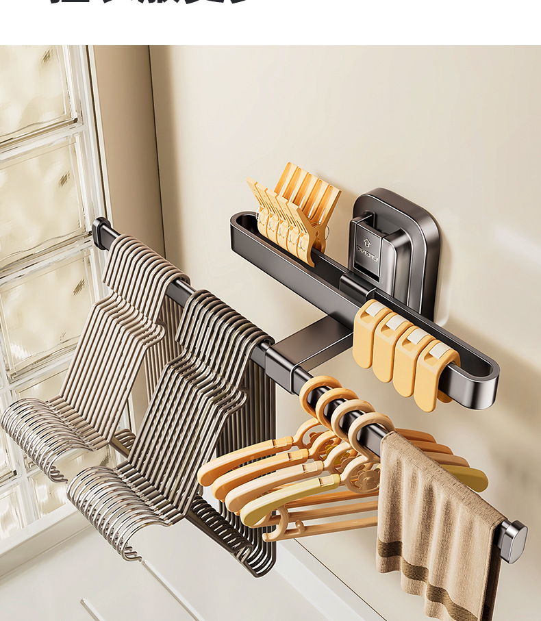 [샘플 사용자 정의] 홈 침실 흡입 컵 옷 걸이 벽 발코니에 구멍을 뚫을 필요 없음 다기능 빨래 건조기 클립 보관 랙스토어 가기