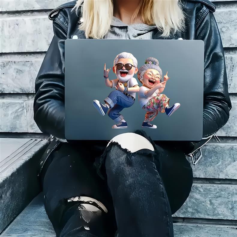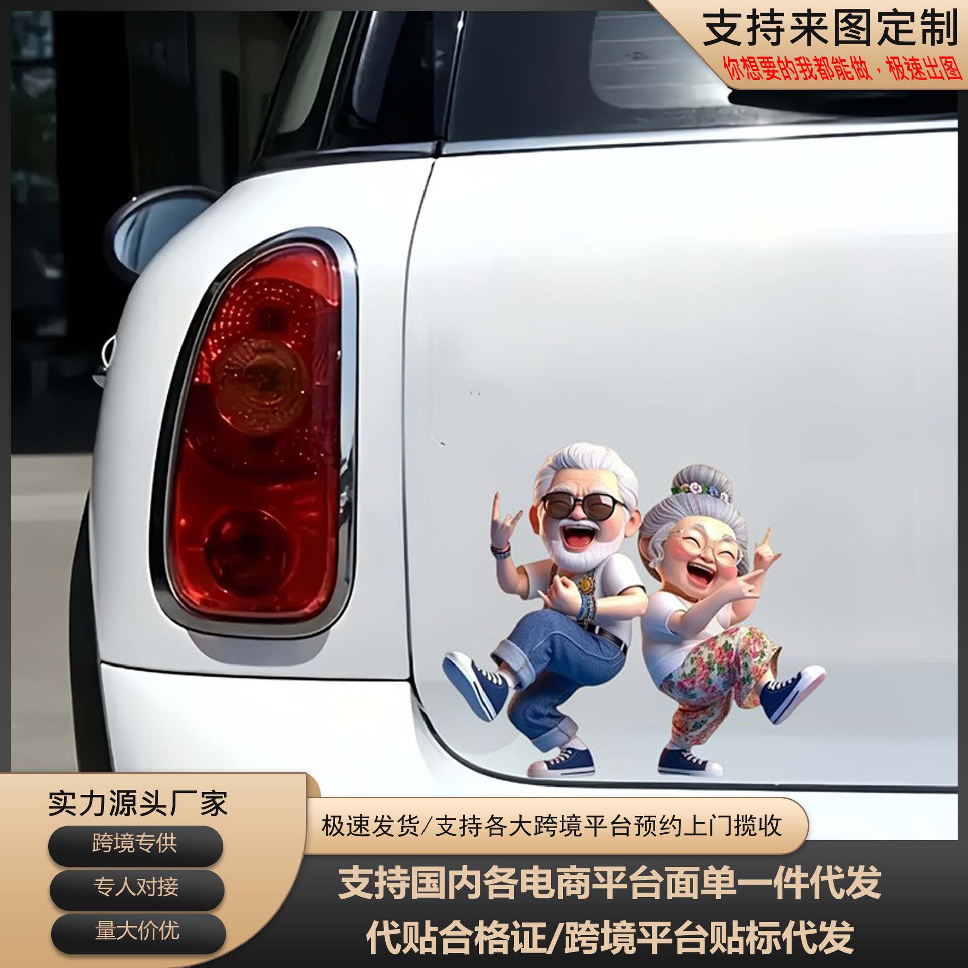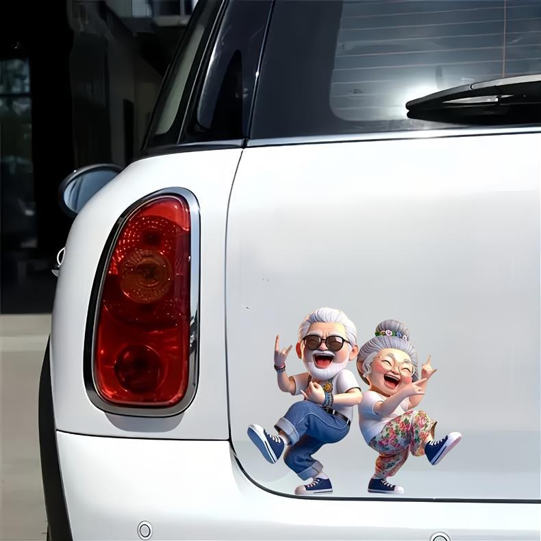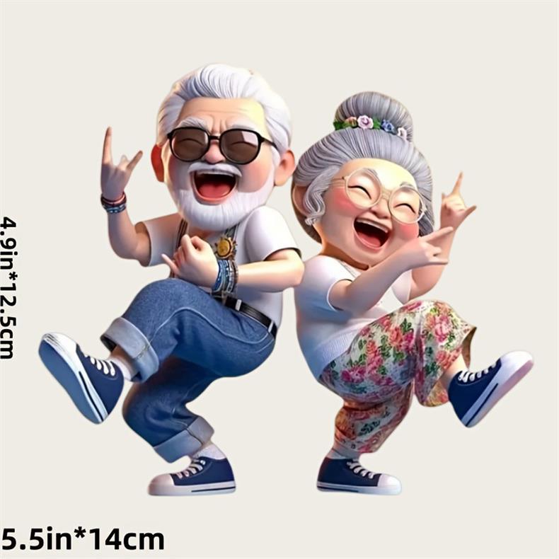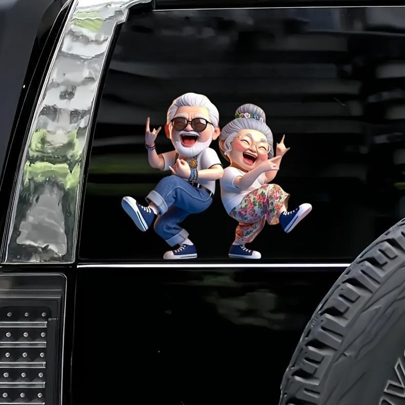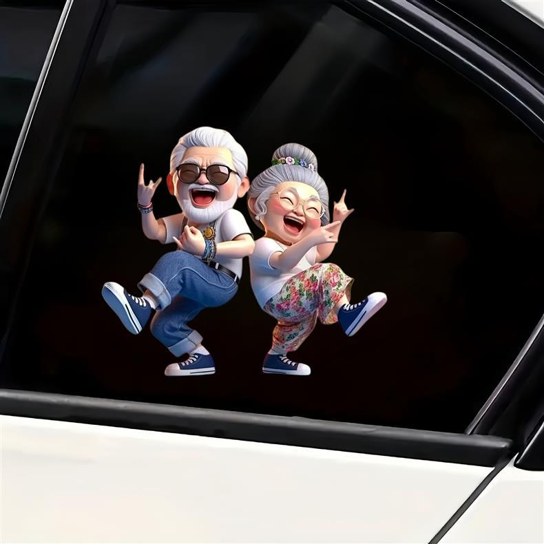 자동차_오토바이_트럭_노트북용 대외 무역 재미 재미 춤추는 노인 부부 스티커스토어 가기