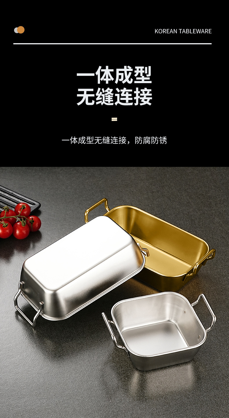 한국식 양이 스낵 접시 스테인레스 스틸 접시 황금색 프라이드 치킨 바구니 감자 튀김 바구니 상업용 튀김 직사각형 접시