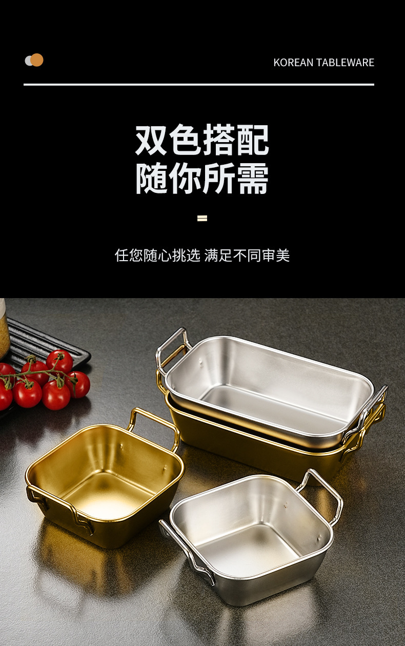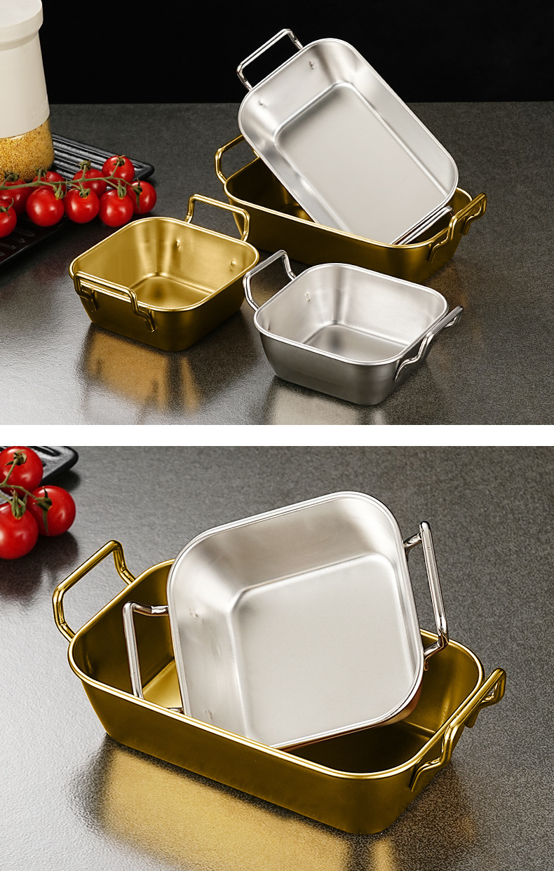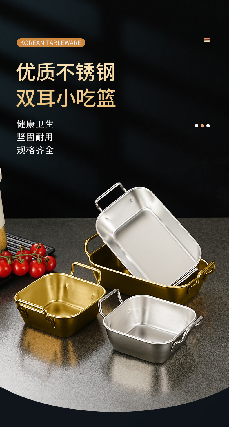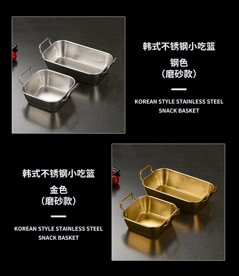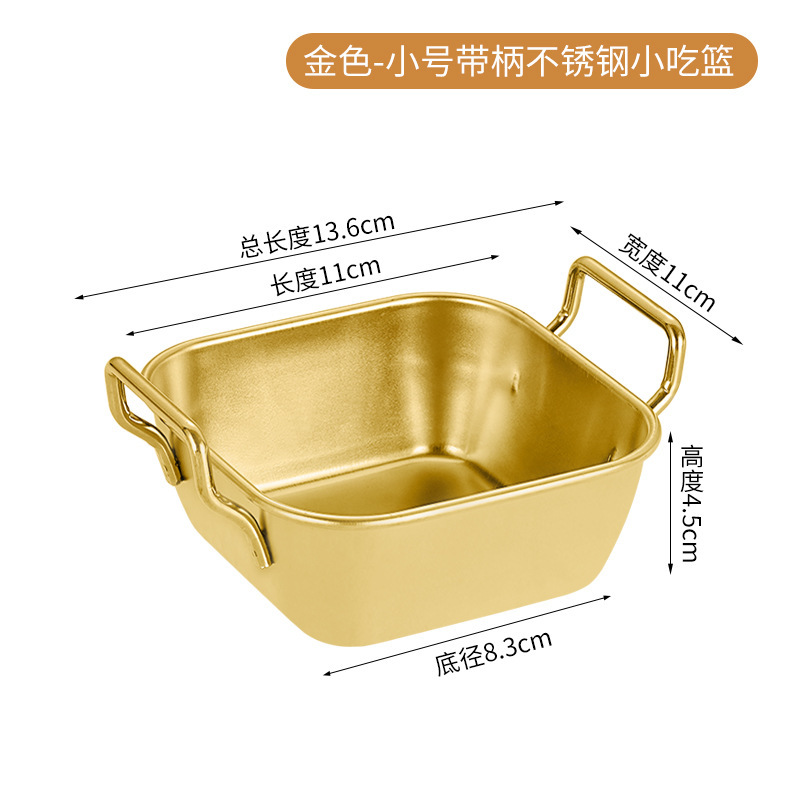 한국식 양이 스낵 접시 스테인레스 스틸 접시 황금색 프라이드 치킨 바구니 감자 튀김 바구니 상업용 튀김 직사각형 접시스토어 가기