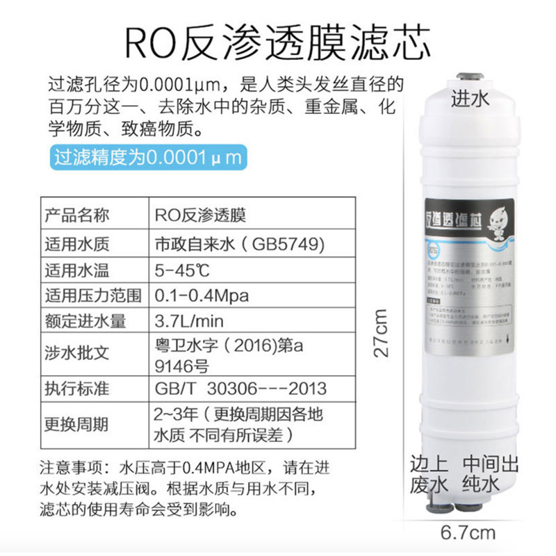 • 퀵 커넥트 10inch RO 멤브레인 [전체 상자가 필요한 경우 50개를 가져가세요]