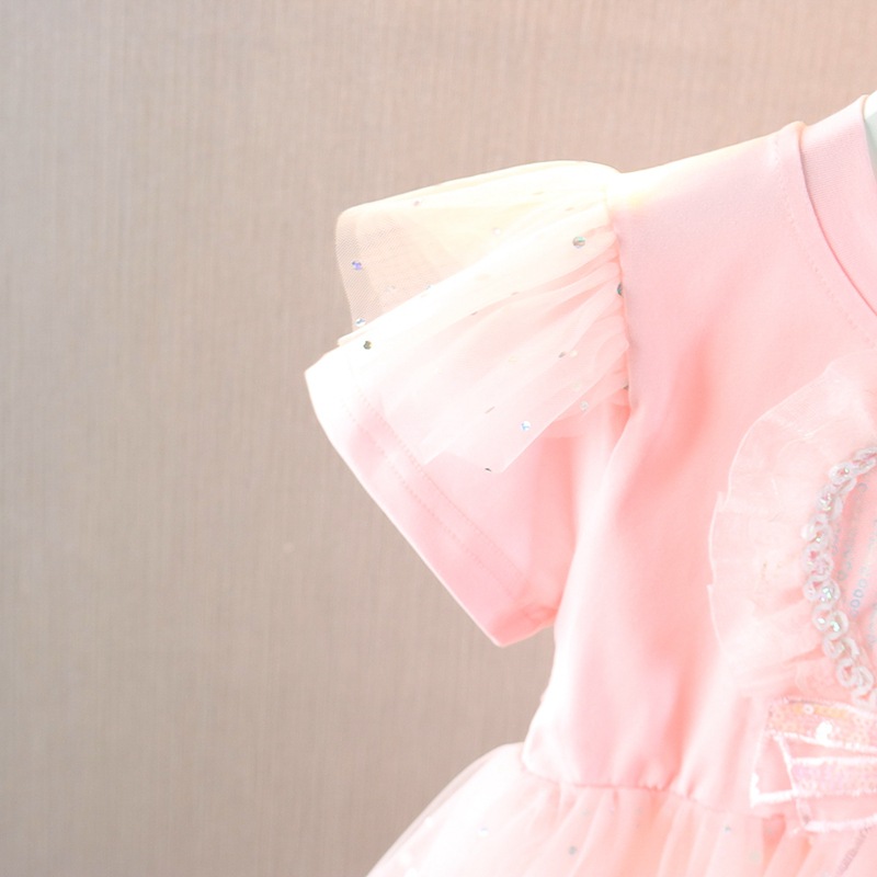 • 핑크빛 반짝이는 플라잉 슬리브 엘사 드레스