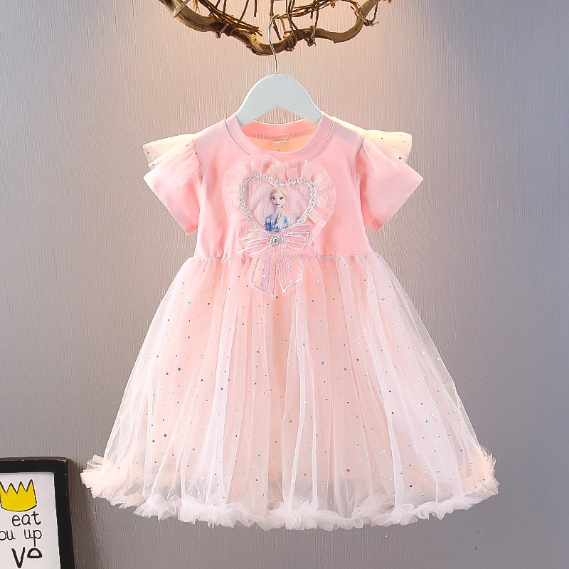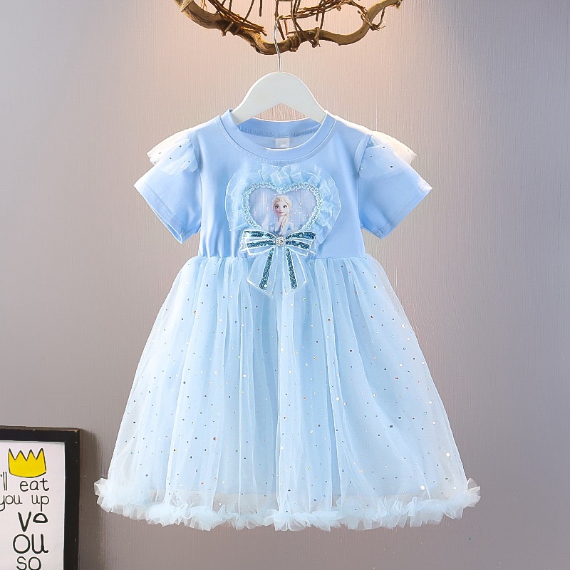 엘사 공주 드레스 여름 여아 원피스 2026 신상 아동용 엘사 반팔 드레스 스타일리쉬한 아기 여름옷