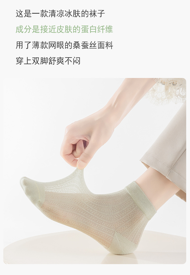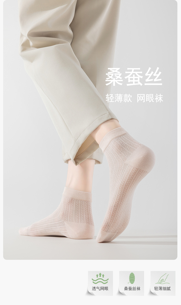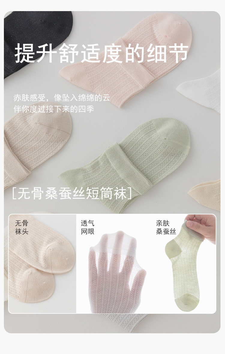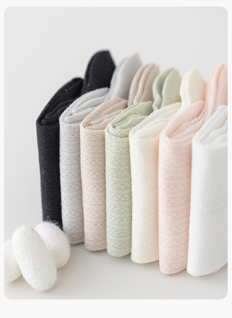 뽕나무 실크 양말 여성 여름 얇은 양말 메쉬 통기성 짧은 양말 뼈없는 감금 양말 Zhuji 여름 중간 튜브 양말스토어 가기