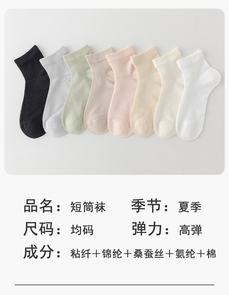 뽕나무 실크 양말 여성 여름 얇은 양말 메쉬 통기성 짧은 양말 뼈없는 감금 양말 Zhuji 여름 중간 튜브 양말