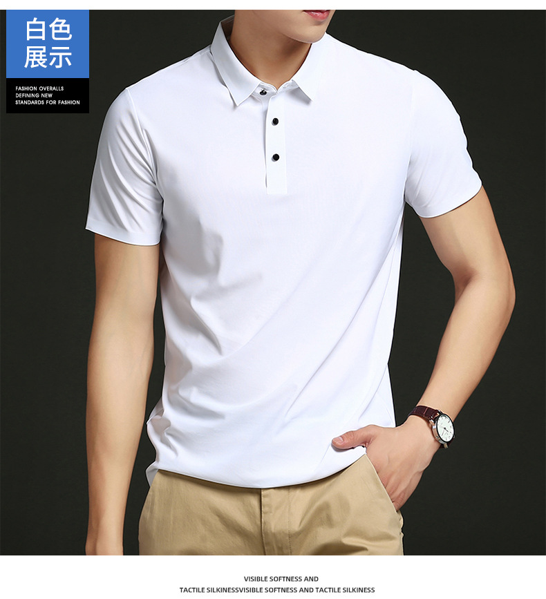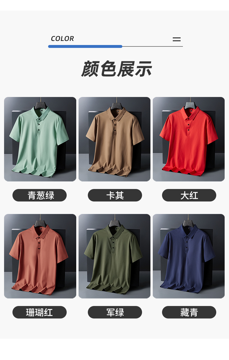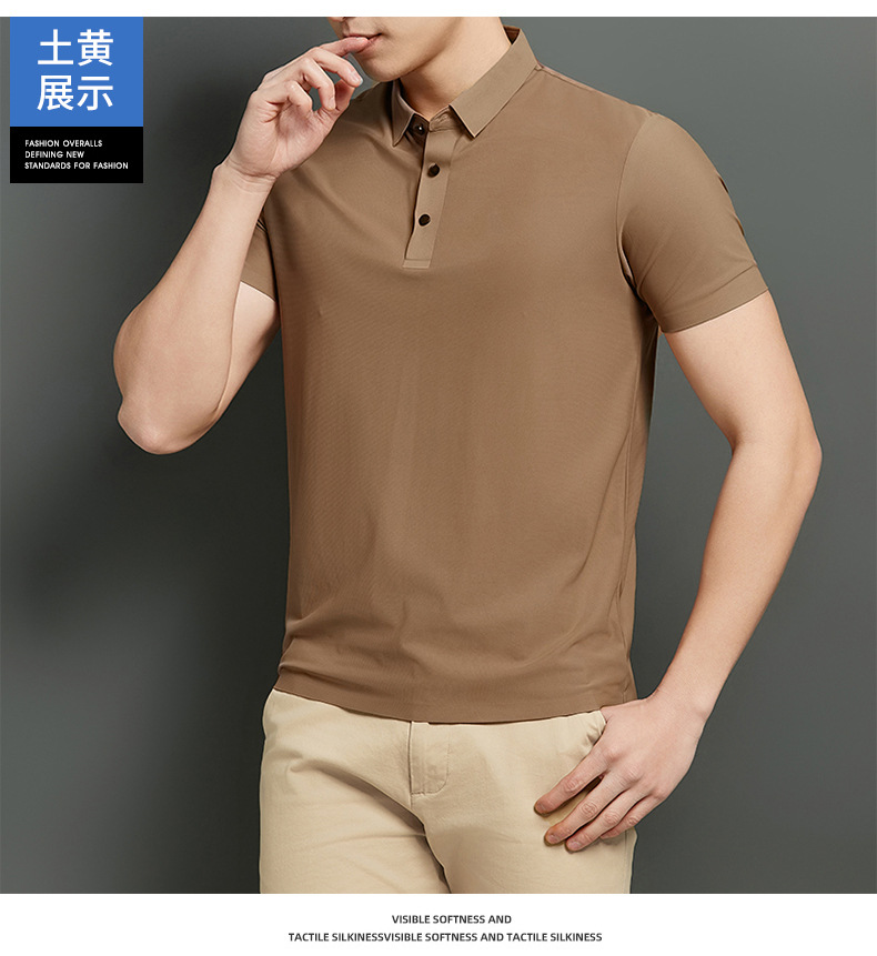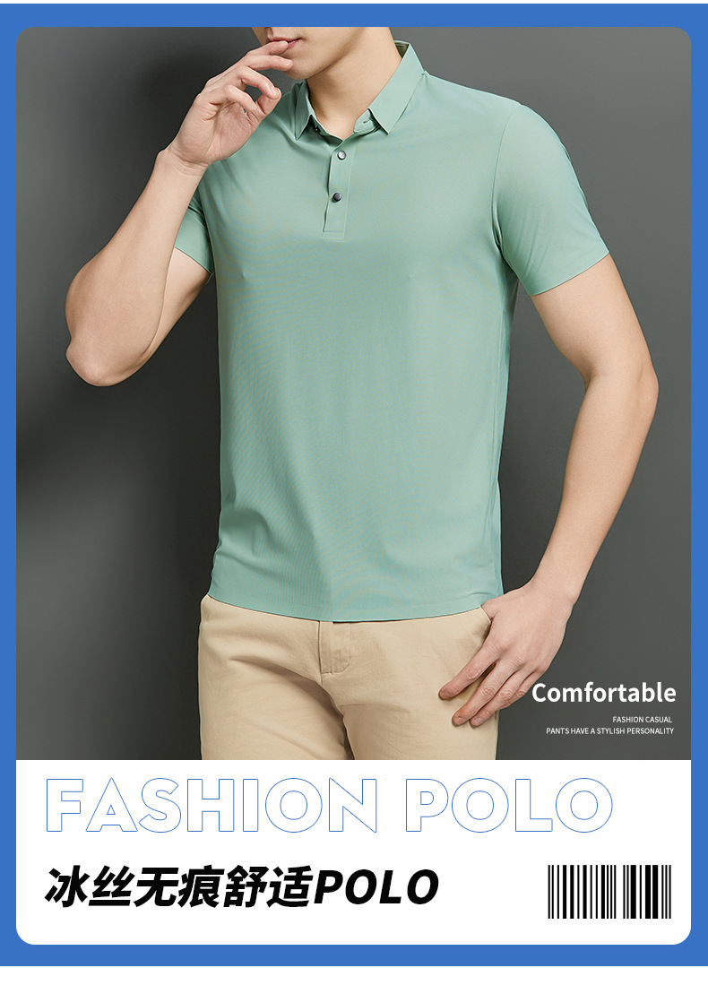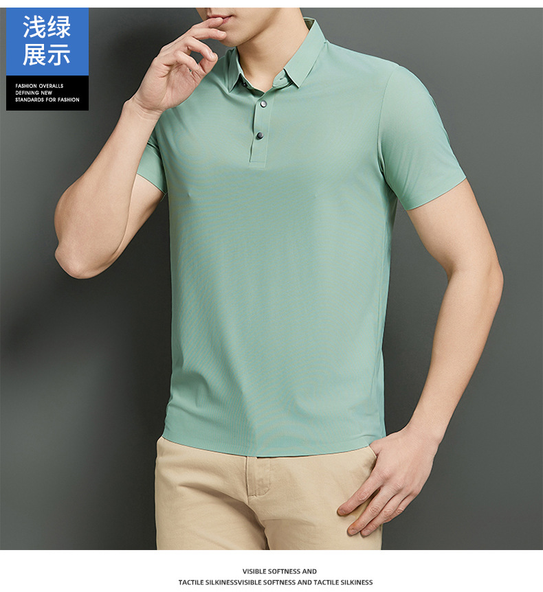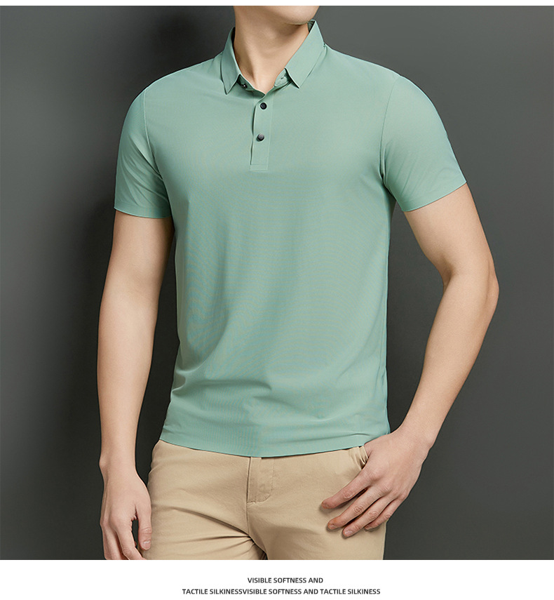 플러스 사이즈 하이 엔드 원활한 아이스 실크 폴로 셔츠 남성 멀티 컬러 2025 여름 패션 브랜드 라펠 폴로 비즈니스 반팔 남성스토어 가기