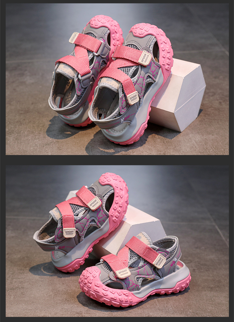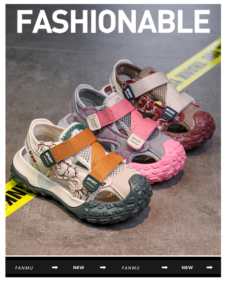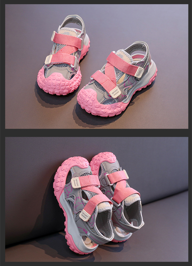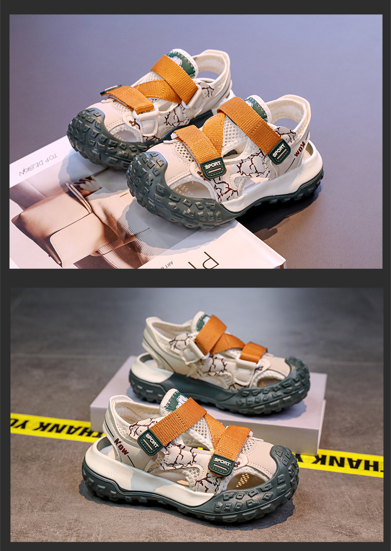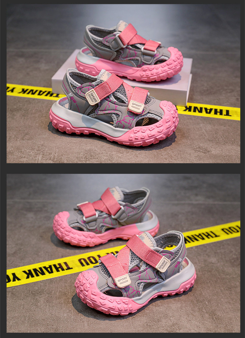 어린이용 속이 빈 스포츠 샌들 2026년 여름 신상품 충격 방지 헤드 가드가 있는 남아용 멋진 배색 캐주얼 슈즈 여아용 아동화스토어 가기