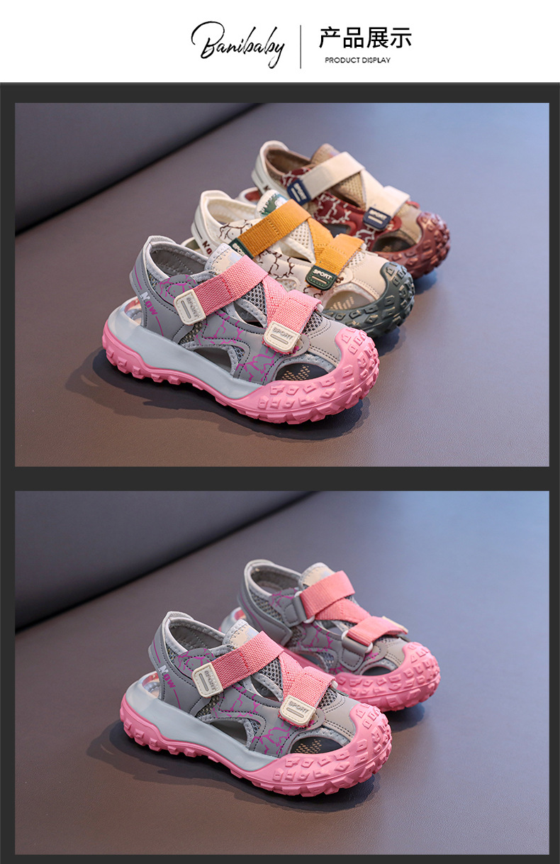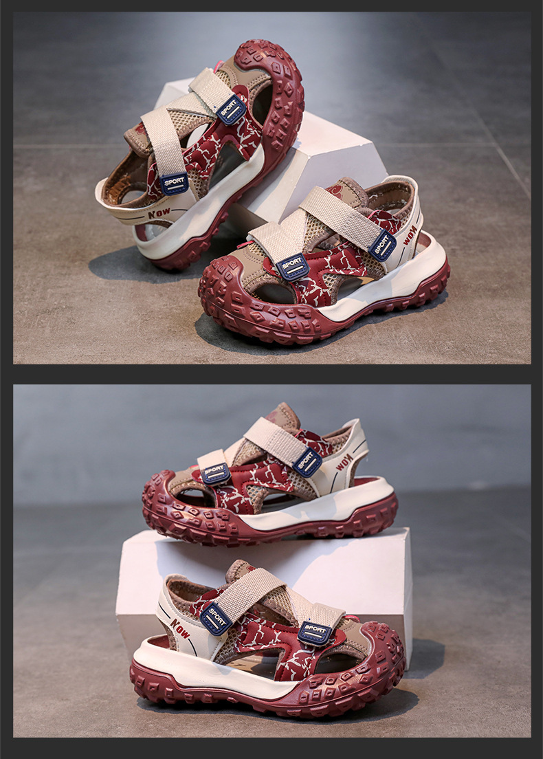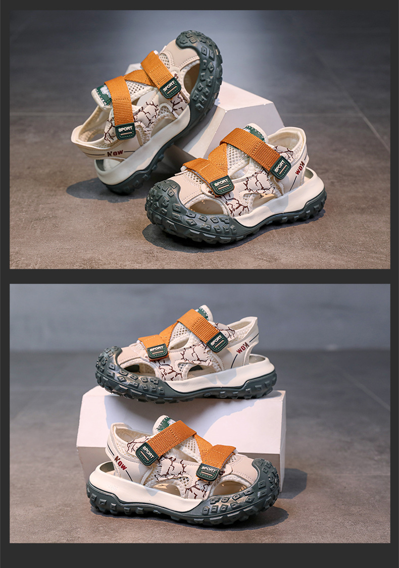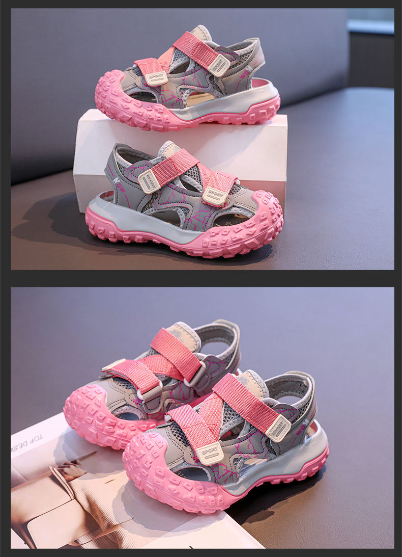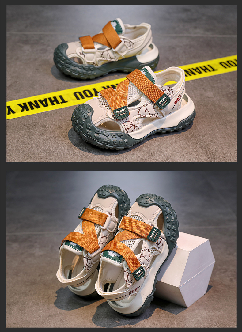 어린이용 속이 빈 스포츠 샌들 2026년 여름 신상품 충격 방지 헤드 가드가 있는 남아용 멋진 배색 캐주얼 슈즈 여아용 아동화스토어 가기