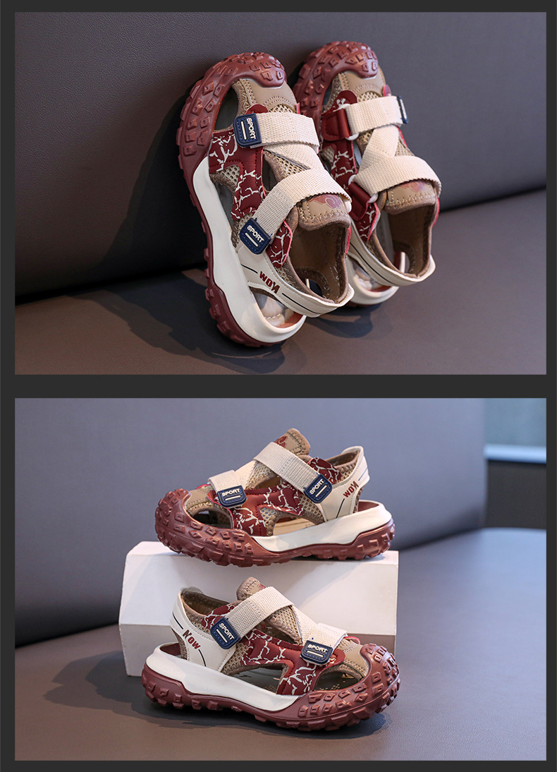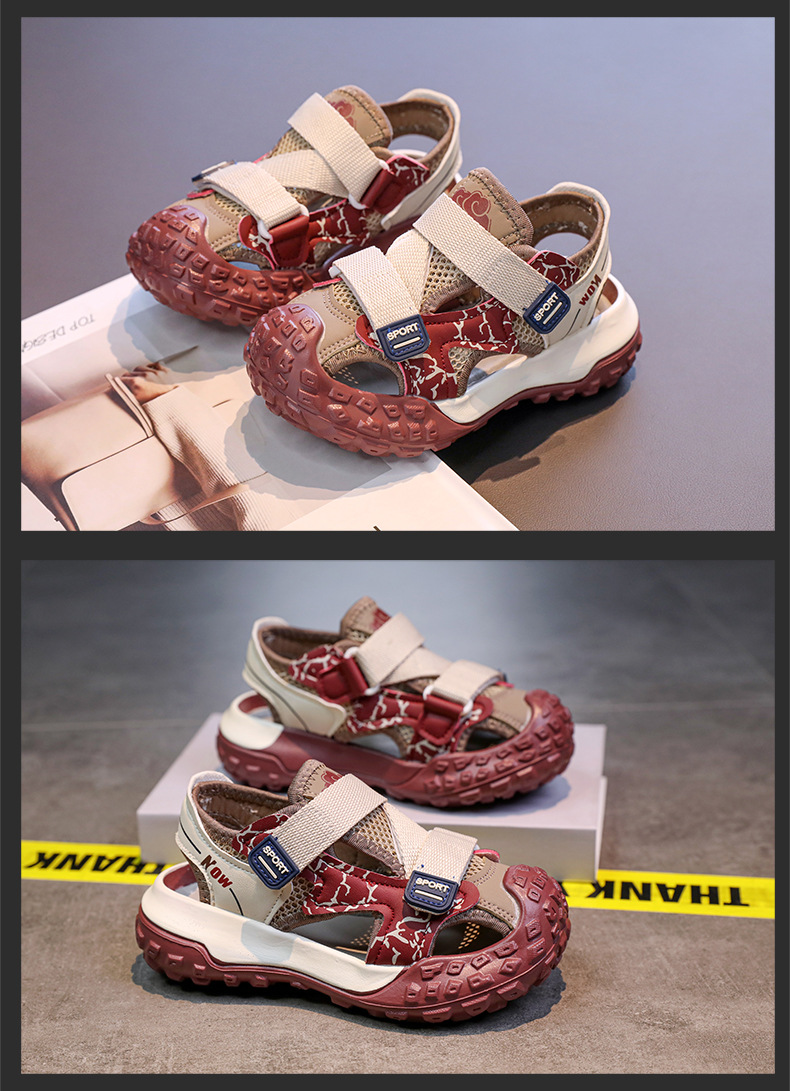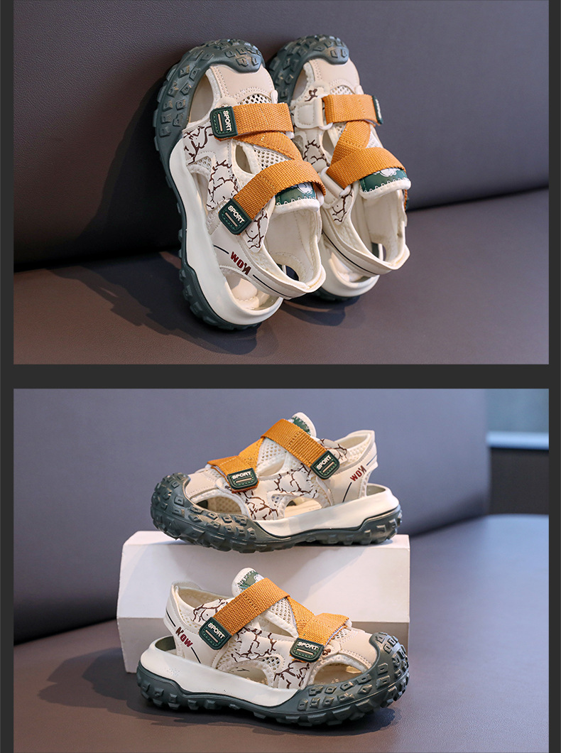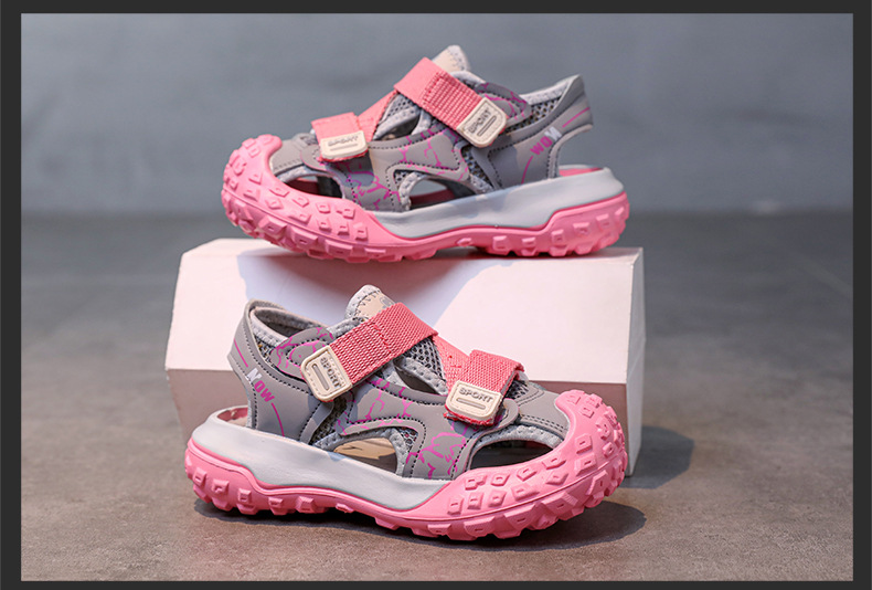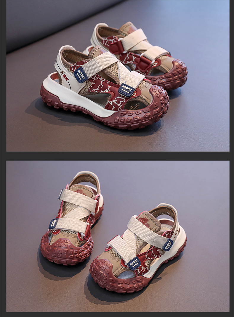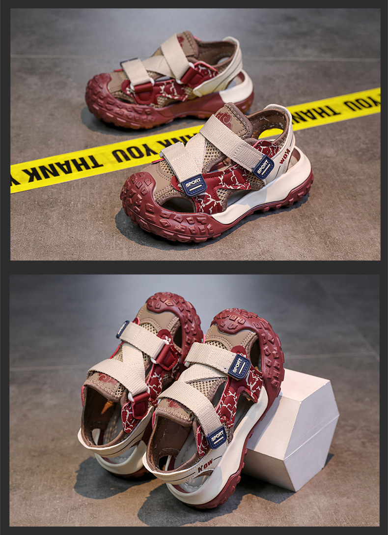 어린이용 속이 빈 스포츠 샌들 2026년 여름 신상품 충격 방지 헤드 가드가 있는 남아용 멋진 배색 캐주얼 슈즈 여아용 아동화스토어 가기