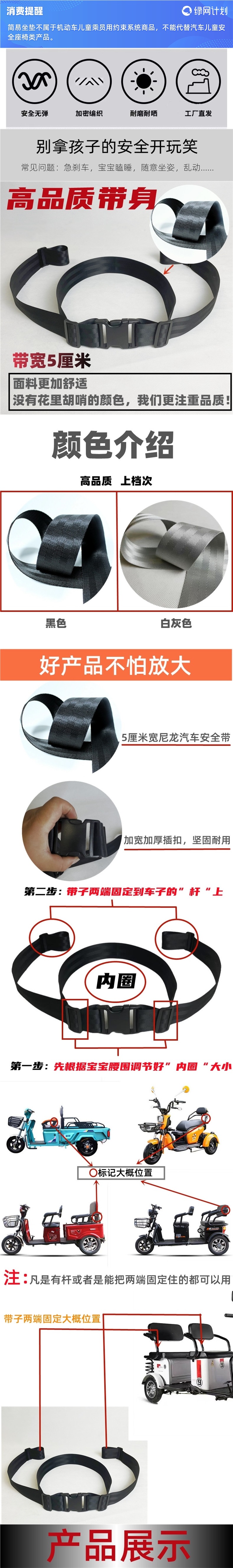 어린이용 전기차 뒷좌석 스트랩이 있는 삼륜차, 유아용 시트 고정보호벨트, 자전거 타고 아기