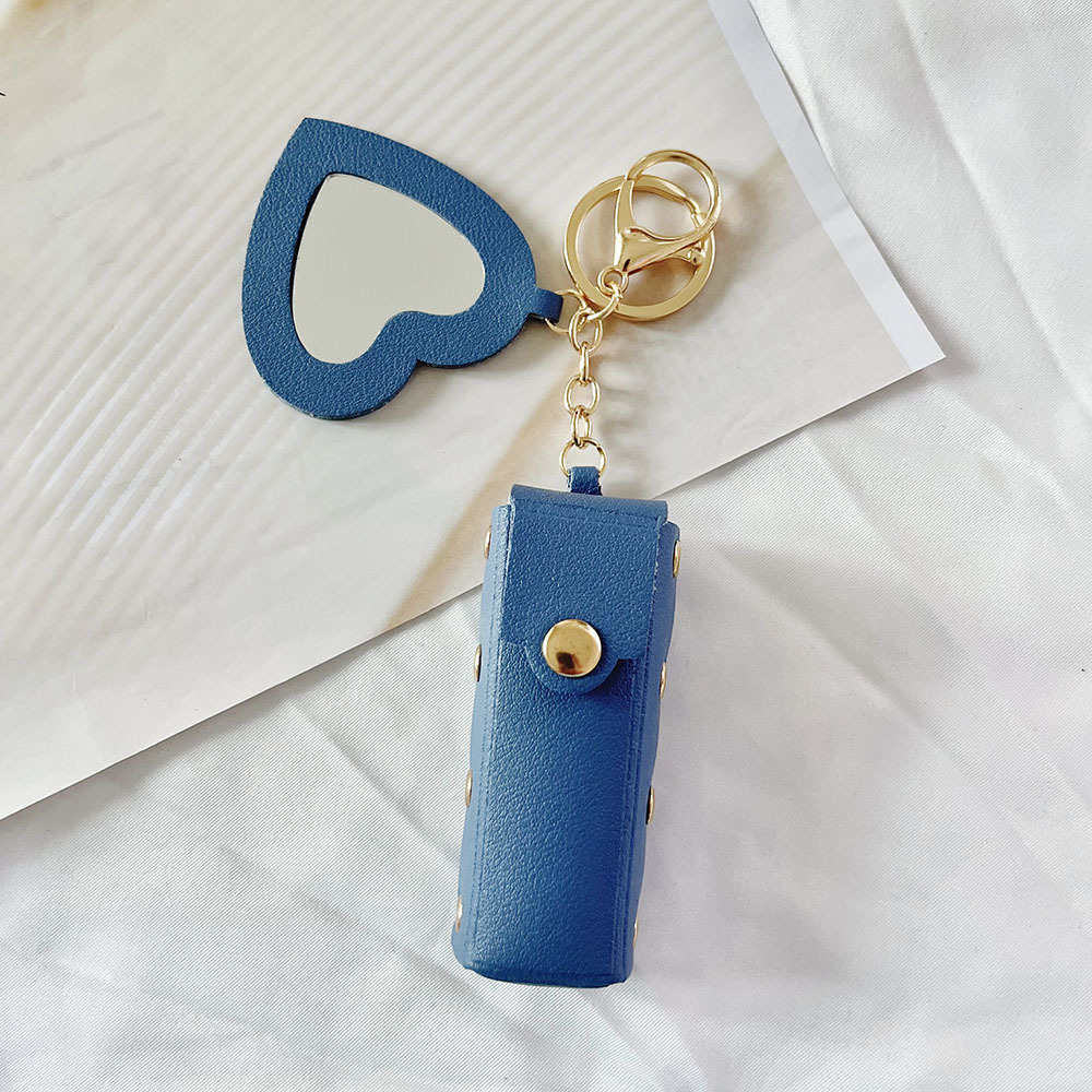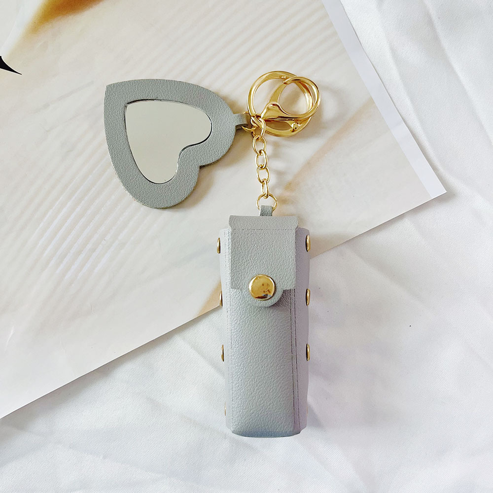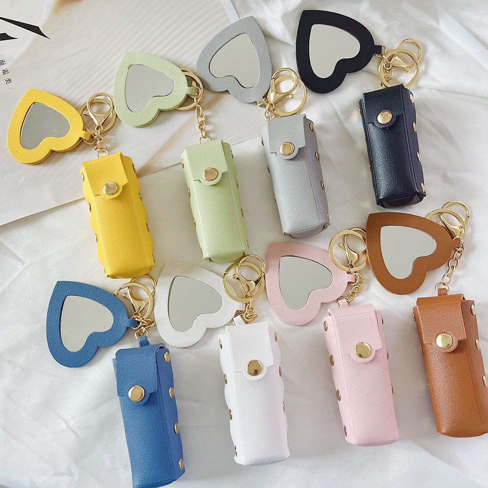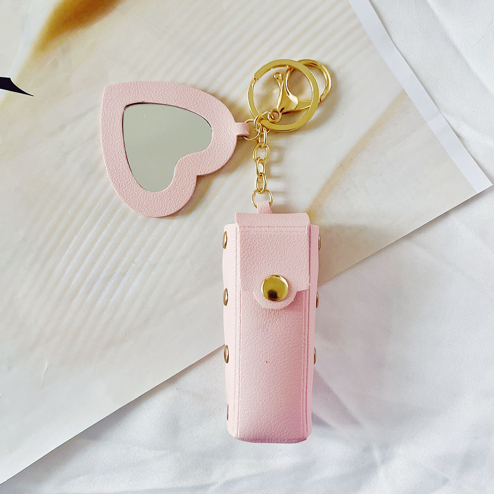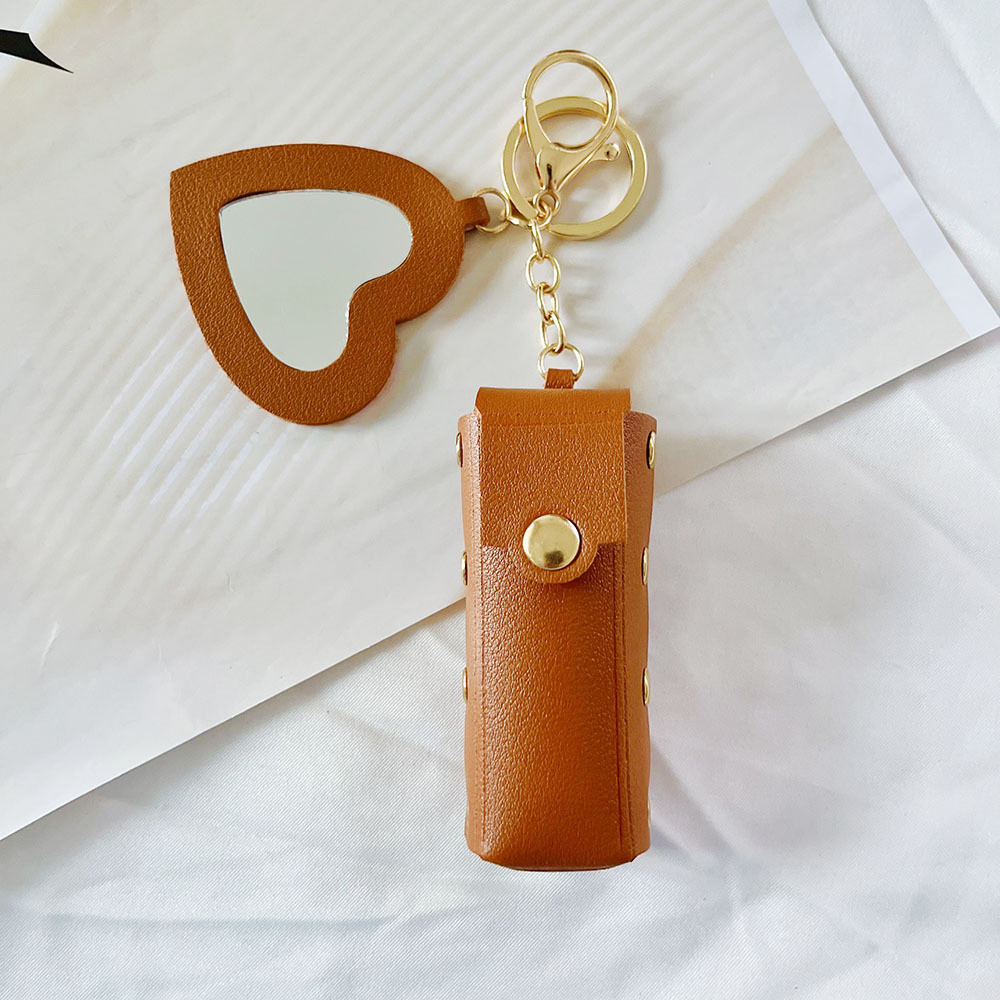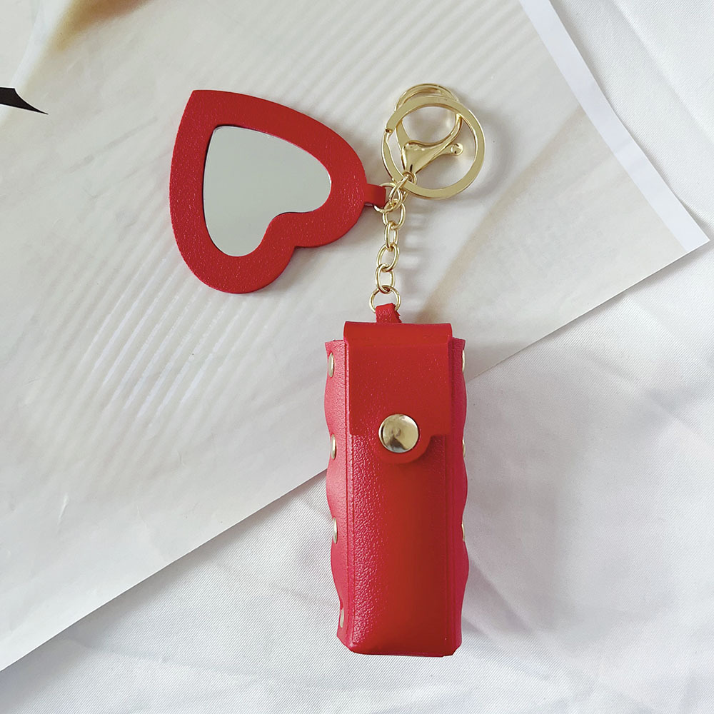 국경 간 가죽 사랑 거울 립스틱 가방 키 체인 크리 에이 티브 휴대용 화장품 거울 가방 자동차 키 체인 액세서리