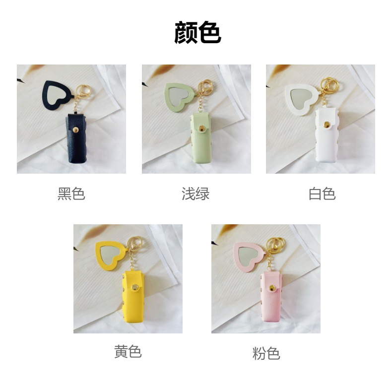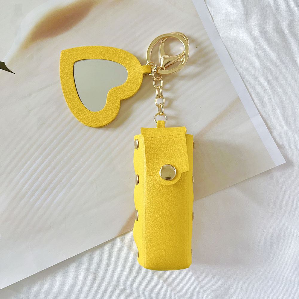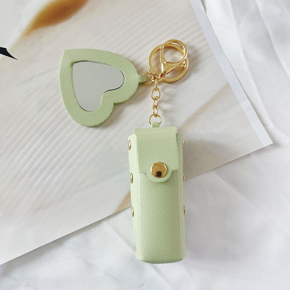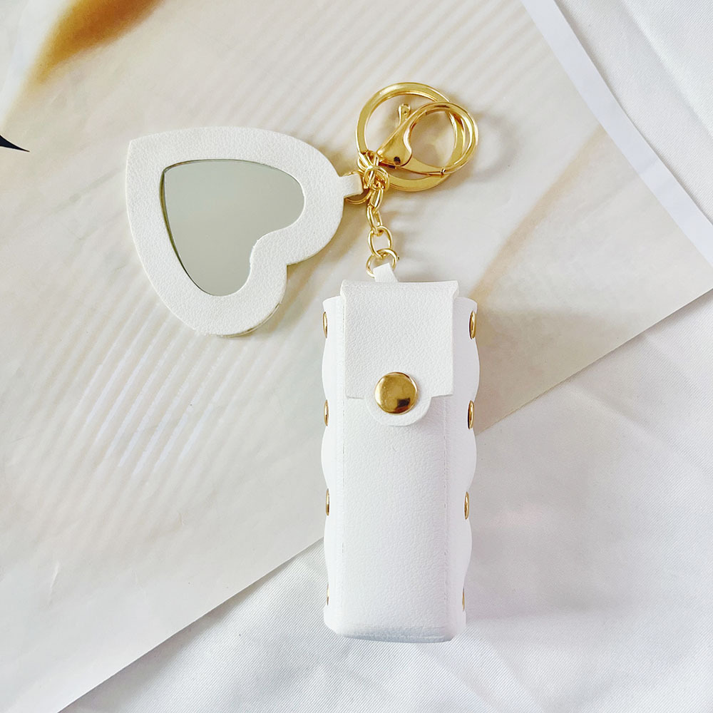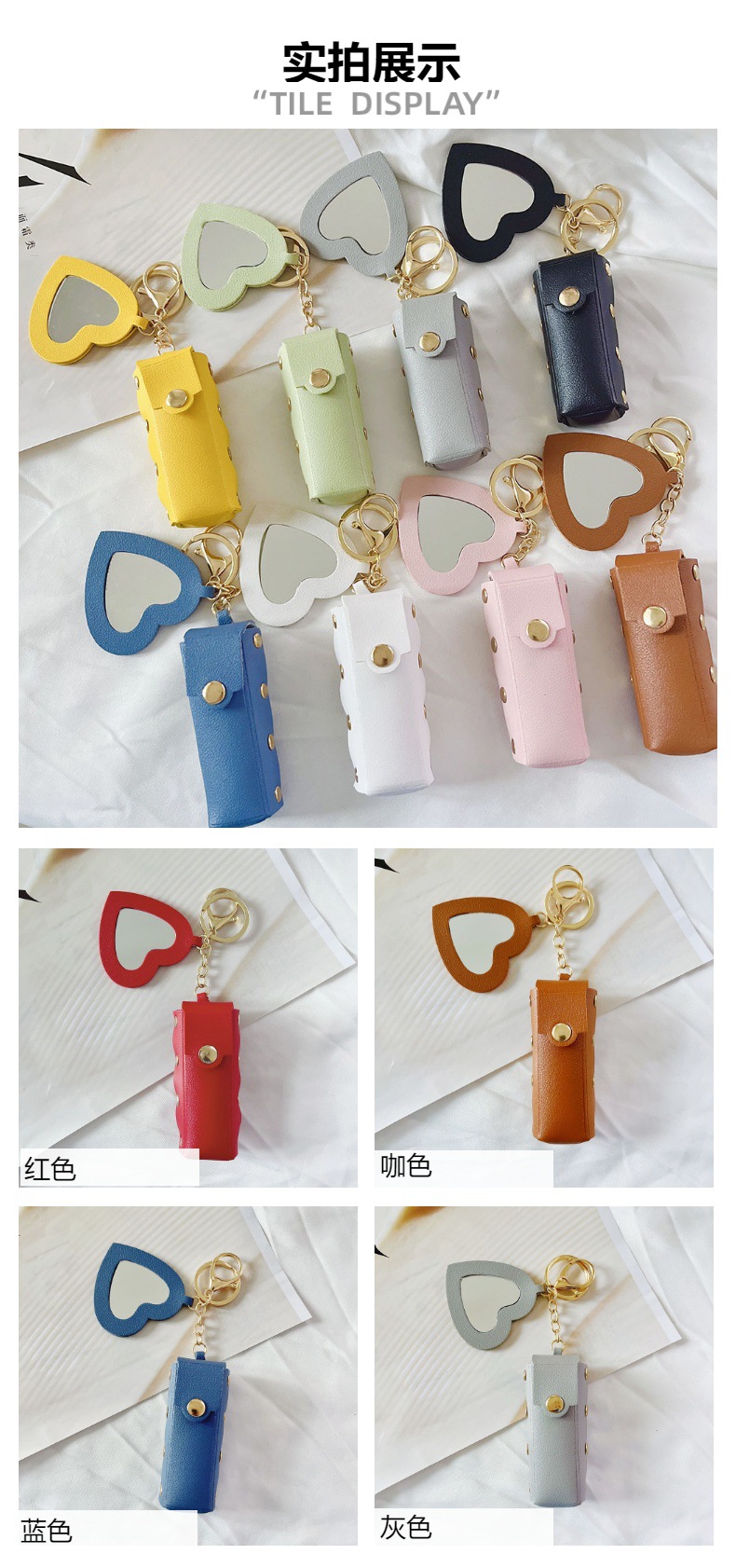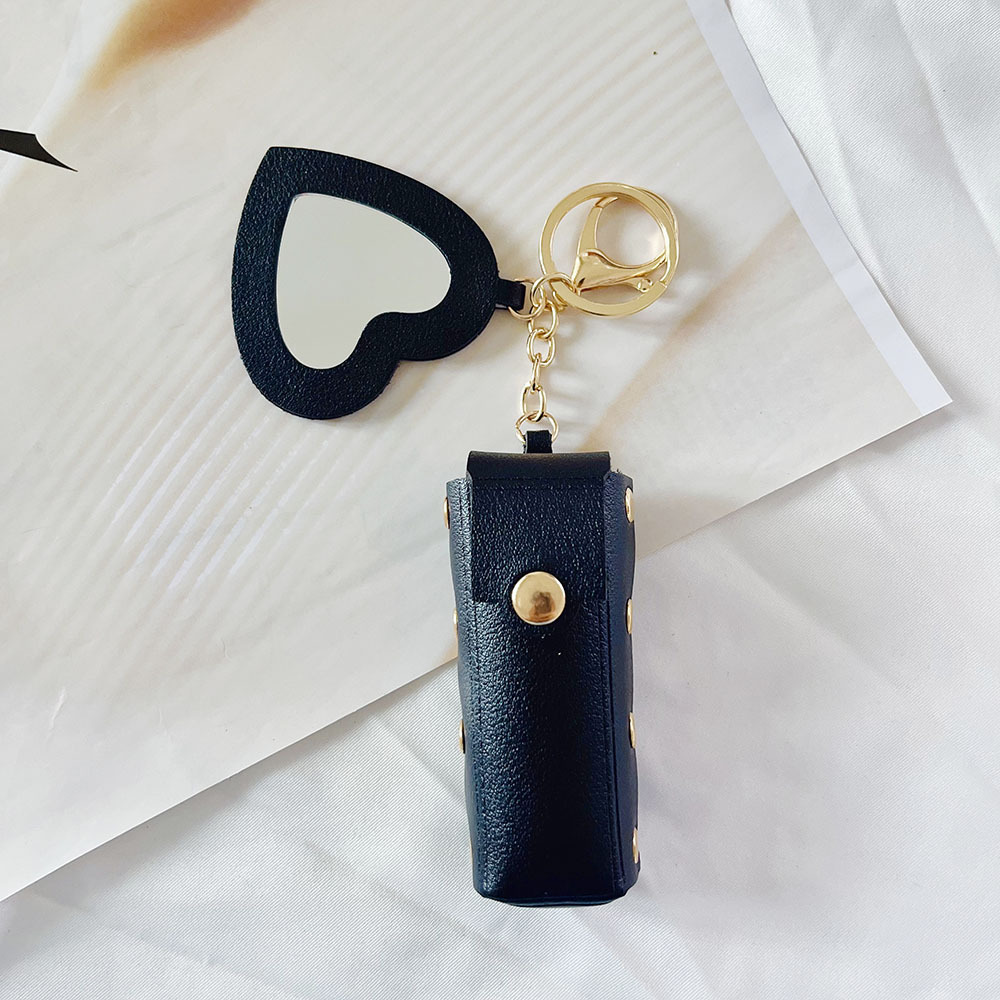 국경 간 가죽 사랑 거울 립스틱 가방 키 체인 크리 에이 티브 휴대용 화장품 거울 가방 자동차 키 체인 액세서리