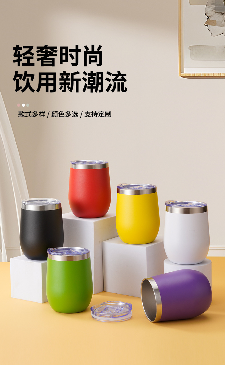 304 스테인리스 스틸 달걀껍질컵 휴대용 크로스보더 U자형 레드와인 보온컵 12온스 컵 미국식 도매 항공컵스토어 가기