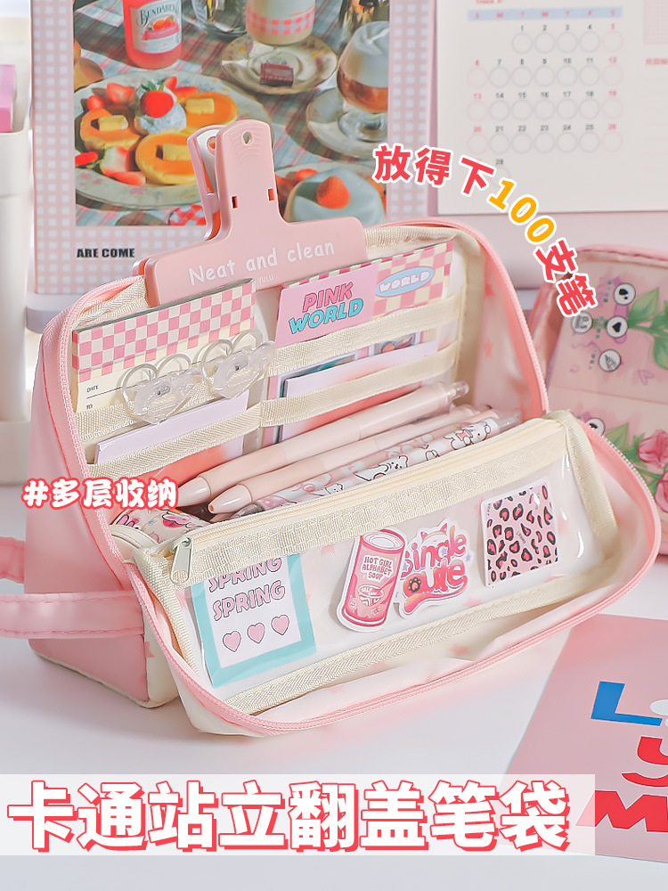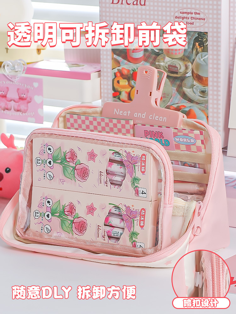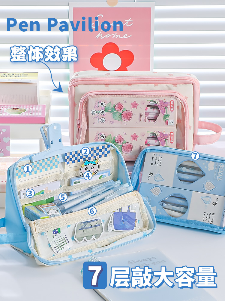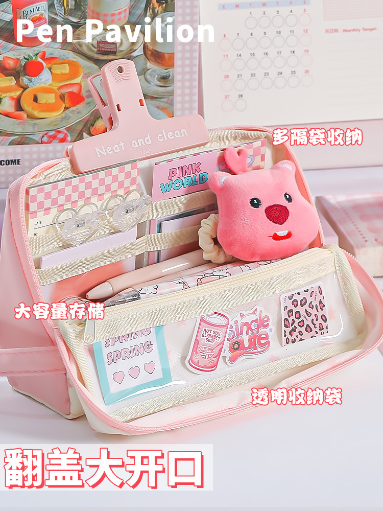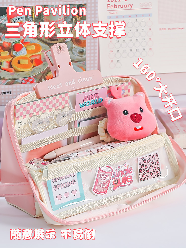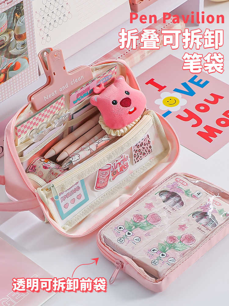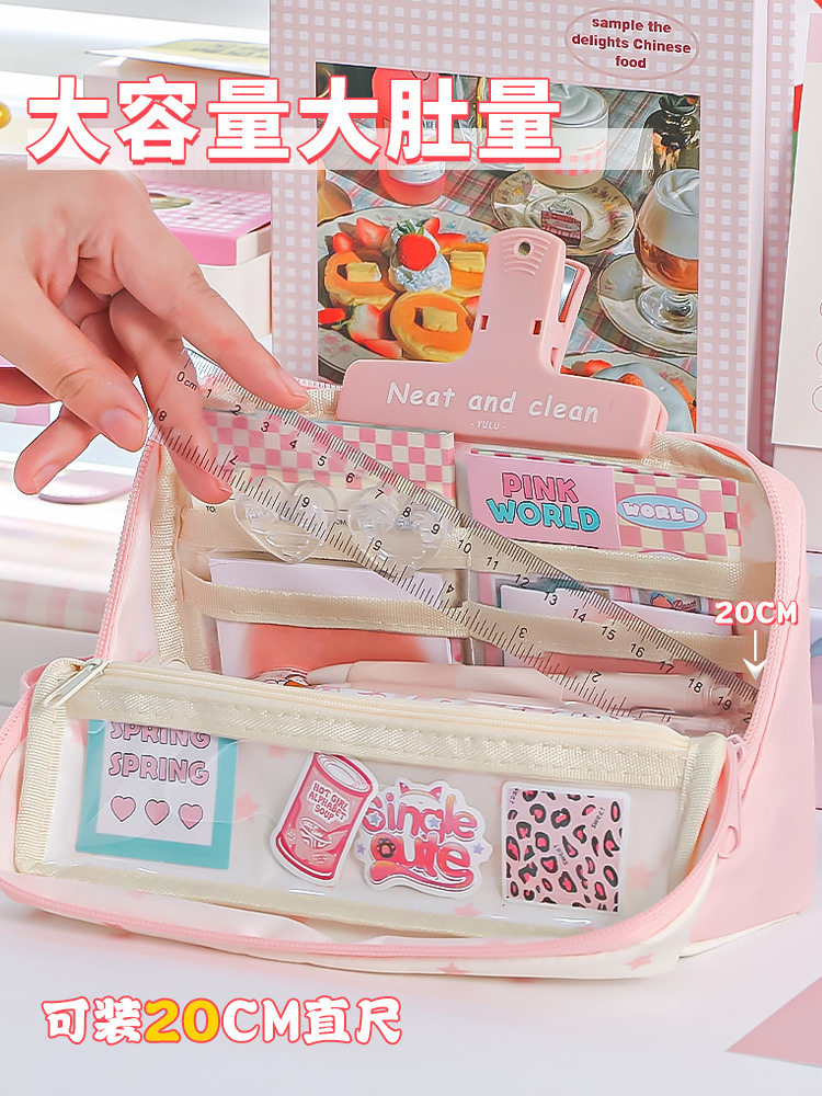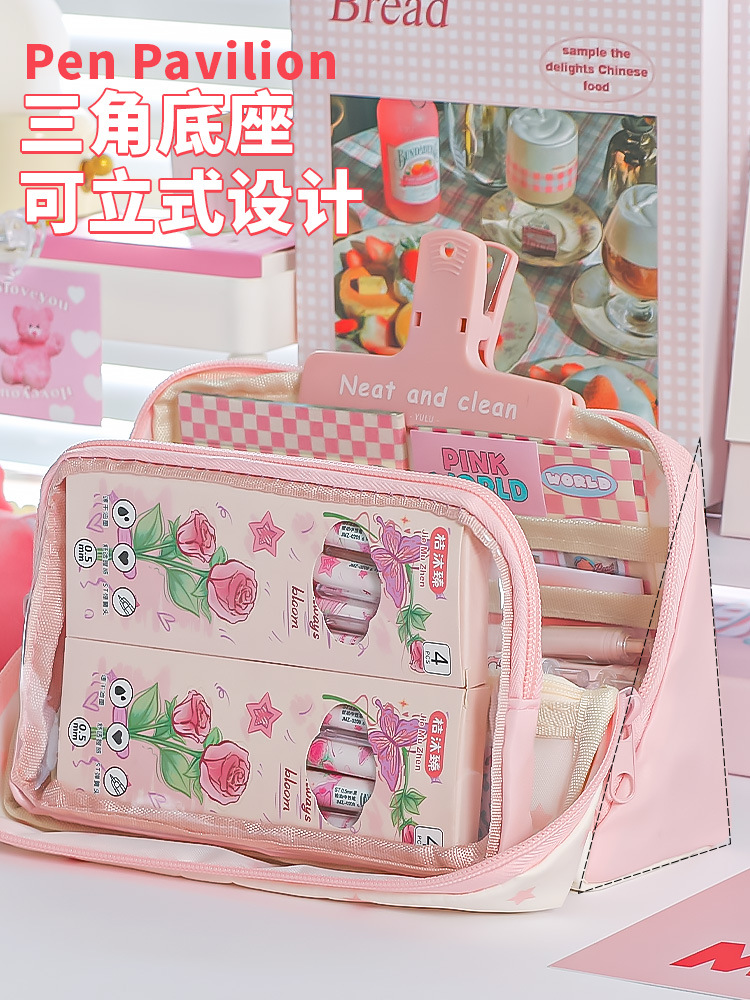 소녀 용 파빌리온 대용량 투명 연필 가방 스타일 다기능 문구 가방 문구 상자 쓰기스토어 가기