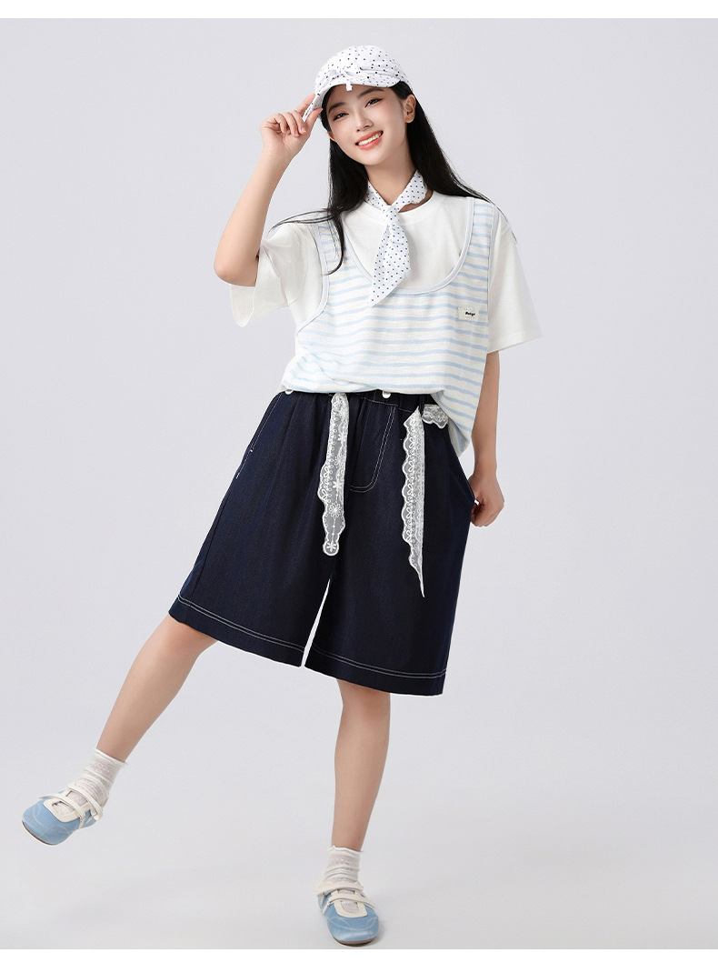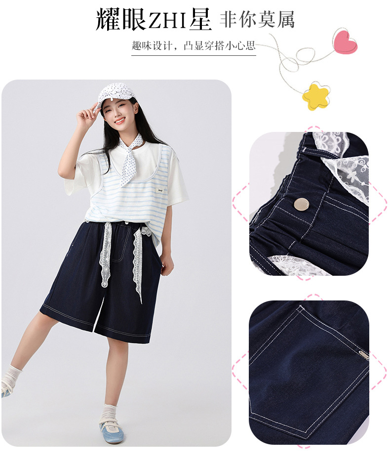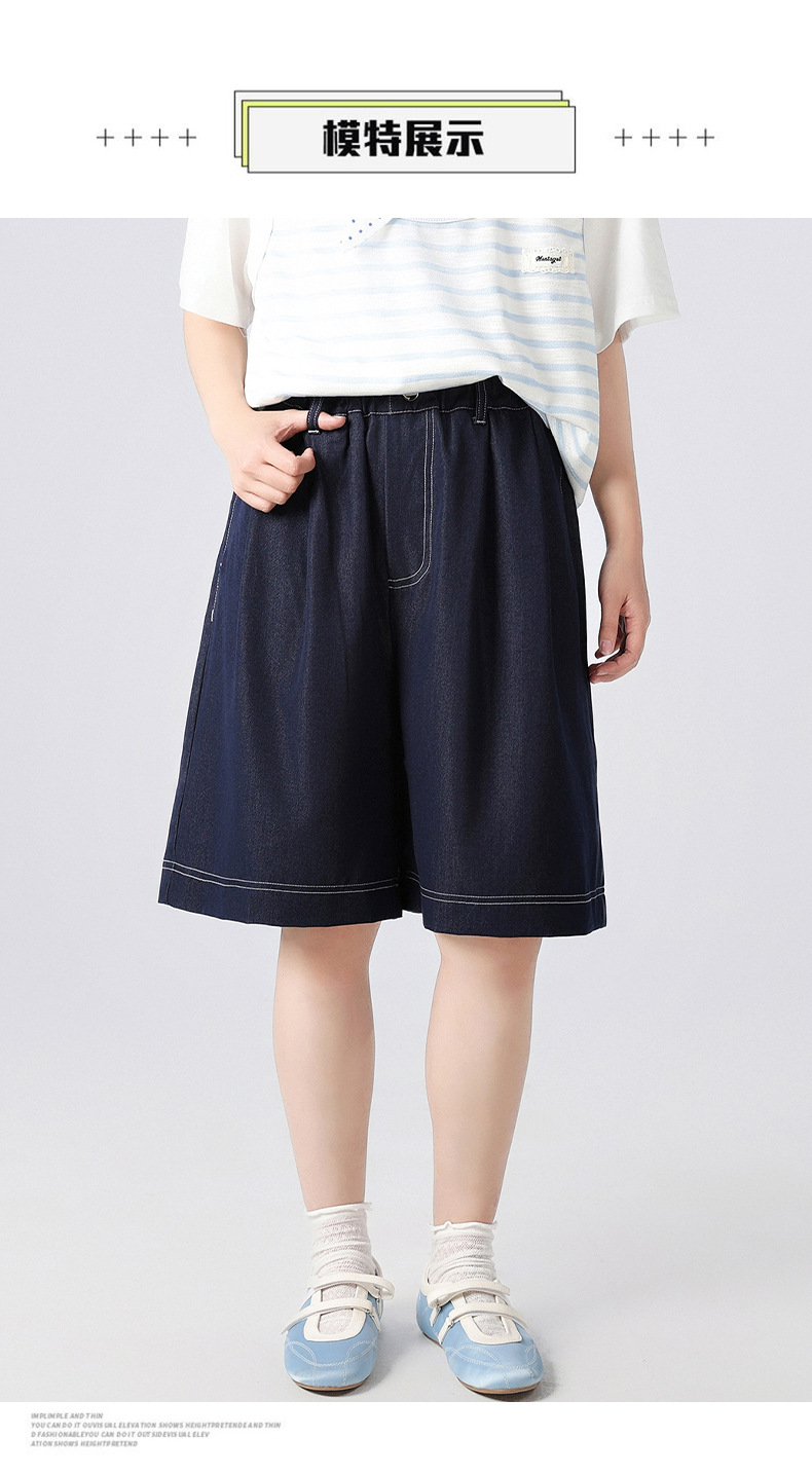 중학생 여름 얇은 데님 텐셀 반바지 5 점 바지 대형 어린이 플러스 사이즈 느슨한 바지스토어 가기