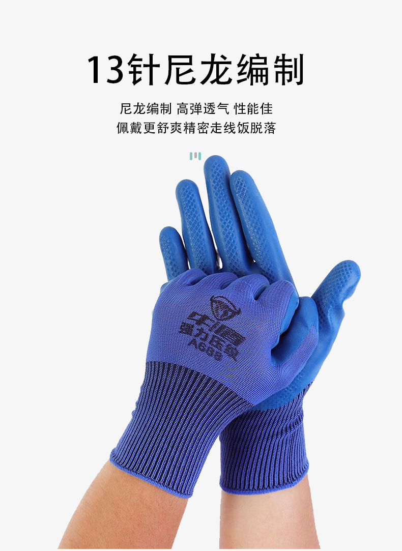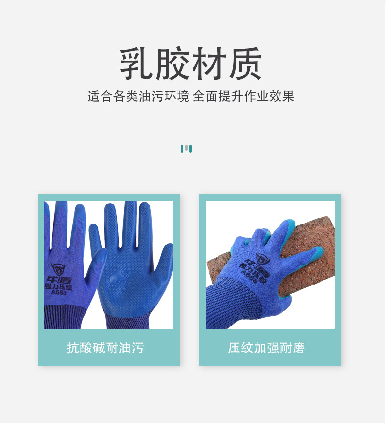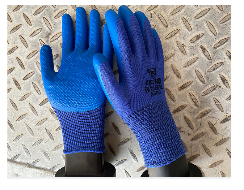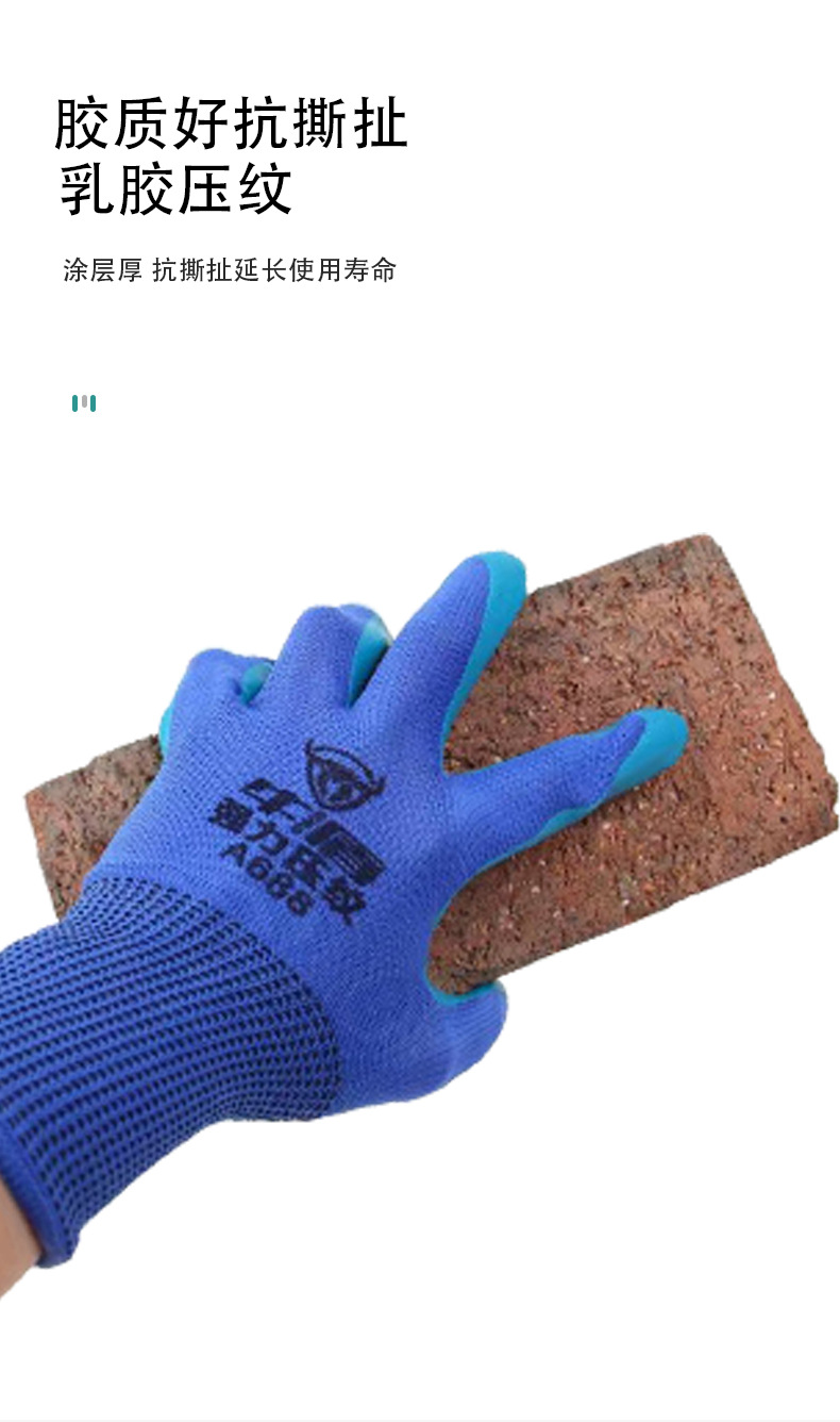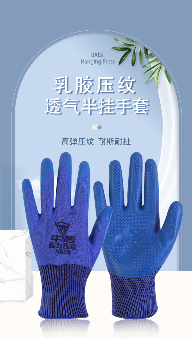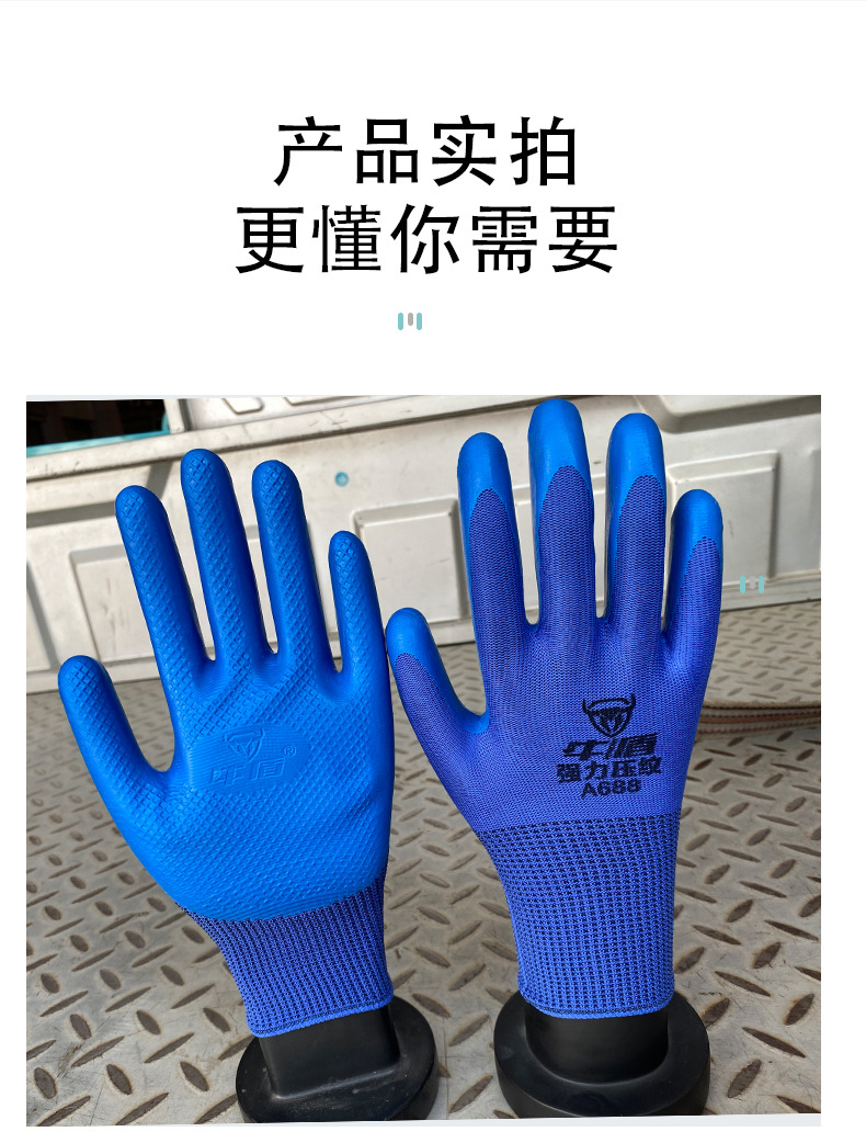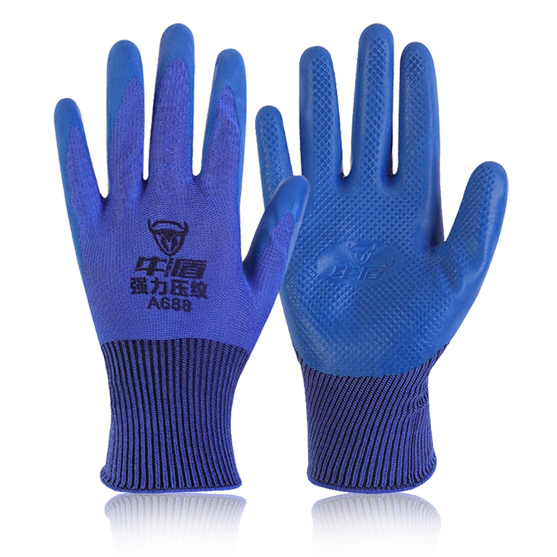 Niudun A688 반걸이 라텍스 장갑 미끄럼 방지 및 내마모성 건설 현장 작업 통기성 고무 딥 엠보싱 노동 보호 장갑스토어 가기