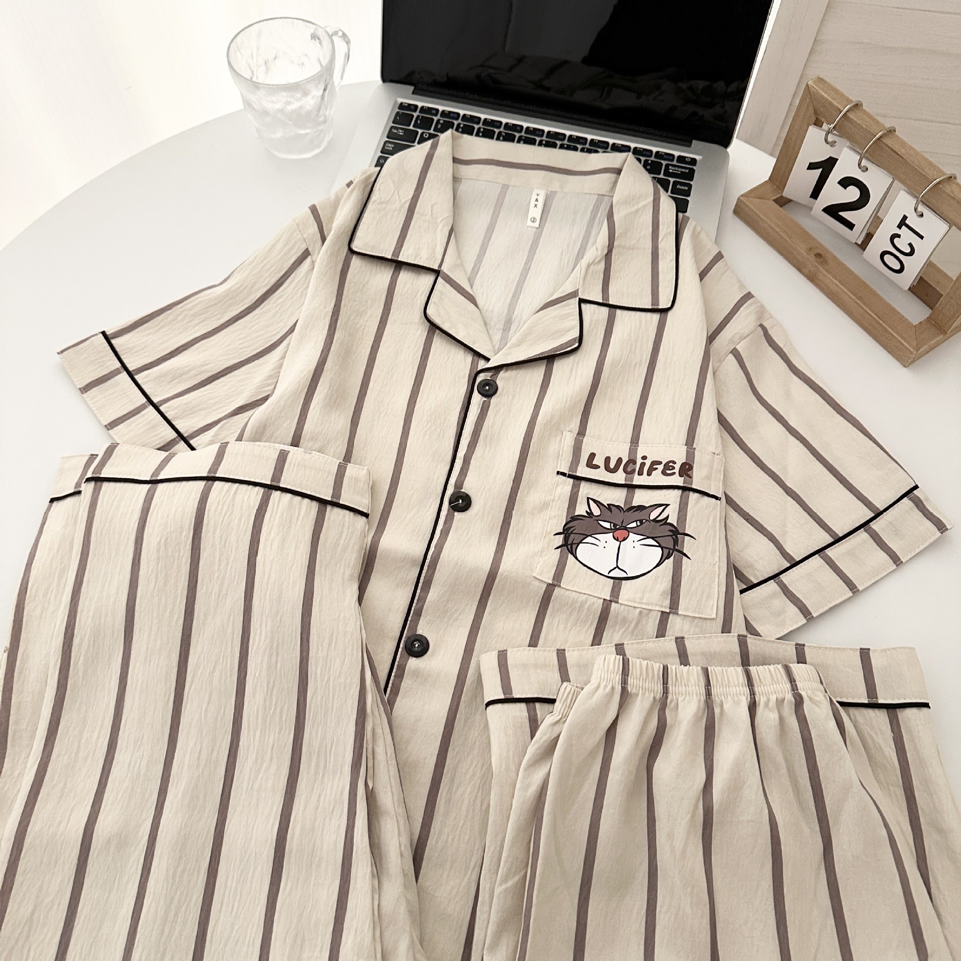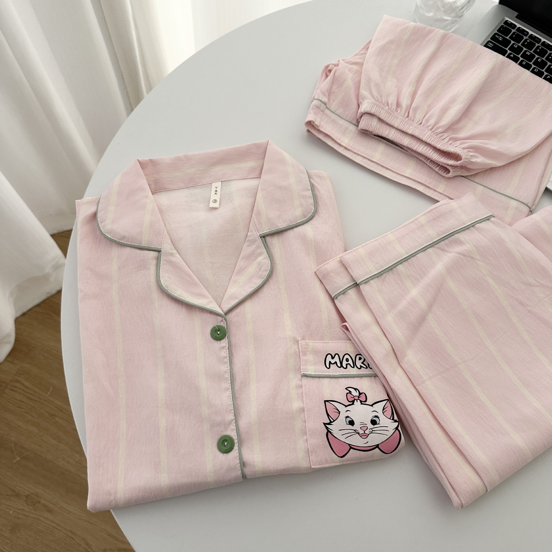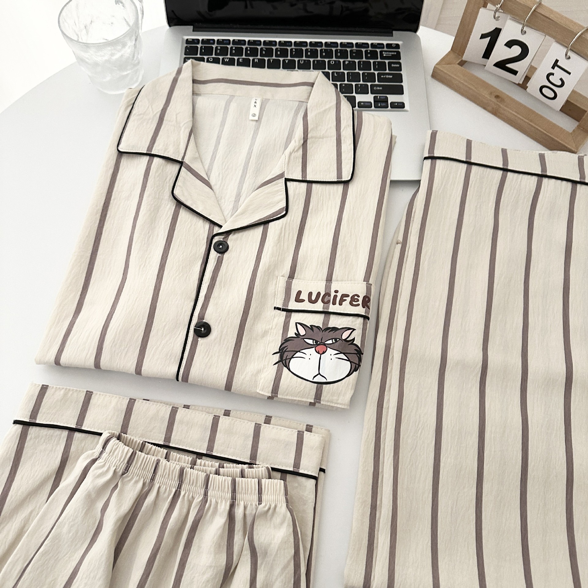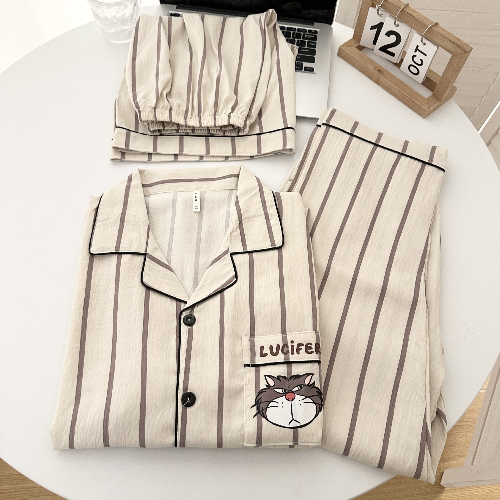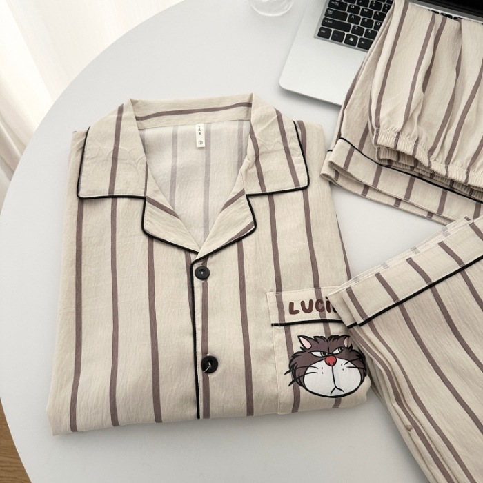 2025 한국어 버전 클라우드 코튼 3 피스 루스포 파자마 남성 여름 인터넷 연예인 소녀 반팔 홈웨어 세트스토어 가기