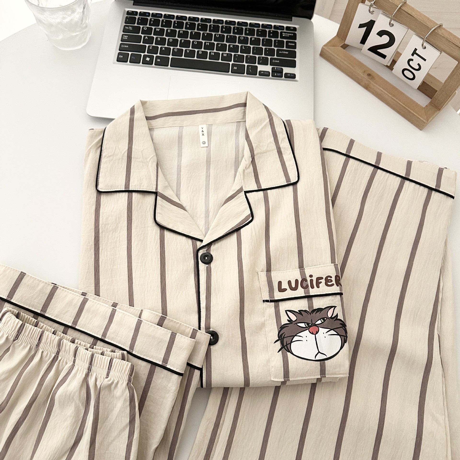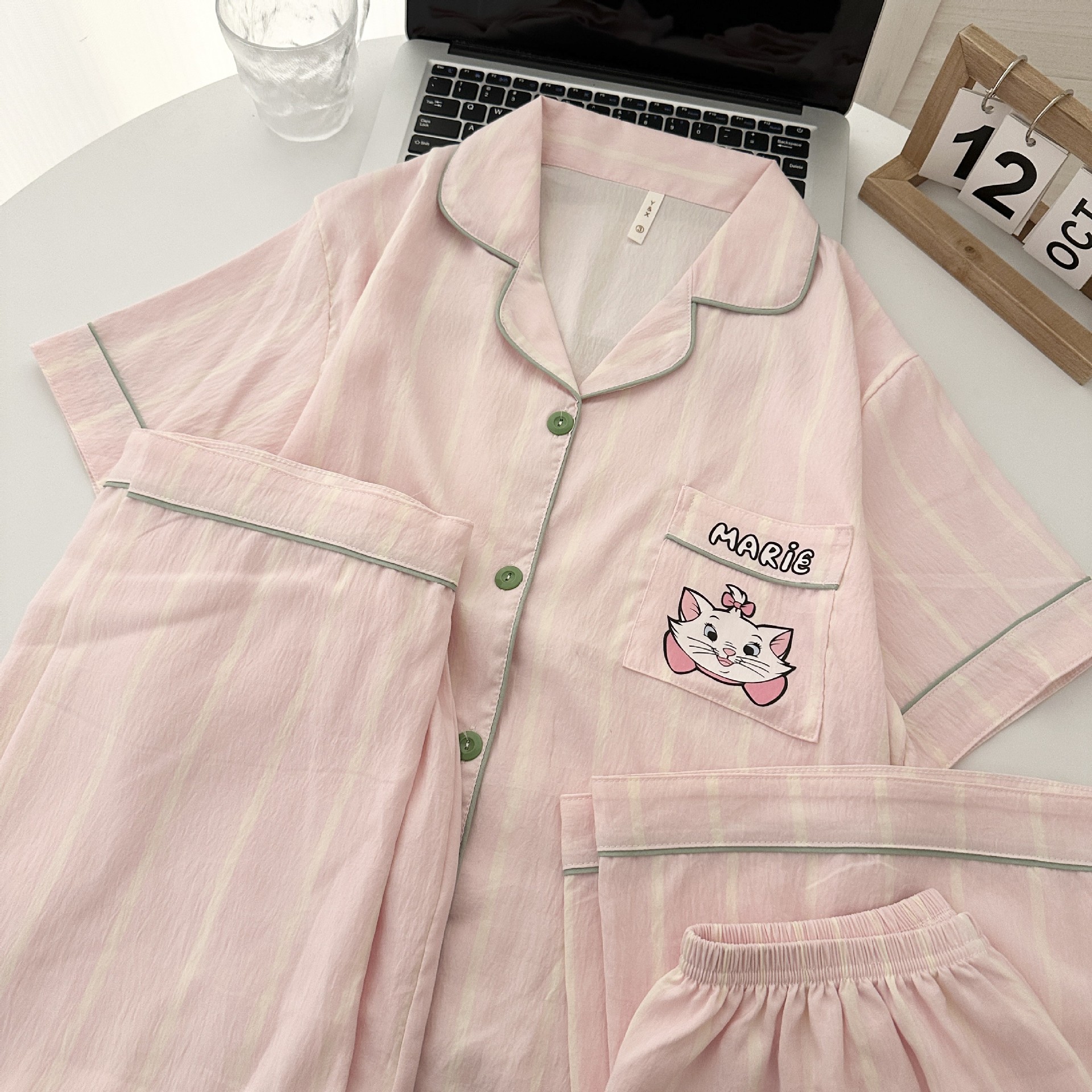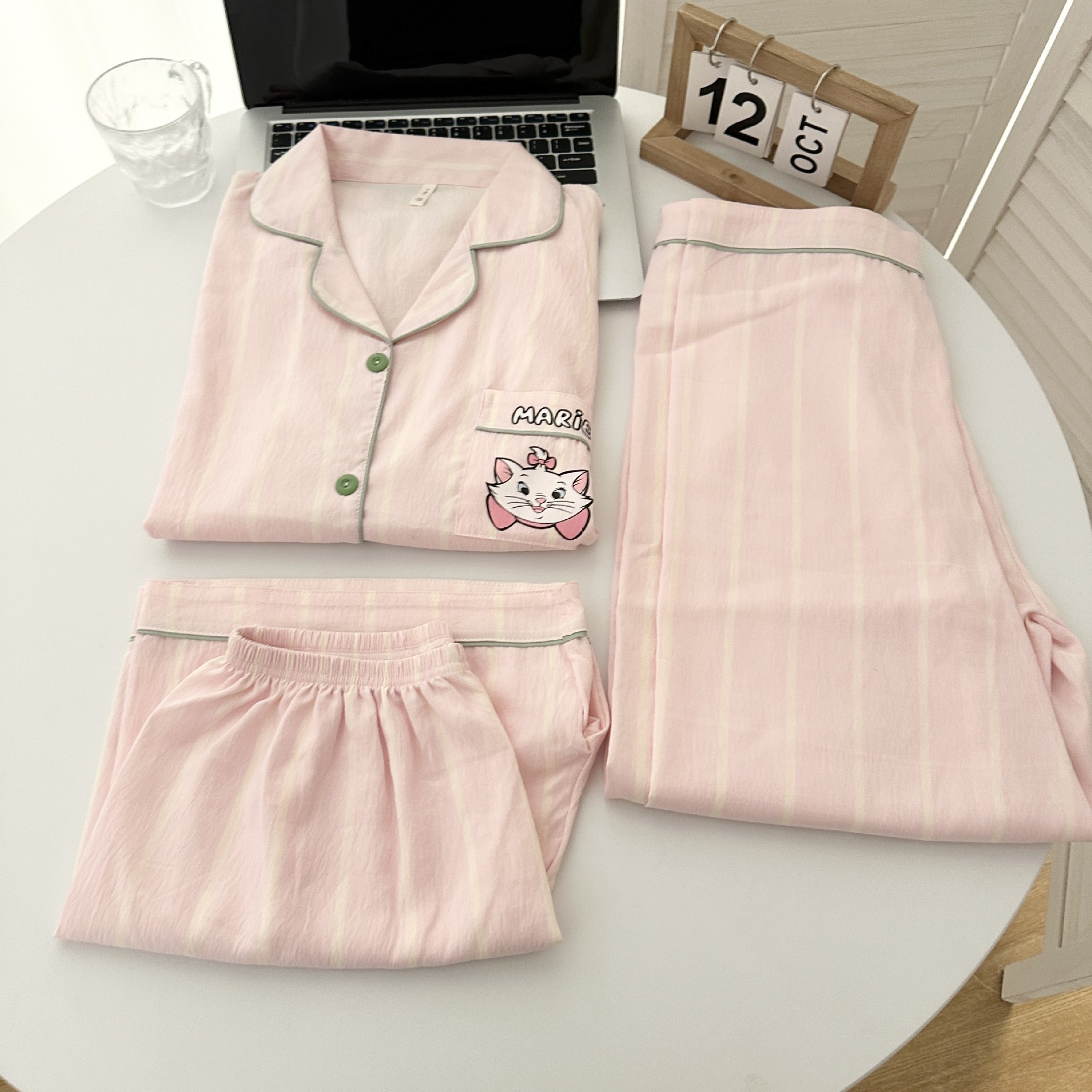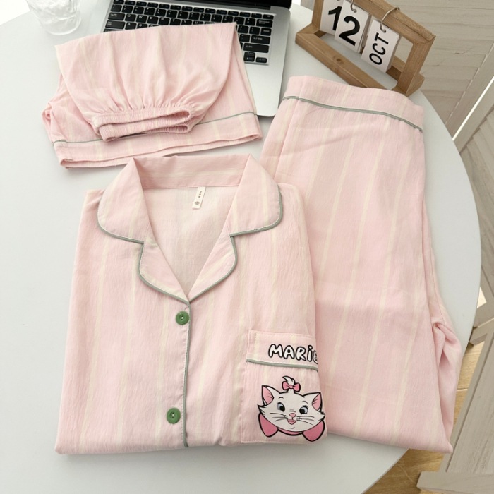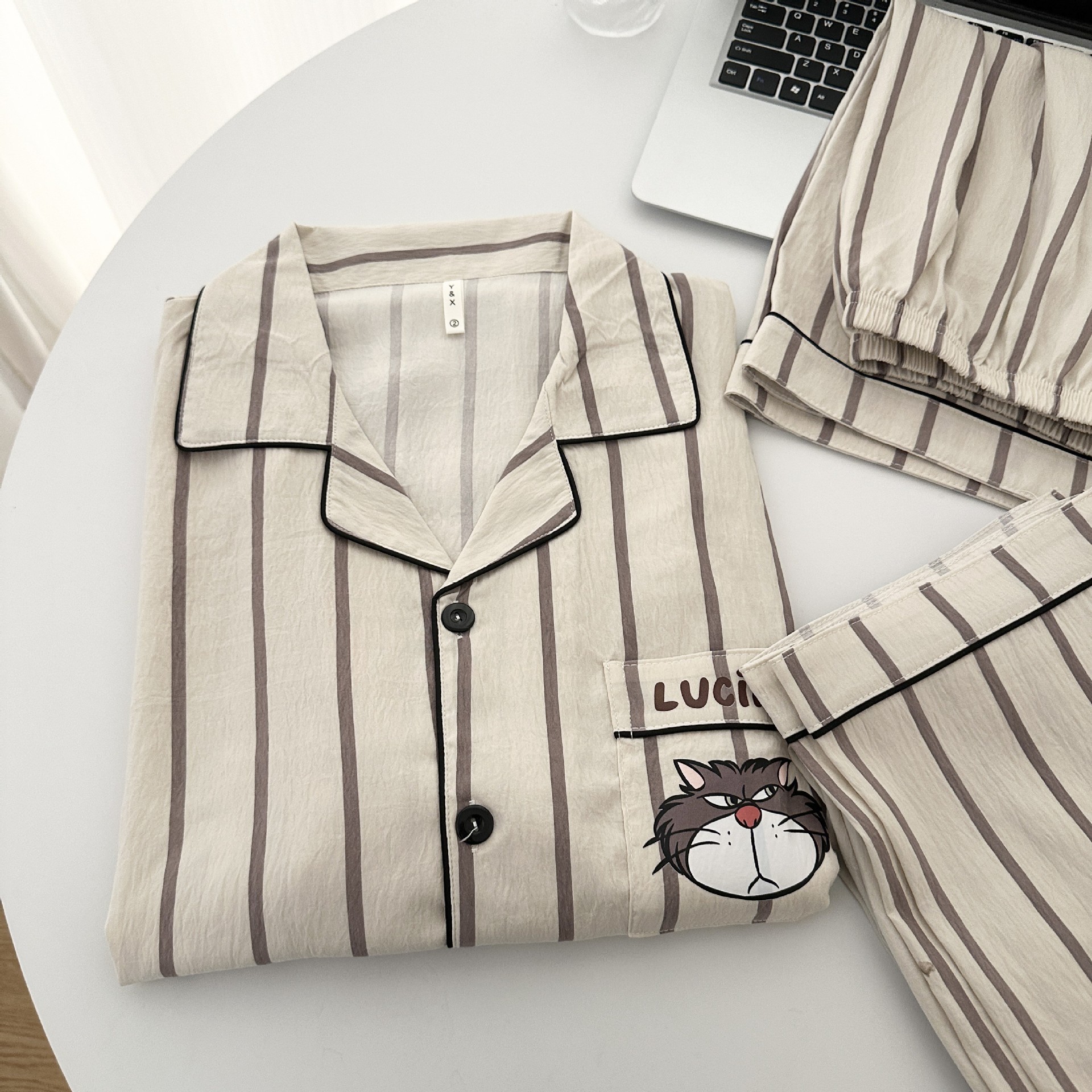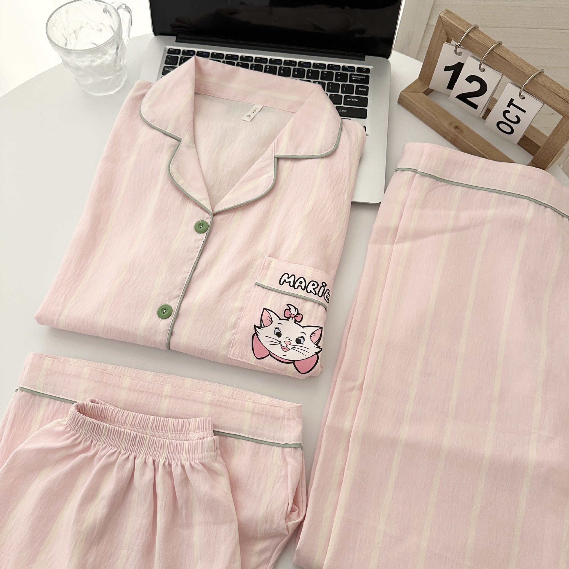 2025 한국어 버전 클라우드 코튼 3 피스 루스포 파자마 남성 여름 인터넷 연예인 소녀 반팔 홈웨어 세트스토어 가기