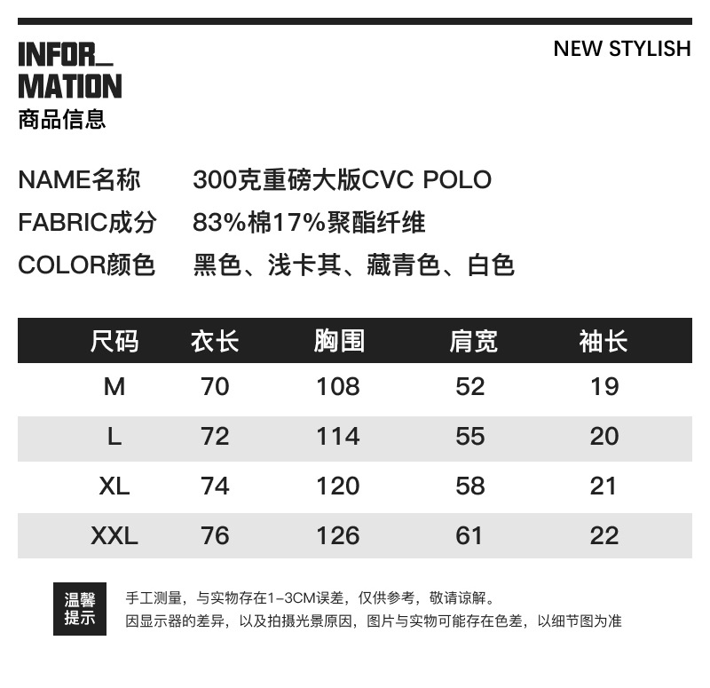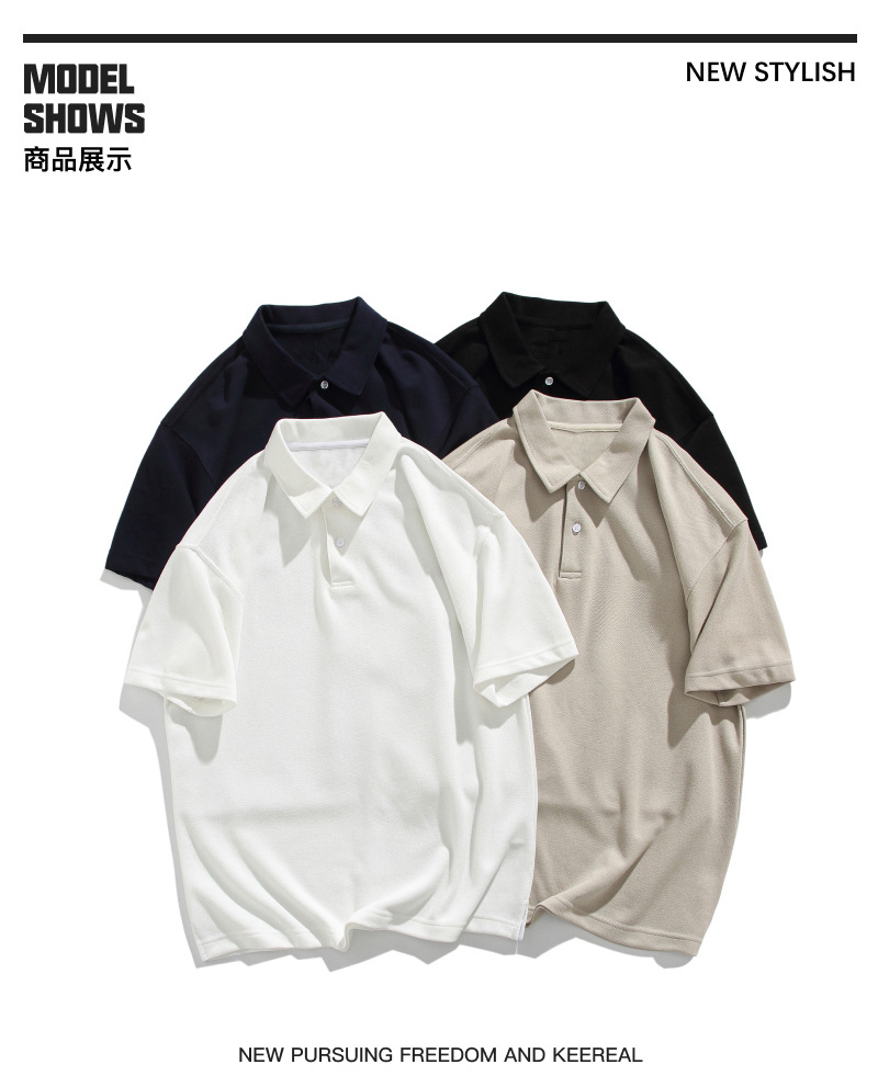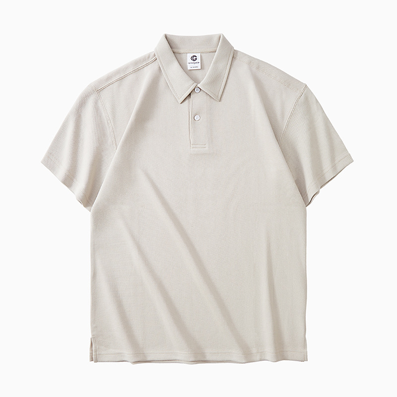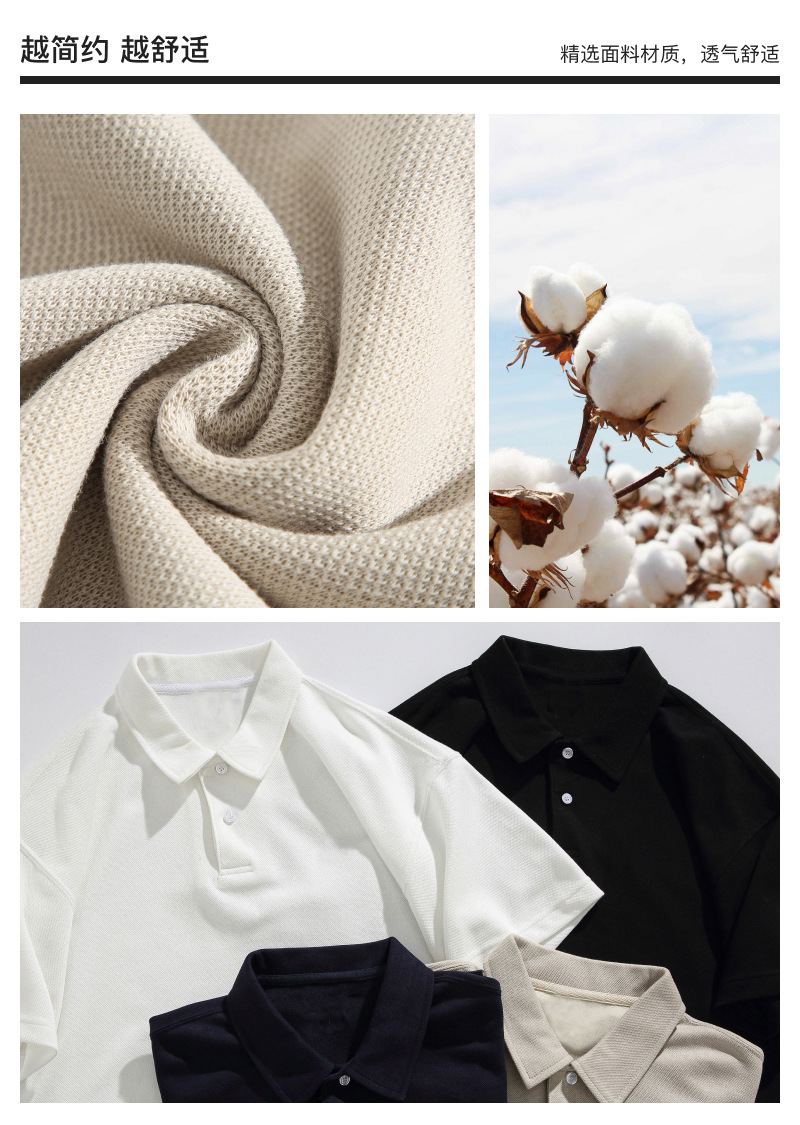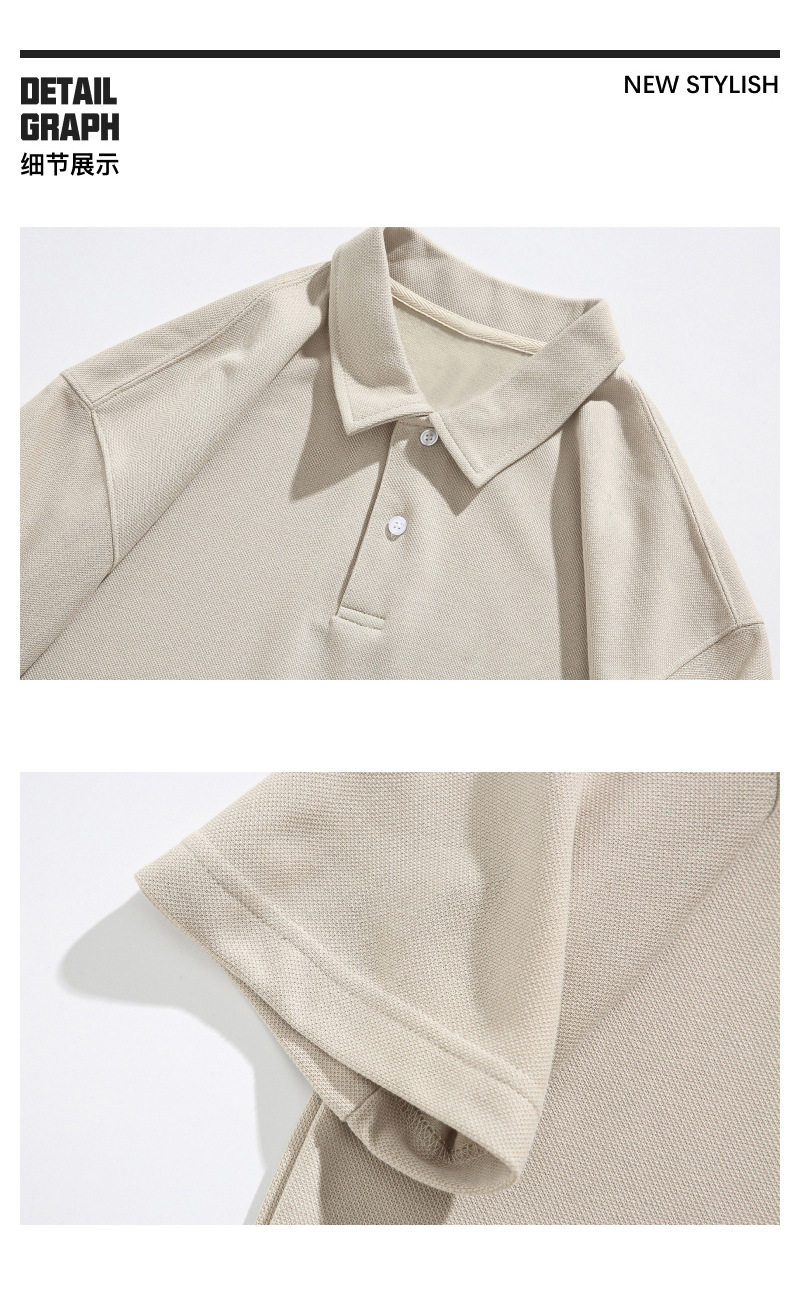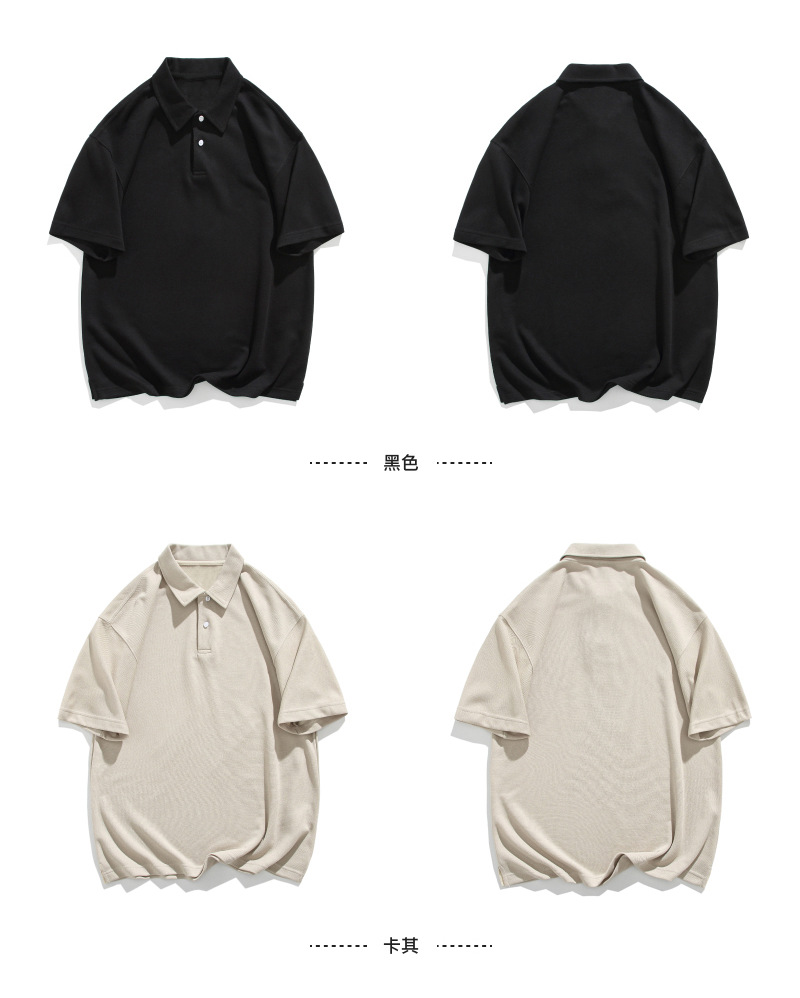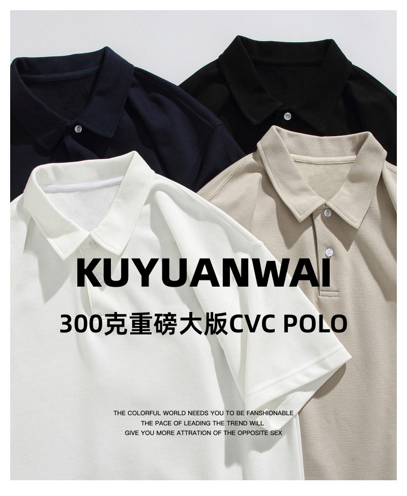남성용 300g 헤비웨이트 라지 사이즈 티셔츠, 남성용 순면 단색 반팔 편안한 라펠 통기성 루즈핏 상의, 남성 여름용스토어 가기