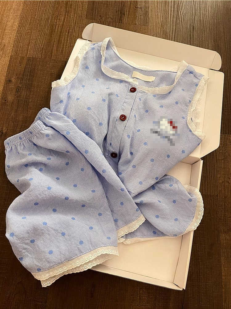 국경 도매 파자마 여성 여름 얇은 레이스 조끼 반바지 세트 귀여운 집 옷스토어 가기