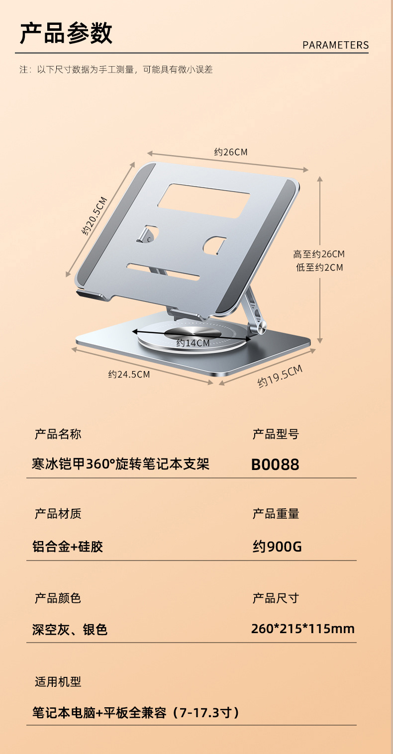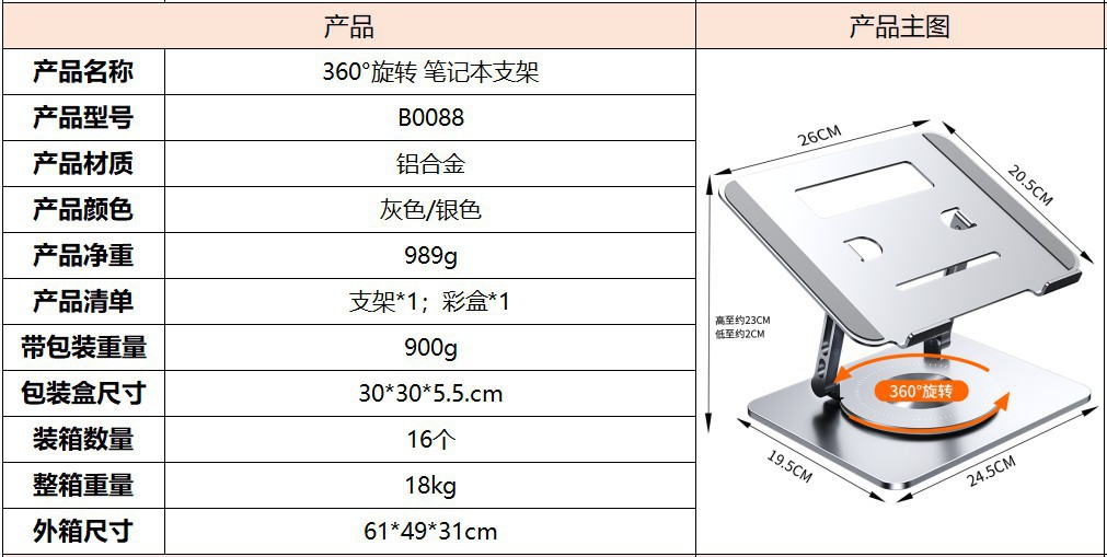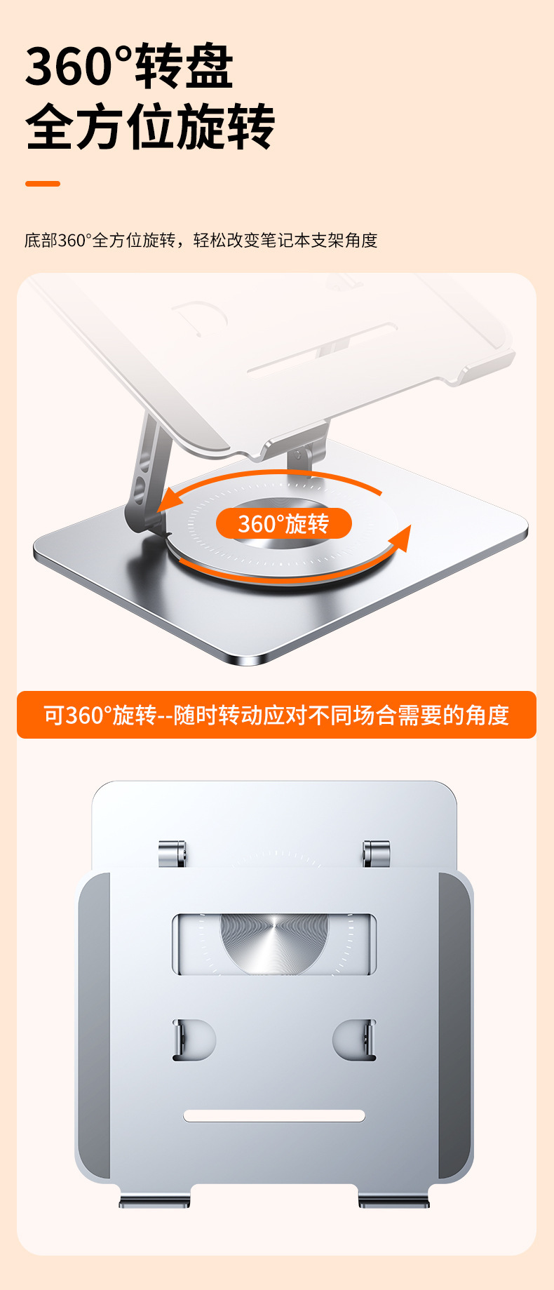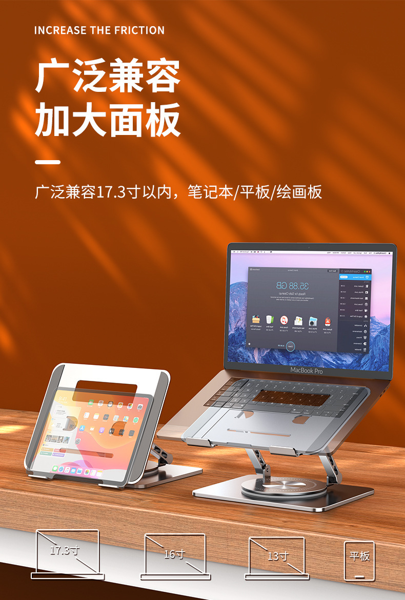 360度可旋转笔记本电脑支架托架桌面悬空散热合金支撑电脑增高架