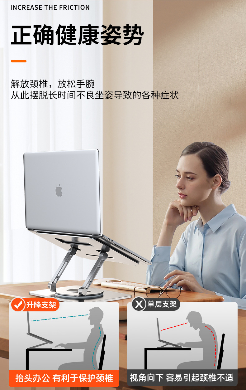 360°旋转笔记本电脑支架托架桌面增高架可升降悬空散热底座360度