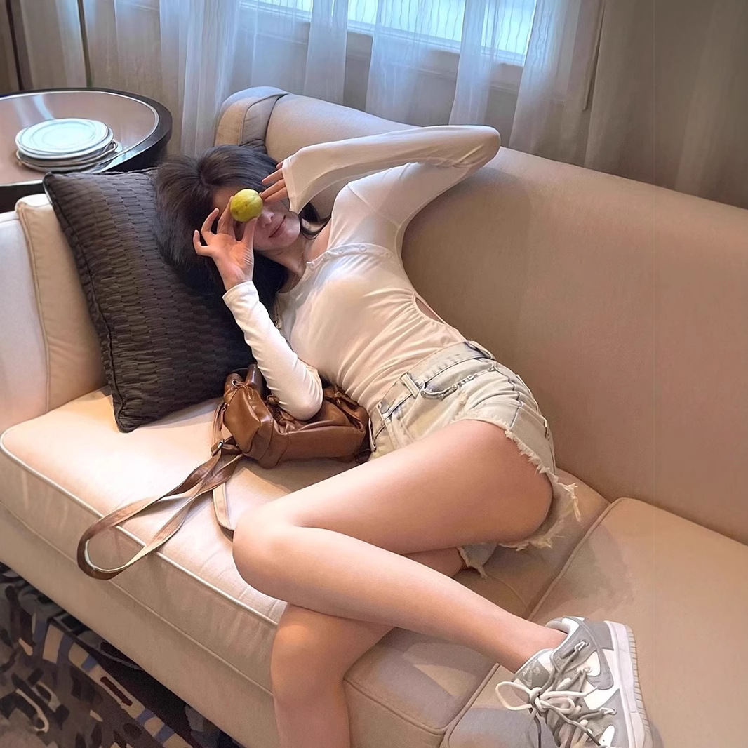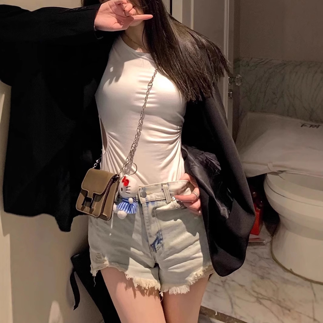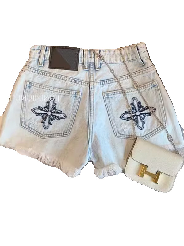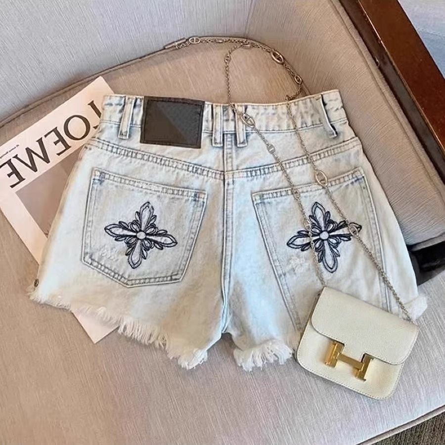 2025 새로운 디자인 로우 엣지 찢어진 데님 반바지 여성 여름 미국 핫 소녀 하이 웨이스트 스트레이트 핫 팬츠 트렌디스토어 가기