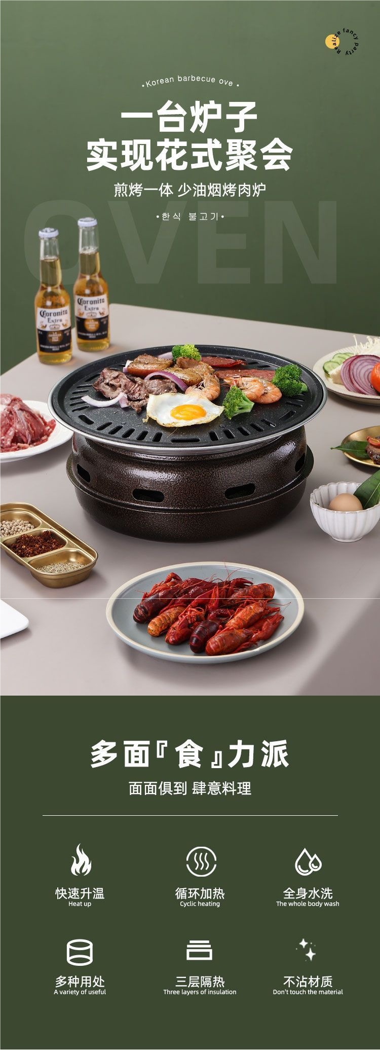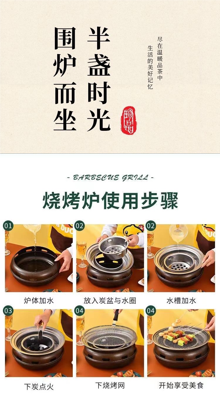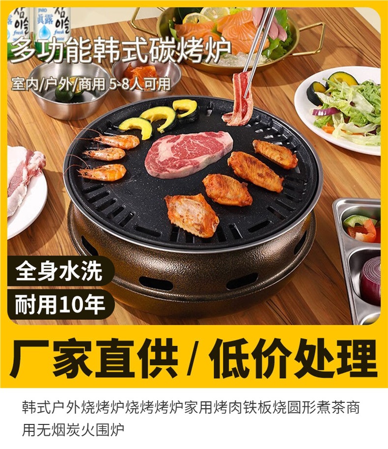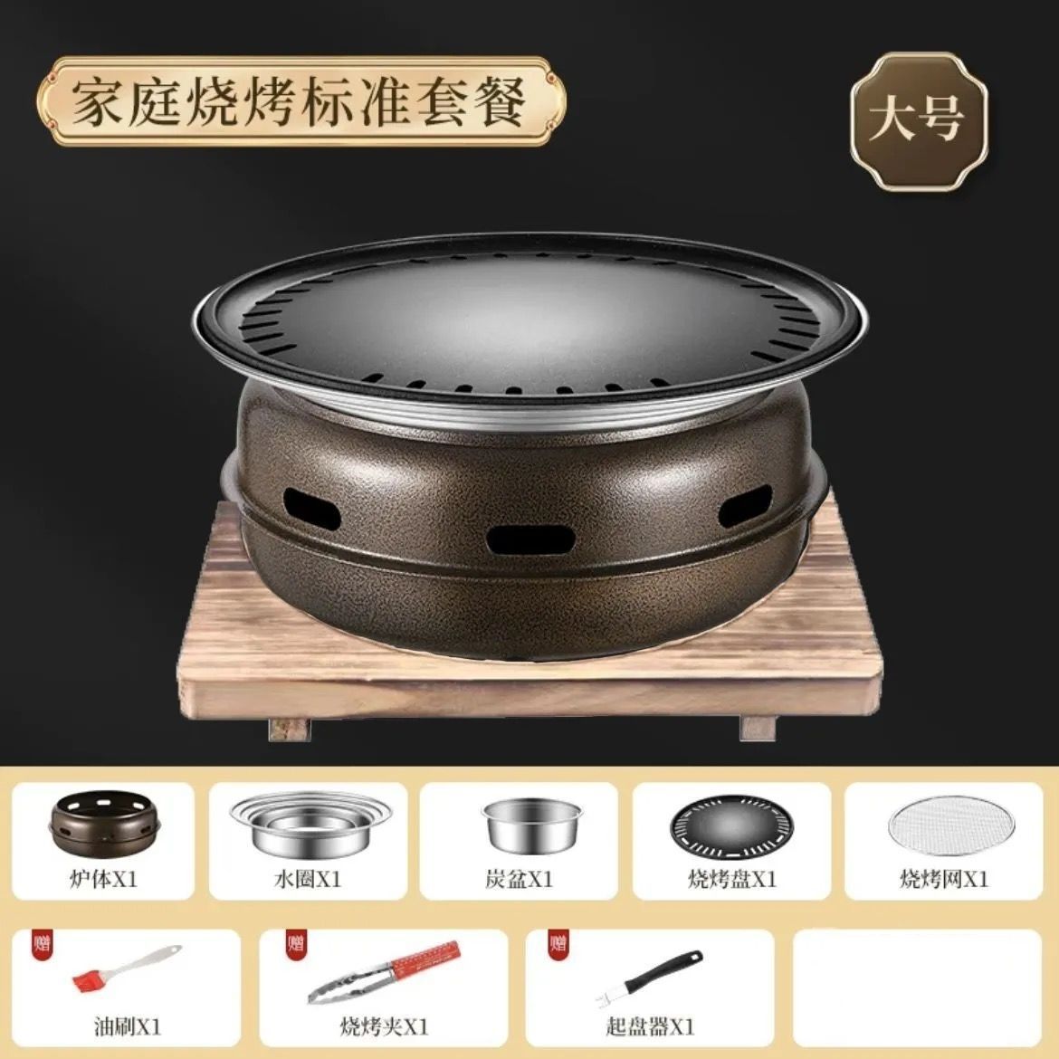 두꺼운 야외 바베큐 그릴, 가정용 바베큐 철판 그릴, 원형 차 끓이기, 상업용 무연 숯불 그릴