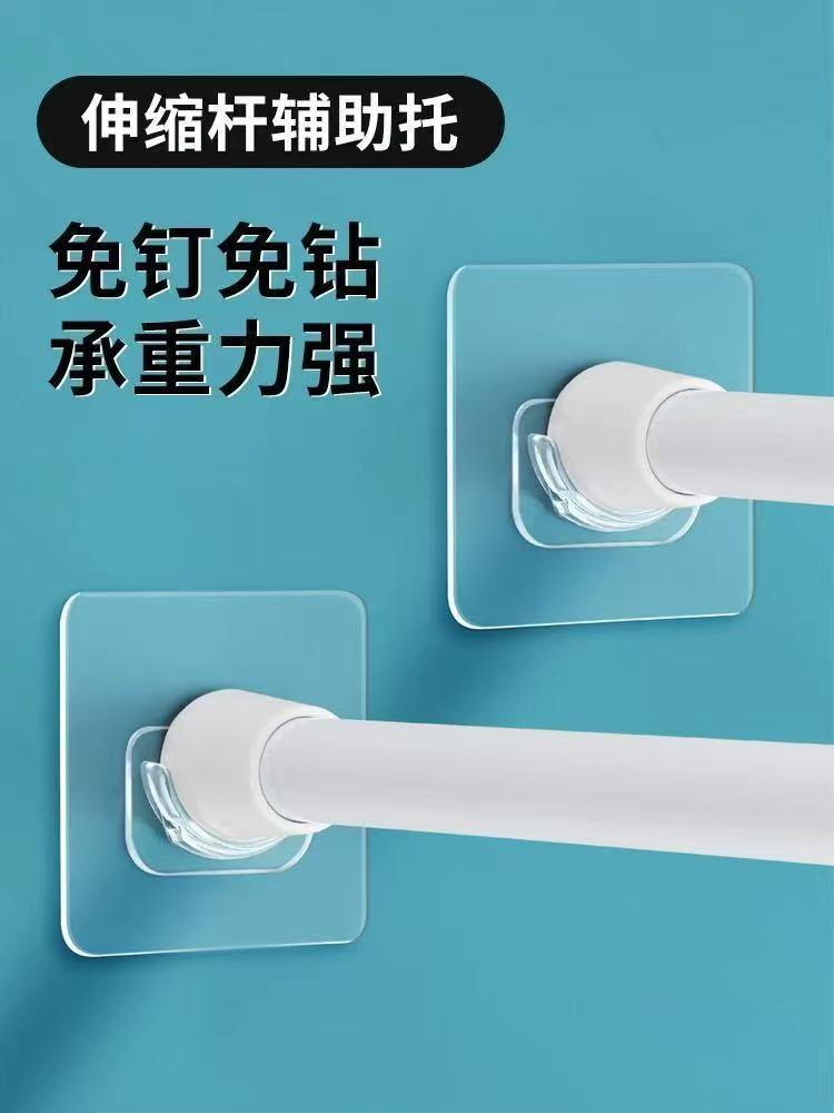 텔레스코픽 로드 후크, 커튼 로드 홀더, 펀치 없는 접착 후크, 회전식 링 도어 커튼, 접착식 회전식 못 없음스토어 가기