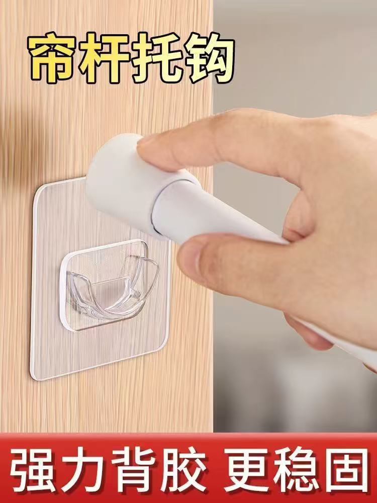텔레스코픽 로드 후크, 커튼 로드 홀더, 펀치 없는 접착 후크, 회전식 링 도어 커튼, 접착식 회전식 못 없음