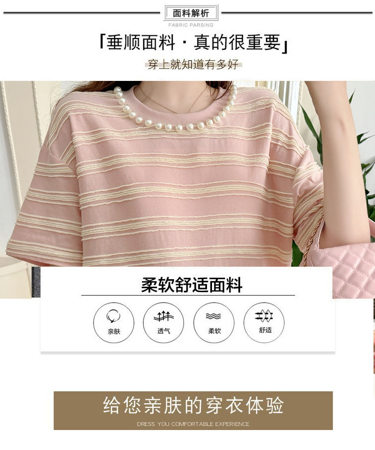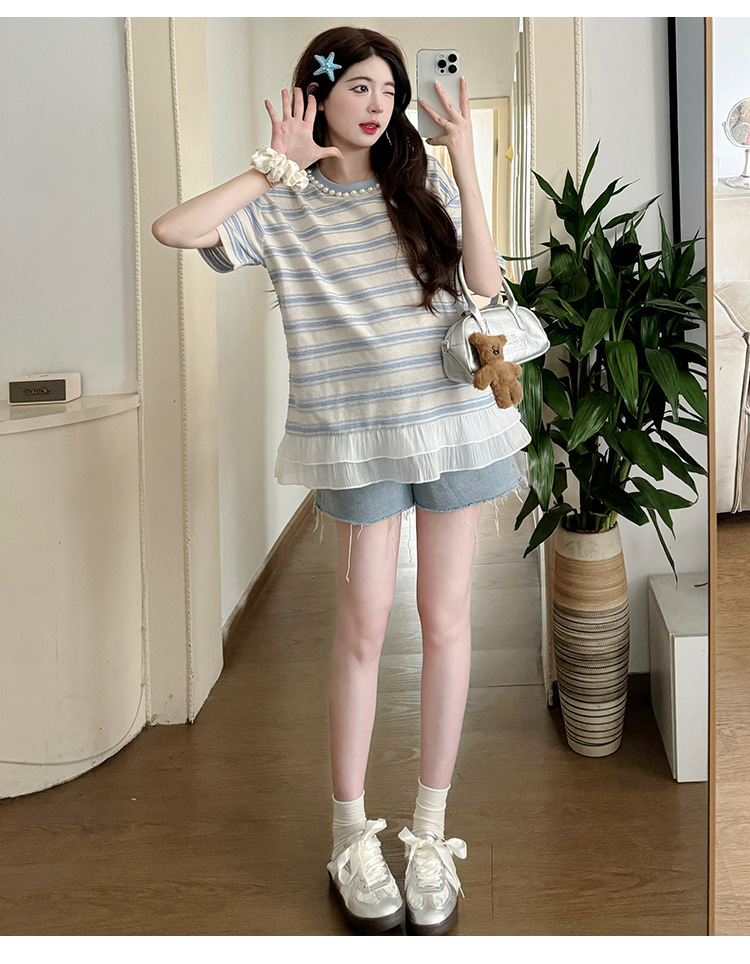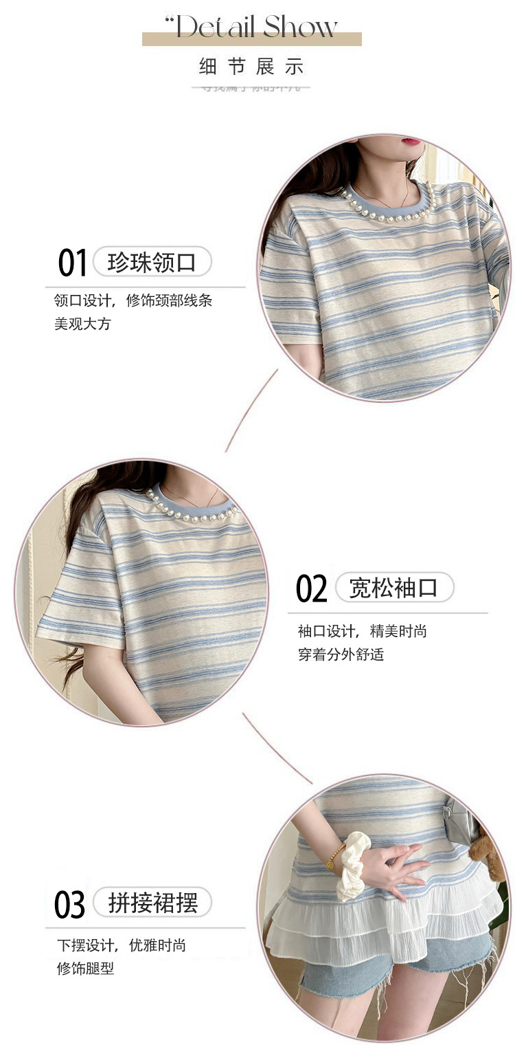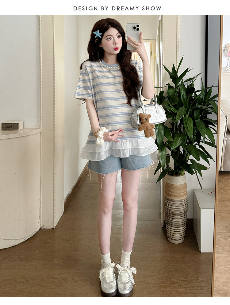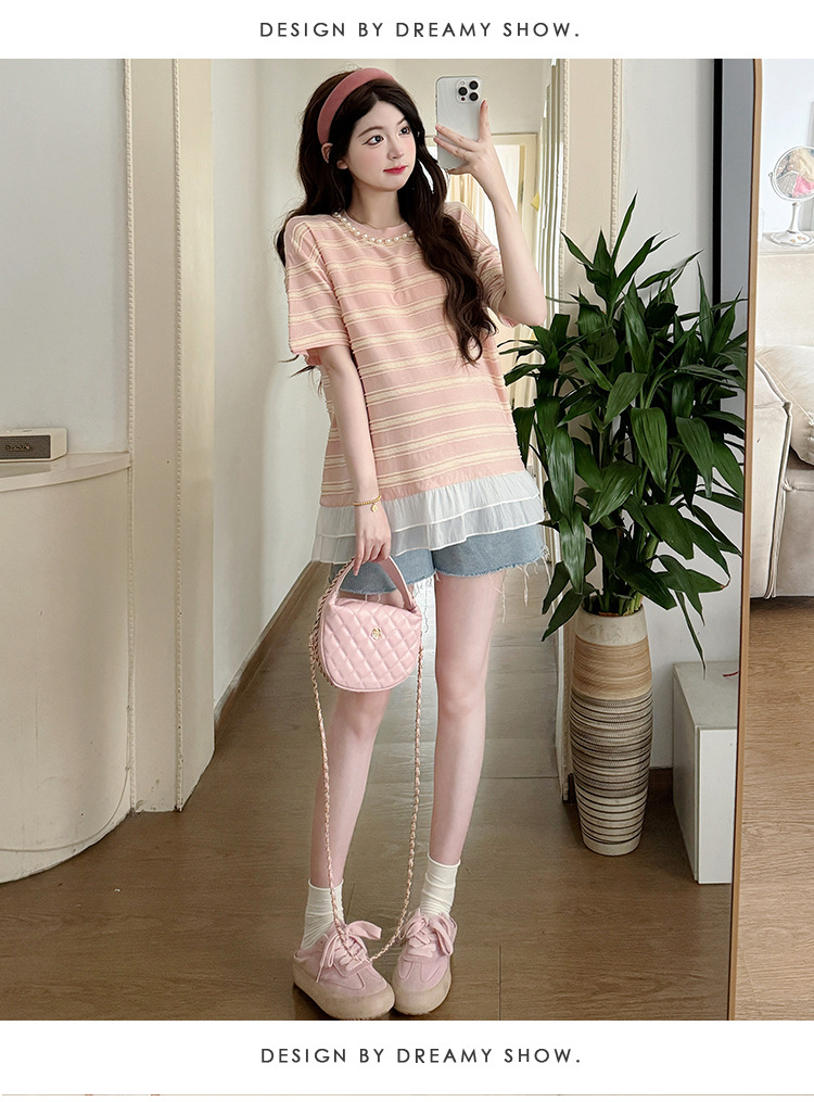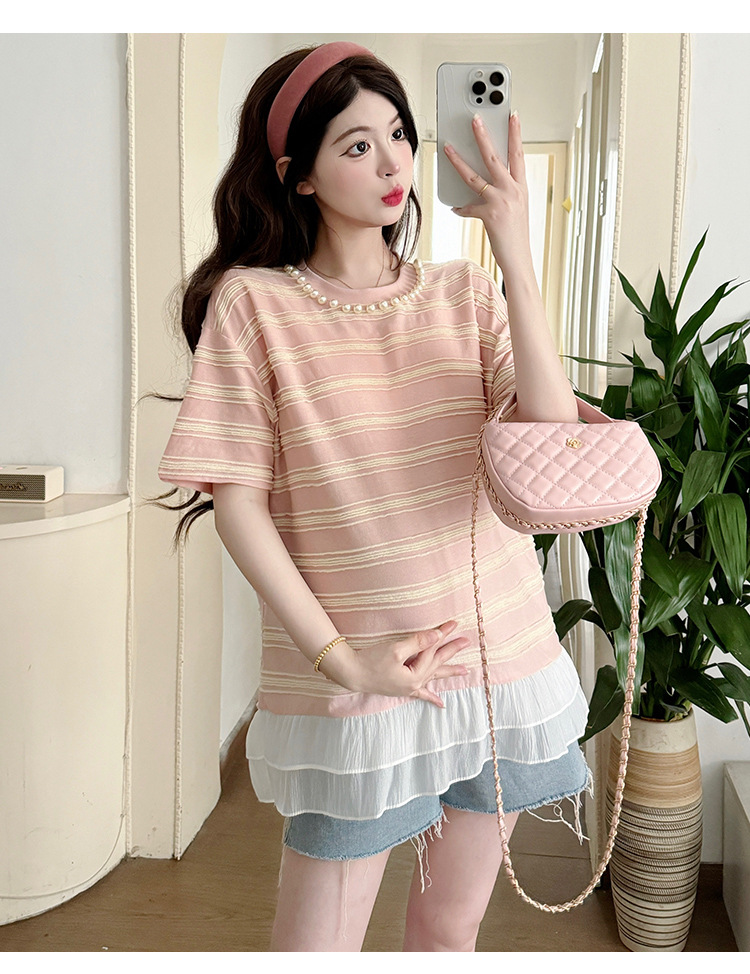 여름 새로운 한국 스타일 달콤한 줄무늬 바느질 쉬폰 느슨한 임산부 티셔츠 탑