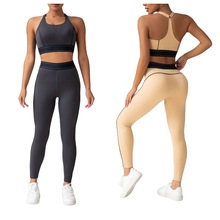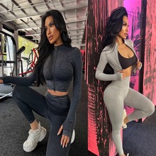 스포츠 조끼 요가복 세트 누드 느낌의 무봉제 긴팔 긴바지 가슴 패드가 있는 투피스 여성용 피트니스복 타이트핏스토어 가기
