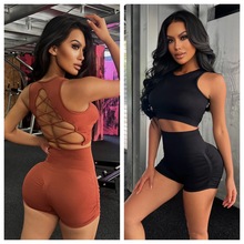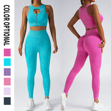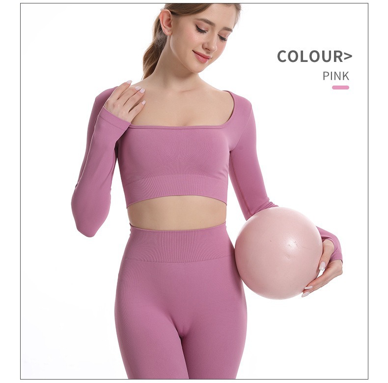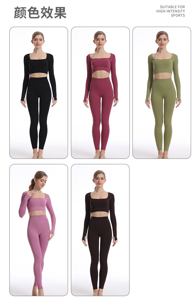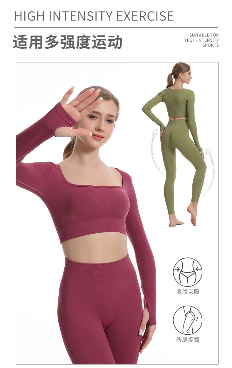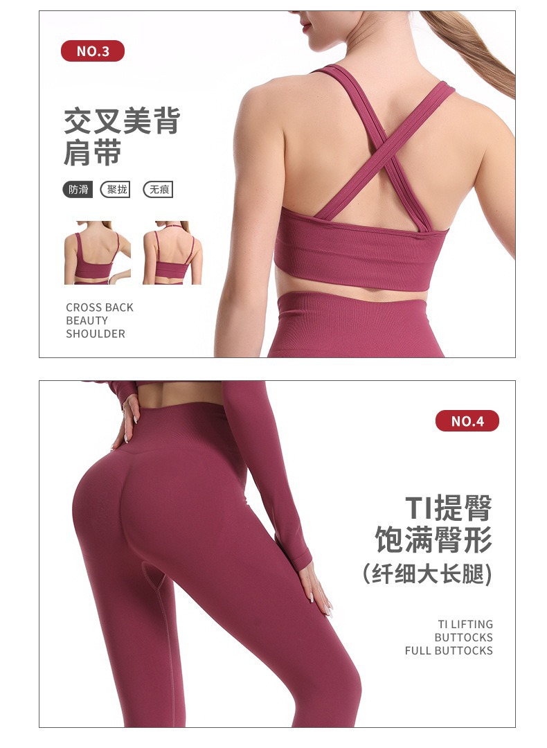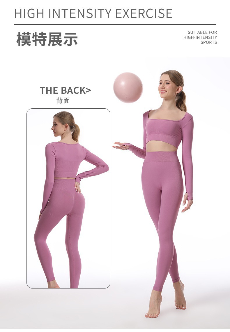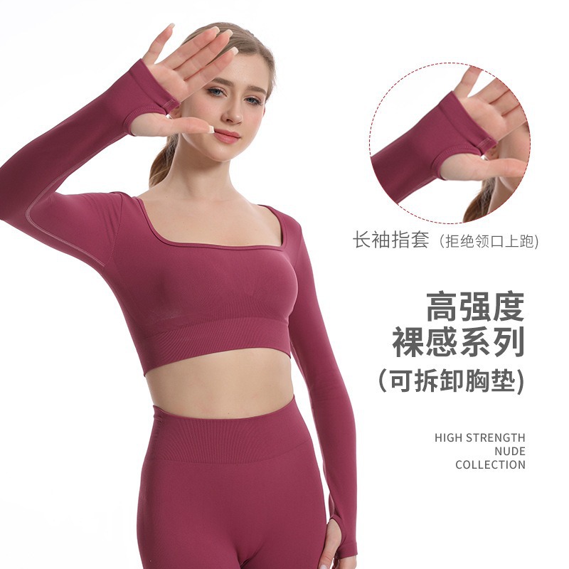 스포츠 조끼 요가복 세트 누드 느낌의 무봉제 긴팔 긴바지 가슴 패드가 있는 투피스 여성용 피트니스복 타이트핏