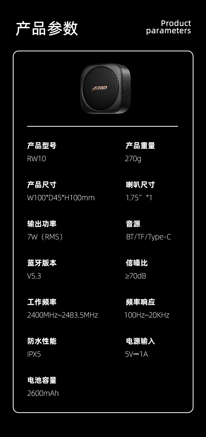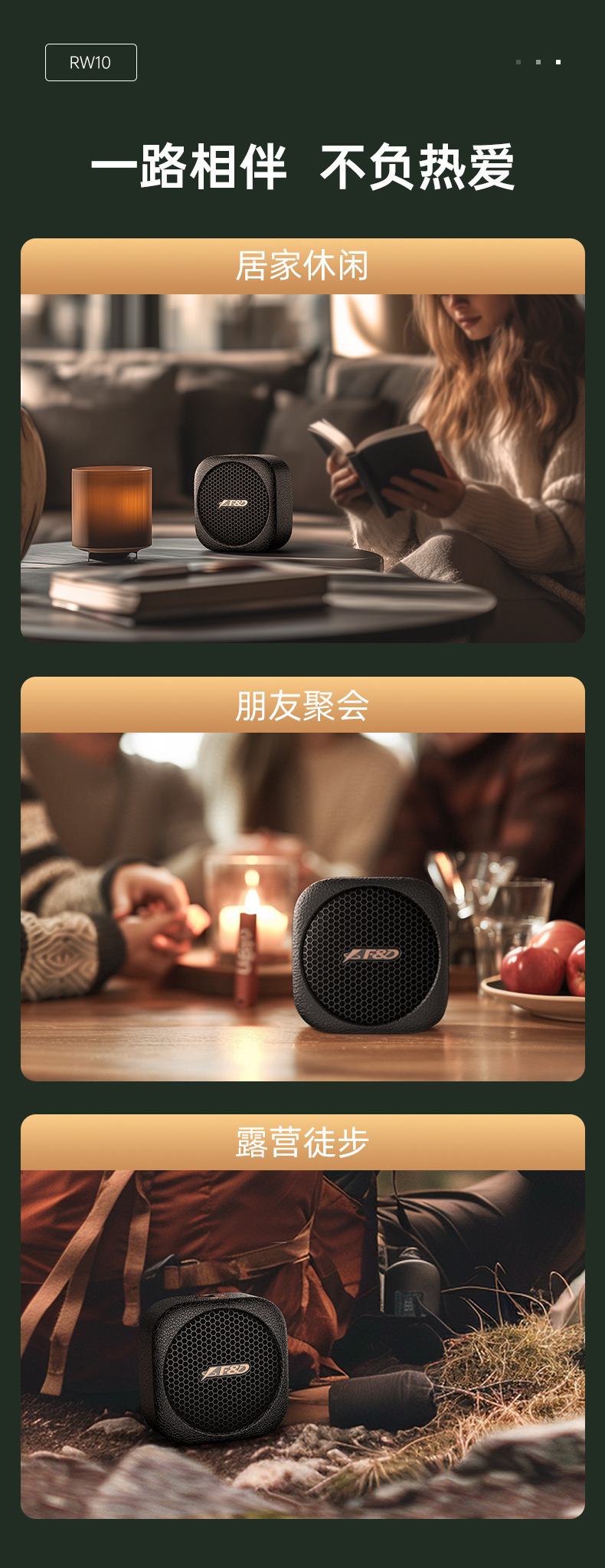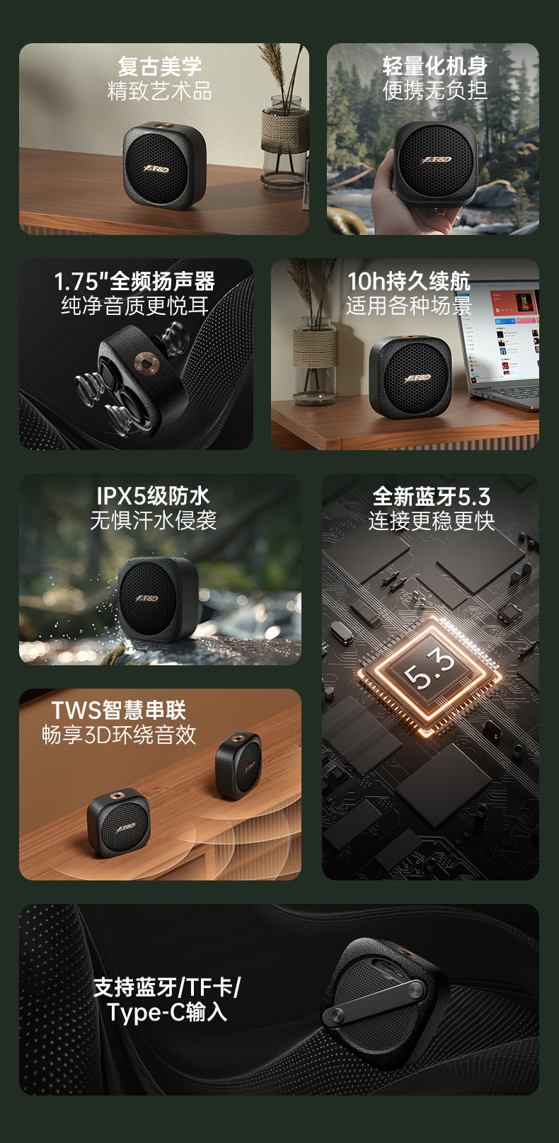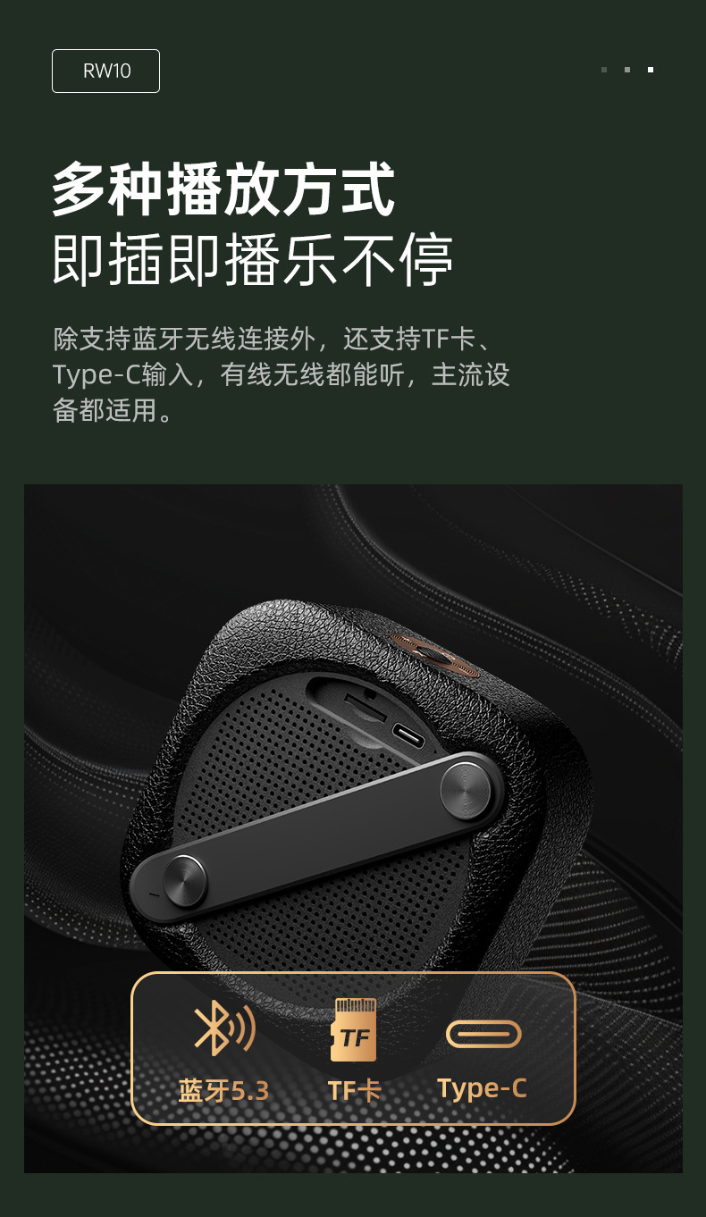 复古新品 奋达RW10户外徒步骑行IPX5防水蓝牙流行音乐大功率音响