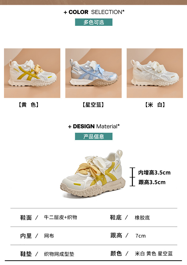 7cm 내부 높이 메쉬 통기성 독일 훈련 신발 여성 2025 년 여름 새로운 유행 올 매치 캐주얼 조깅 포레스트 검프 신발
