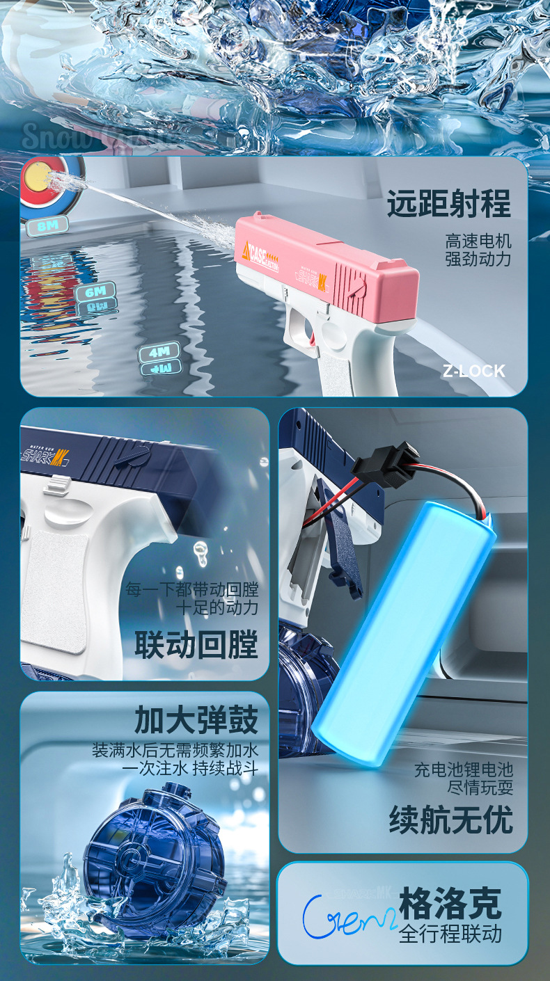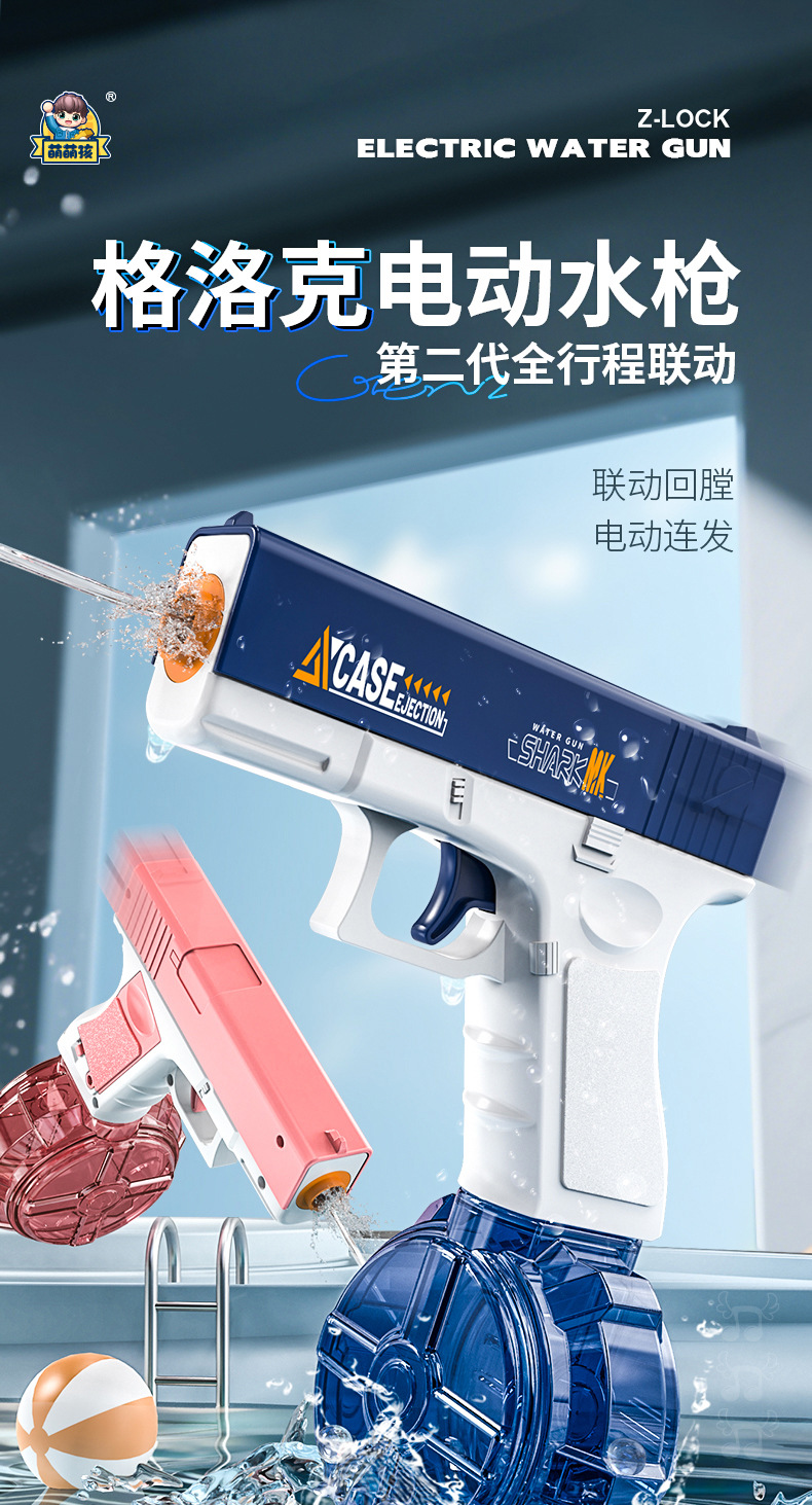 국경 간 새로운 여름 완전 자동 2 세대 전기 글록 물총 빛 물총 소년과 소녀 야외 장난감스토어 가기