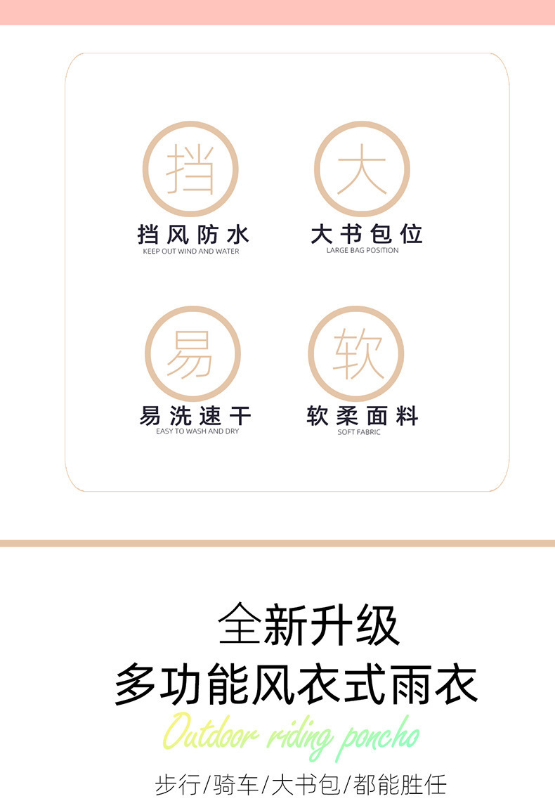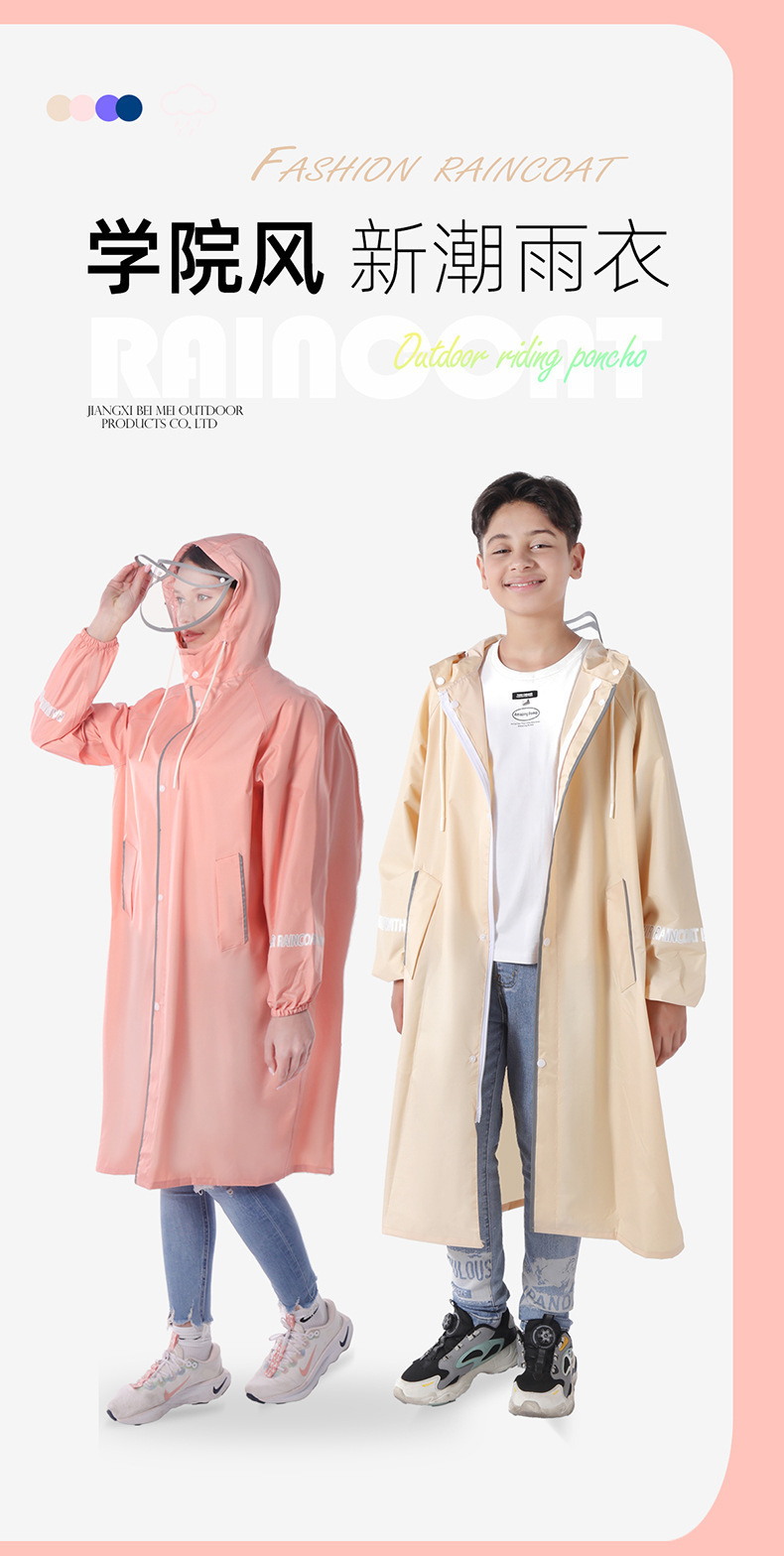 오픈형 책가방이 포함된 대학 스타일 어린이용 레인코트, 중학생 및 고등학생용 레인포드 사이클링 판초