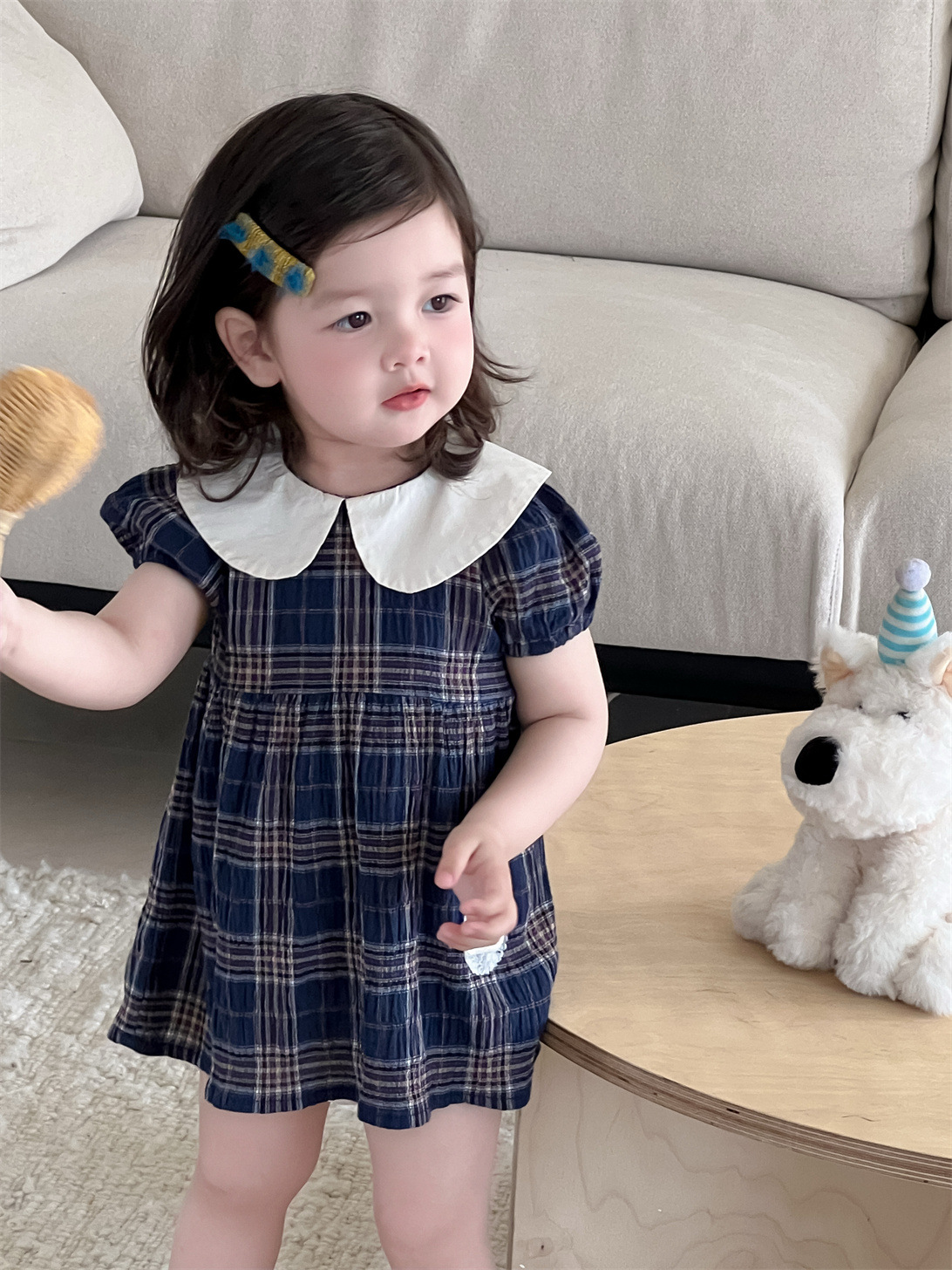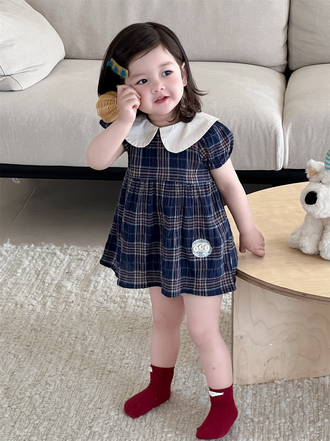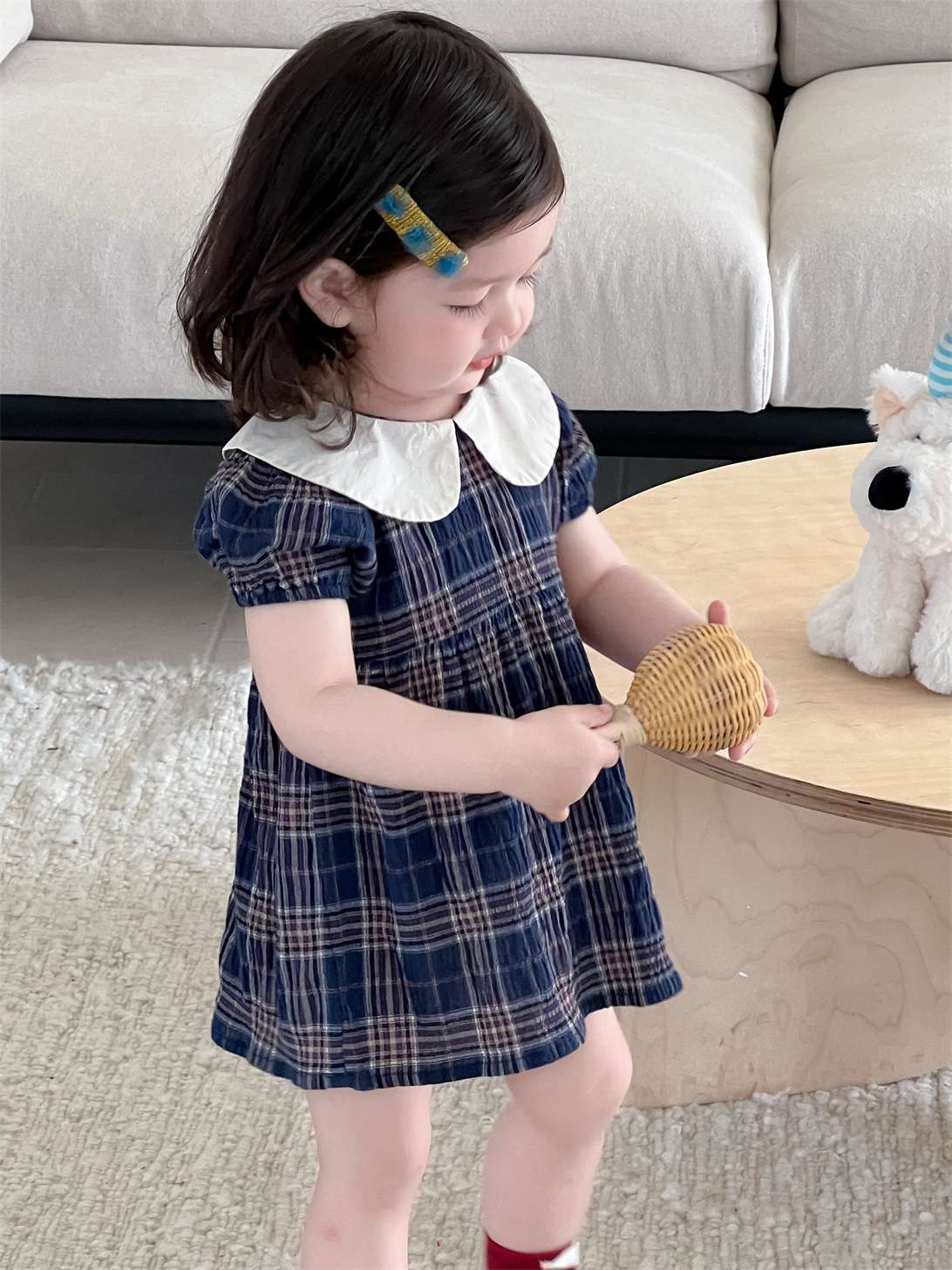 여아 드레스 여름 얇은 한국 스타일 아동복 여아 인형 칼라 체크무늬 스커트 2026 신상 여름 드레스스토어 가기